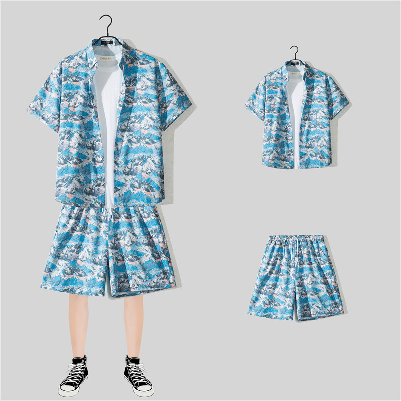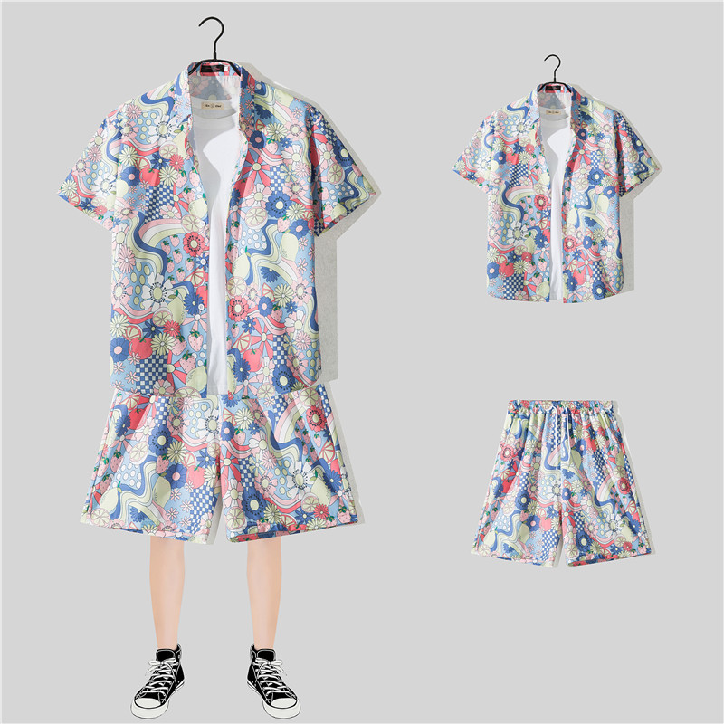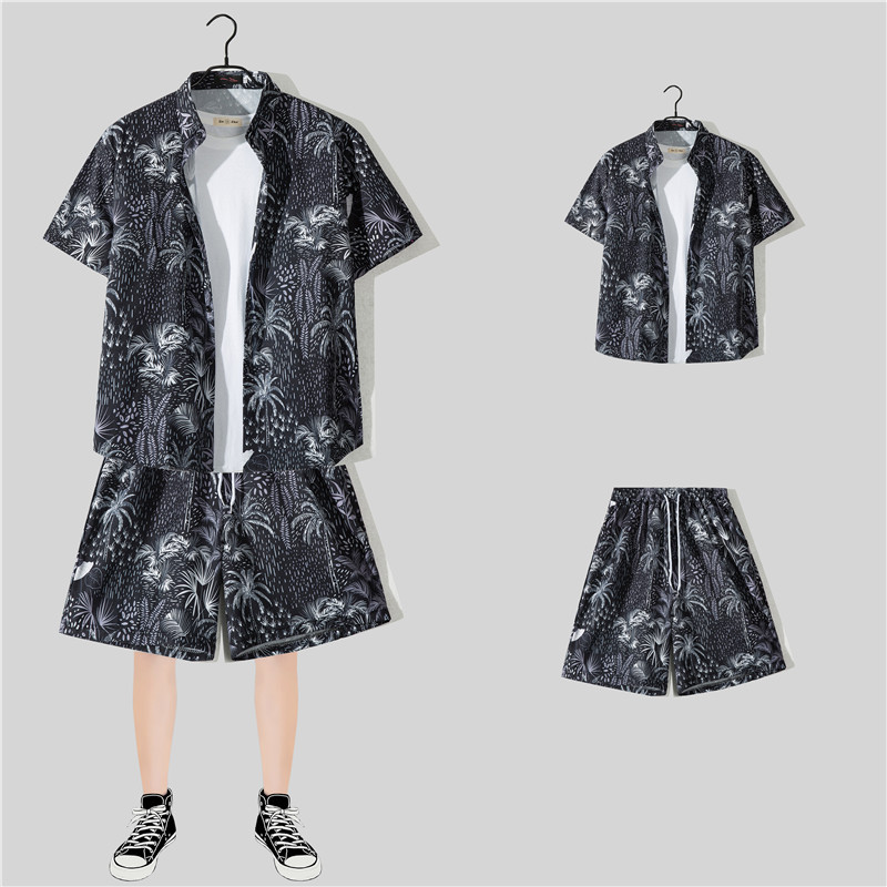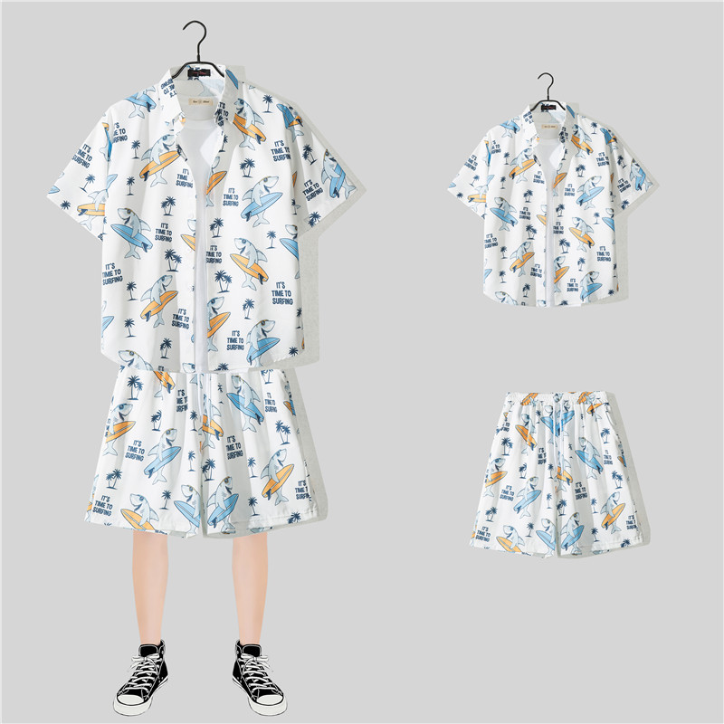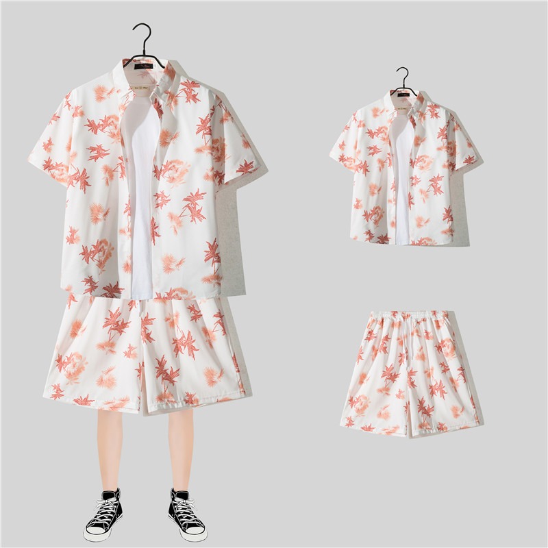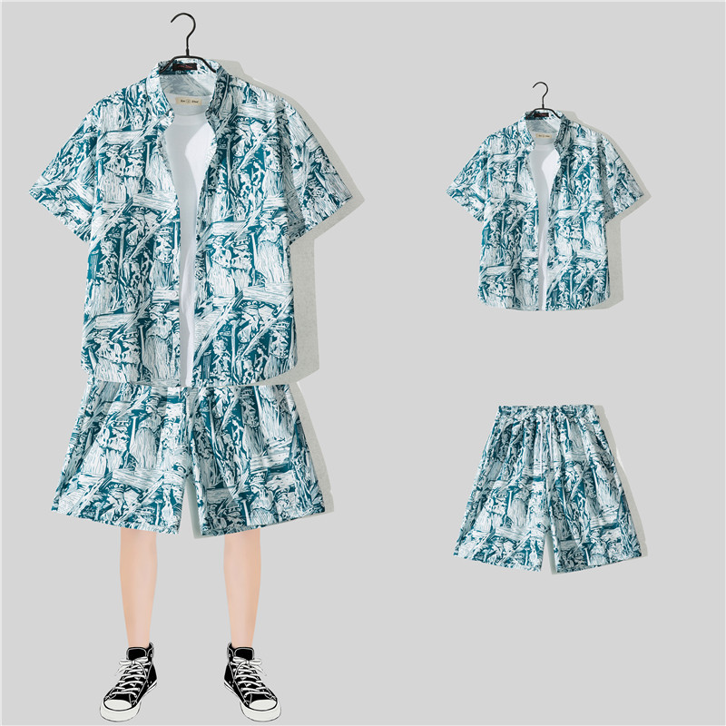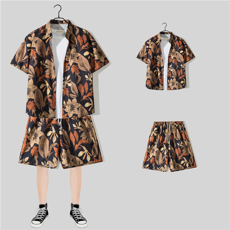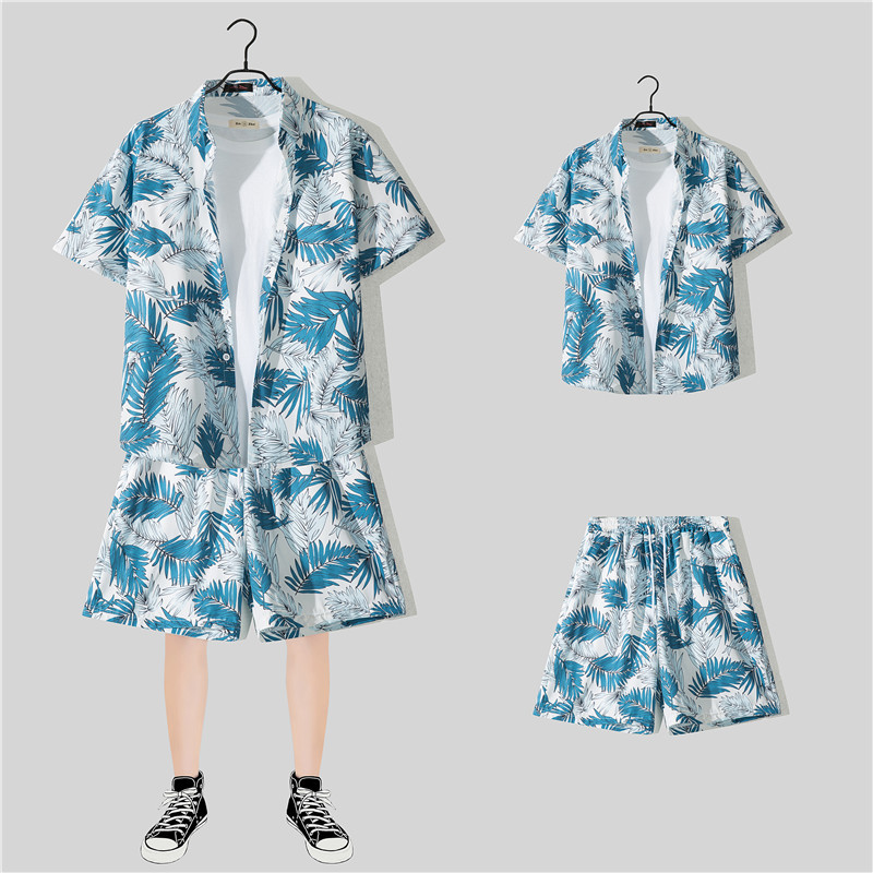 短袖花衬衫海南岛服沙滩服三亚夏威风泰国旅游男情侣夏季薄款套装