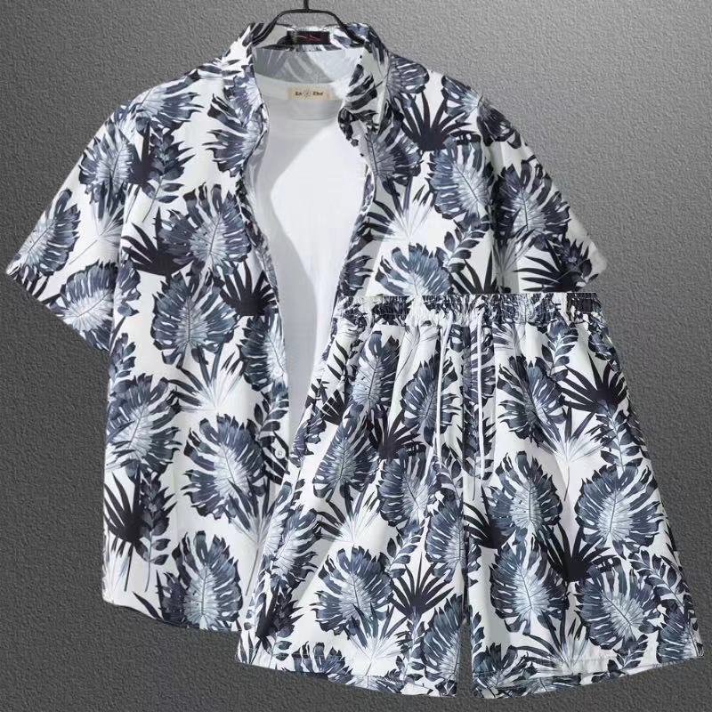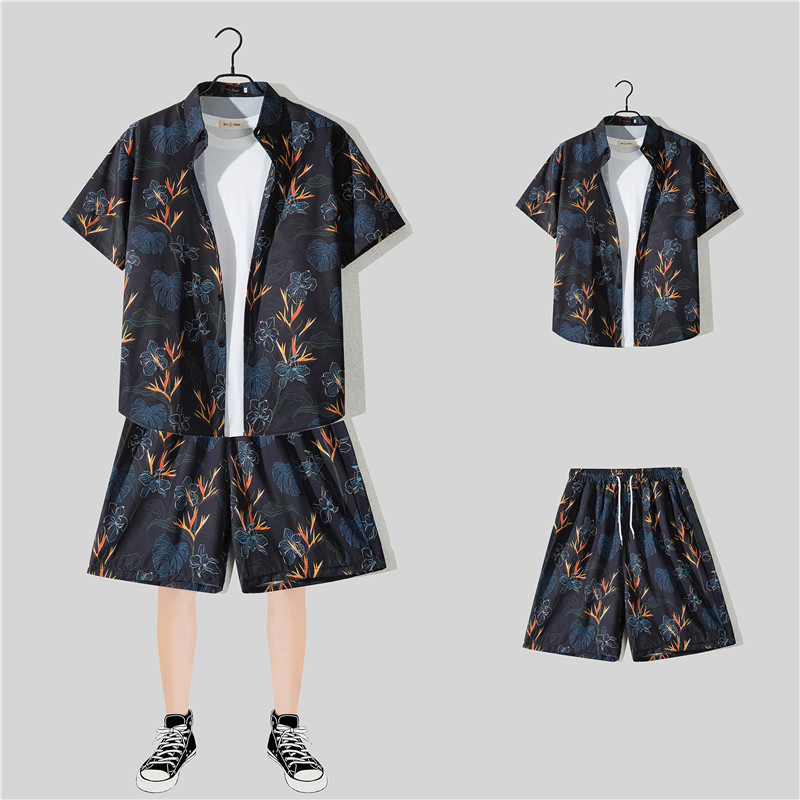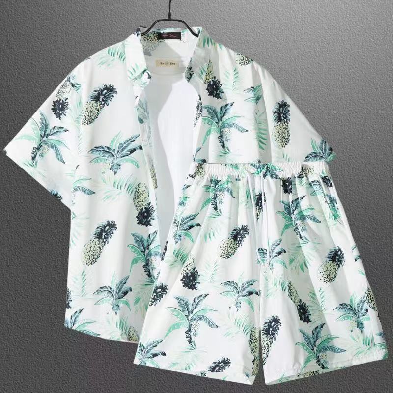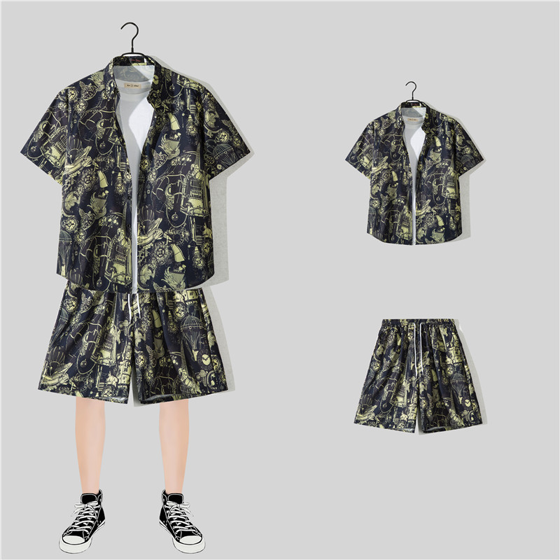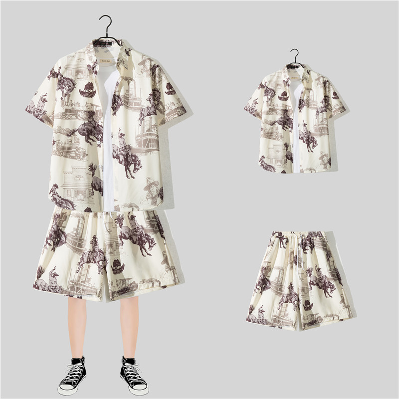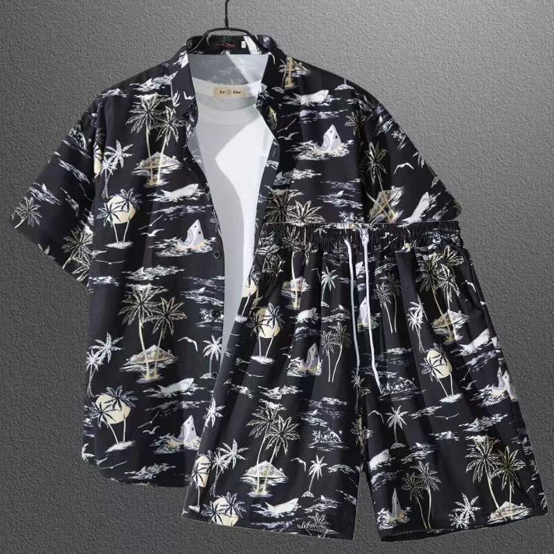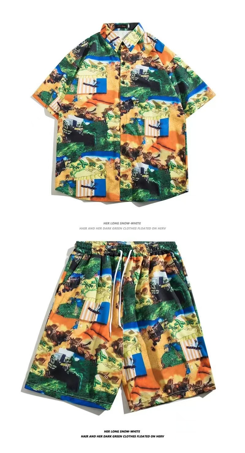 短袖花衬衫海南岛服沙滩服三亚夏威风泰国旅游男情侣夏季薄款套装