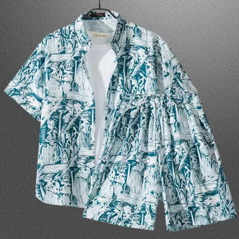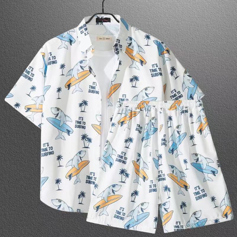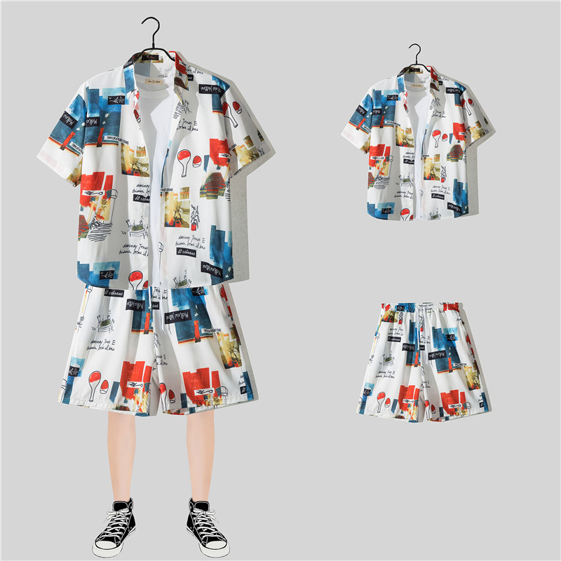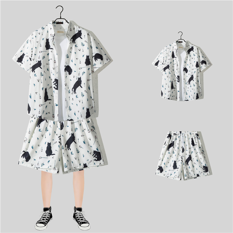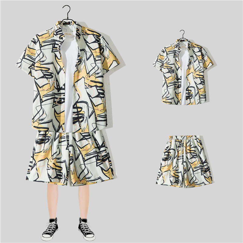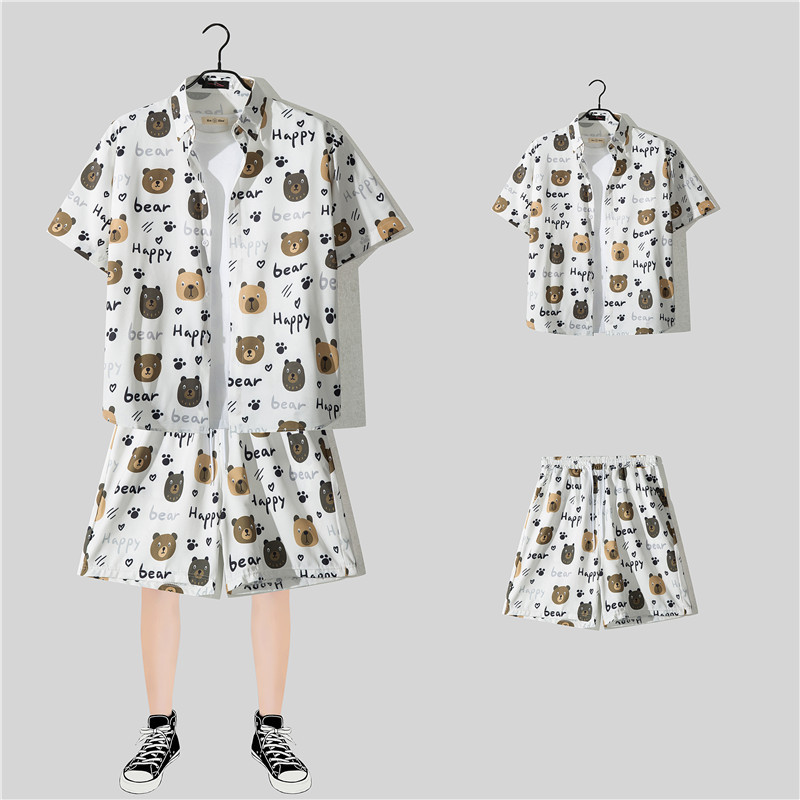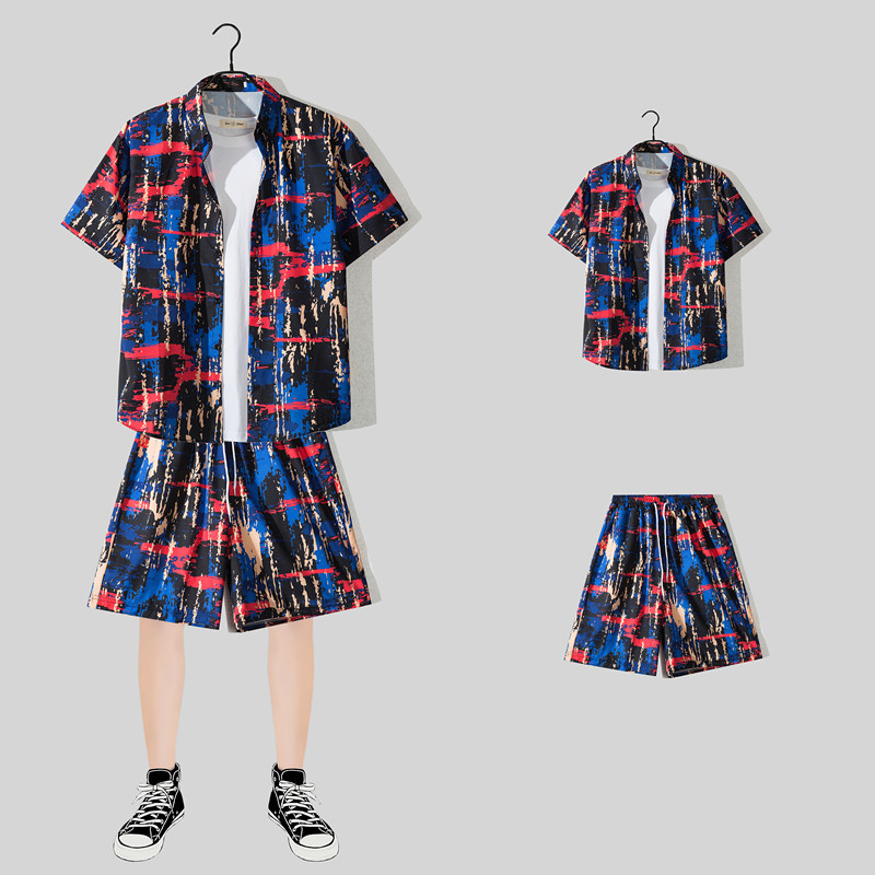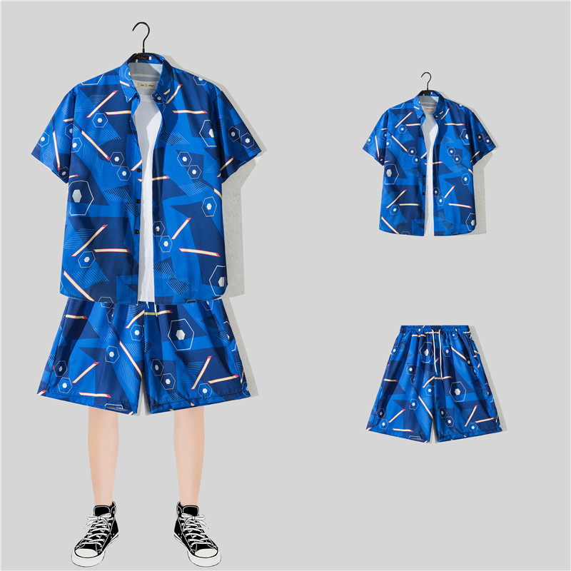 短袖花衬衫海南岛服沙滩服三亚夏威风泰国旅游男情侣夏季薄款套装
