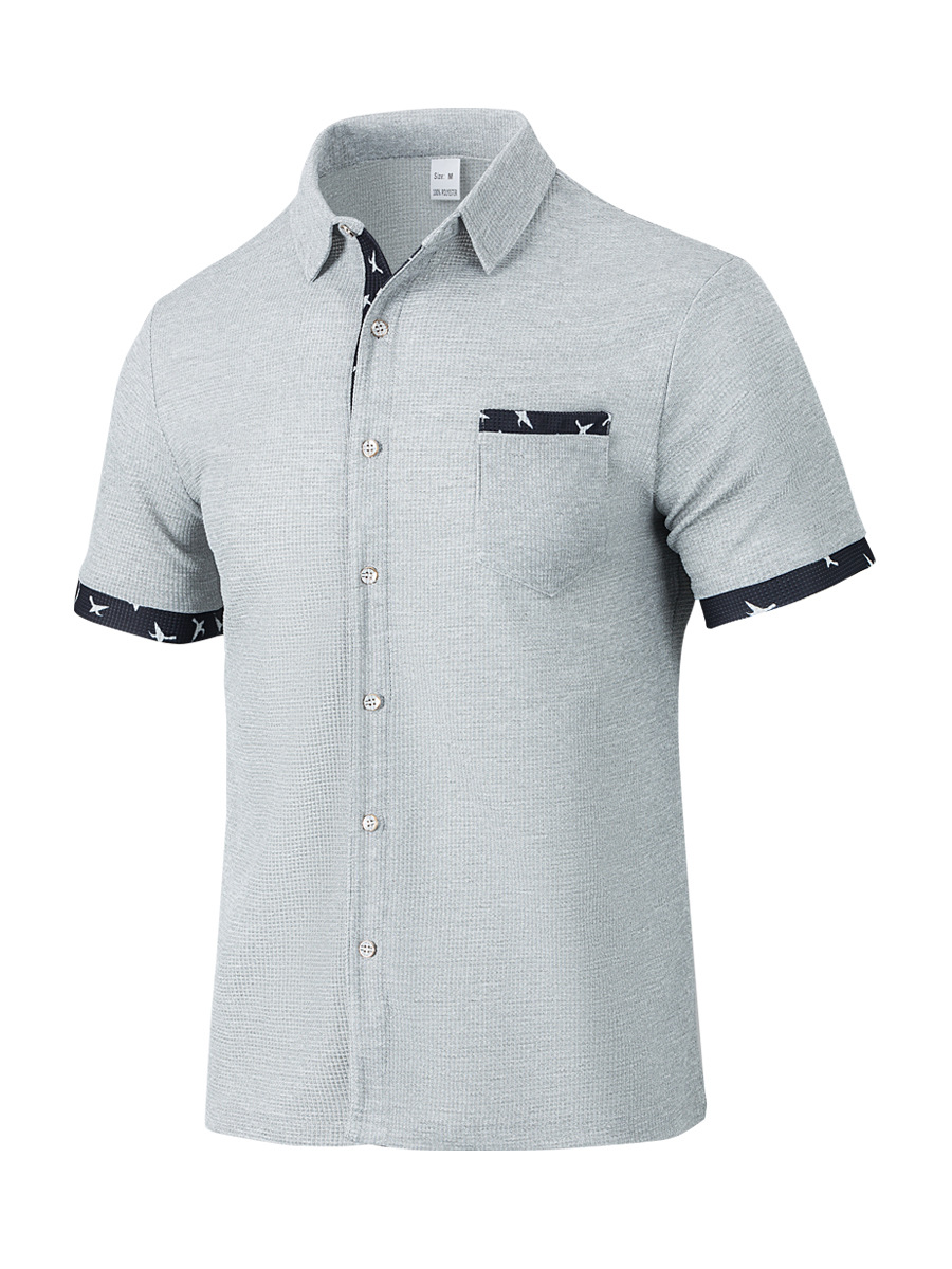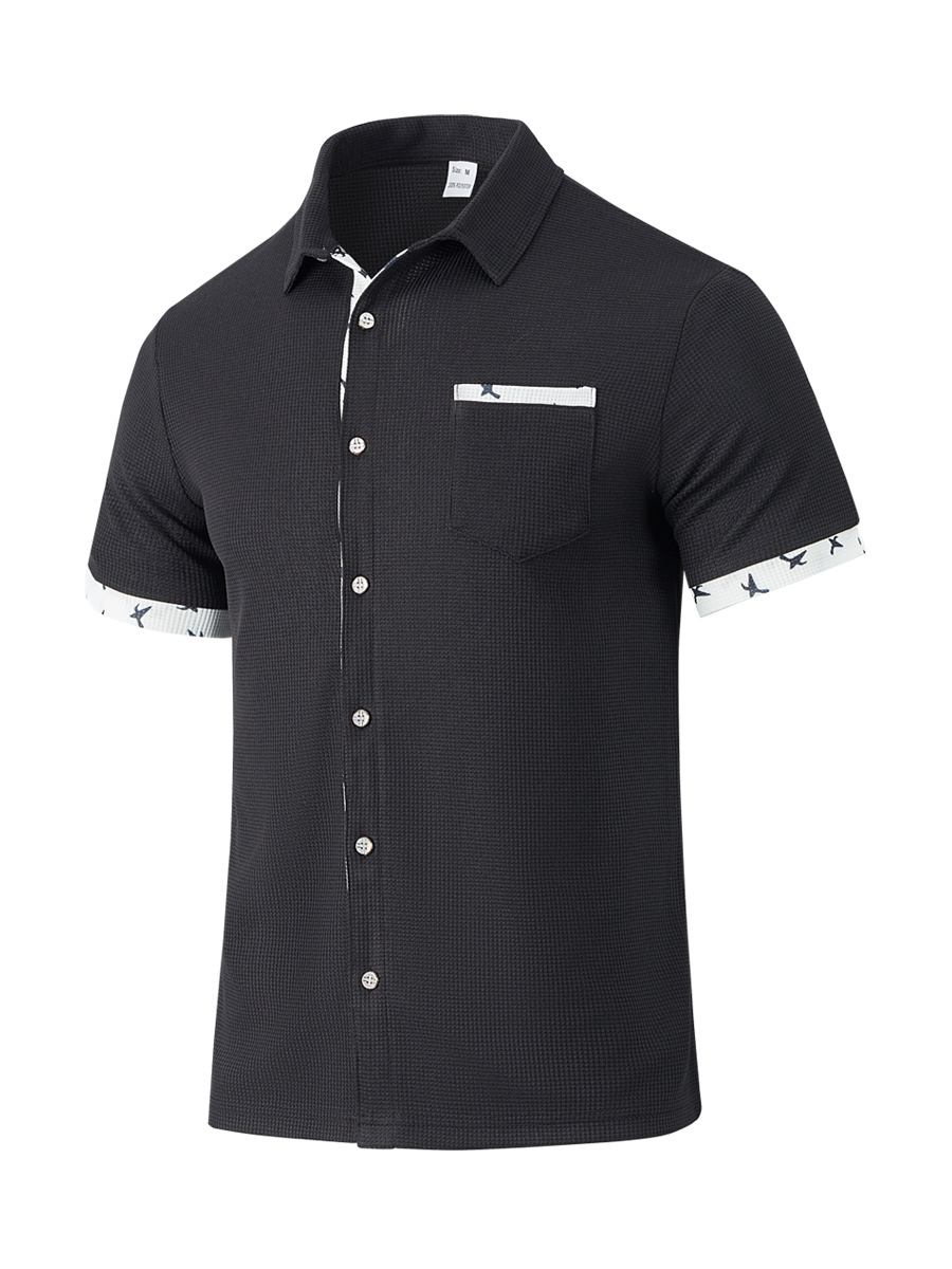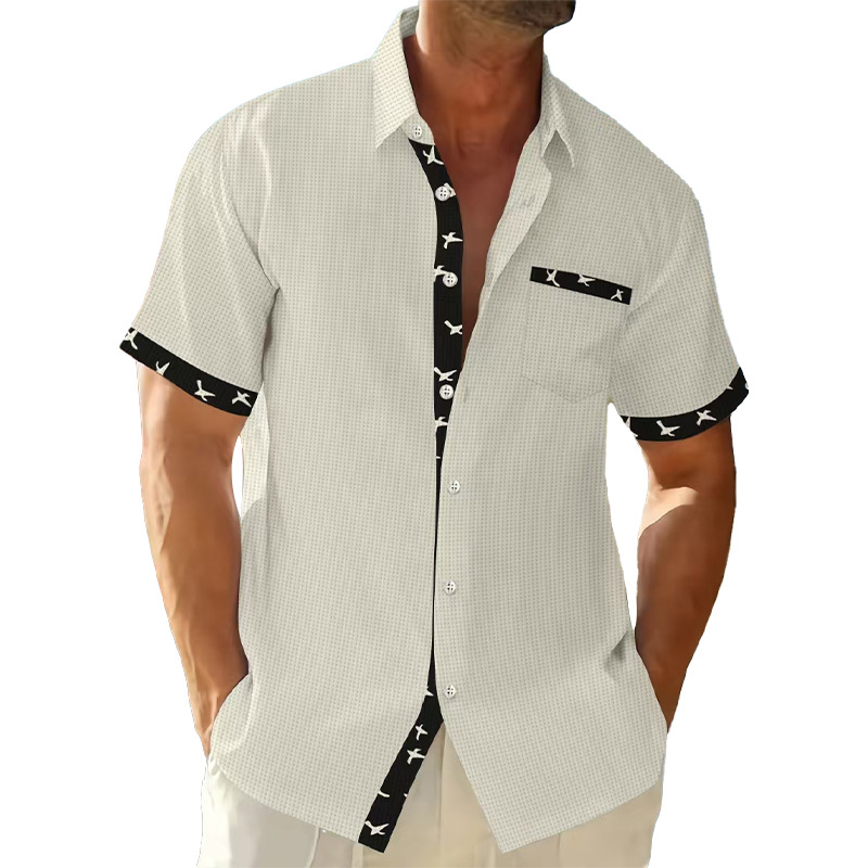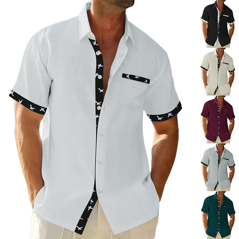 跨境热卖独立站美式男士t恤衬衫夏季宽松休闲撞色嘻哈短袖t恤男