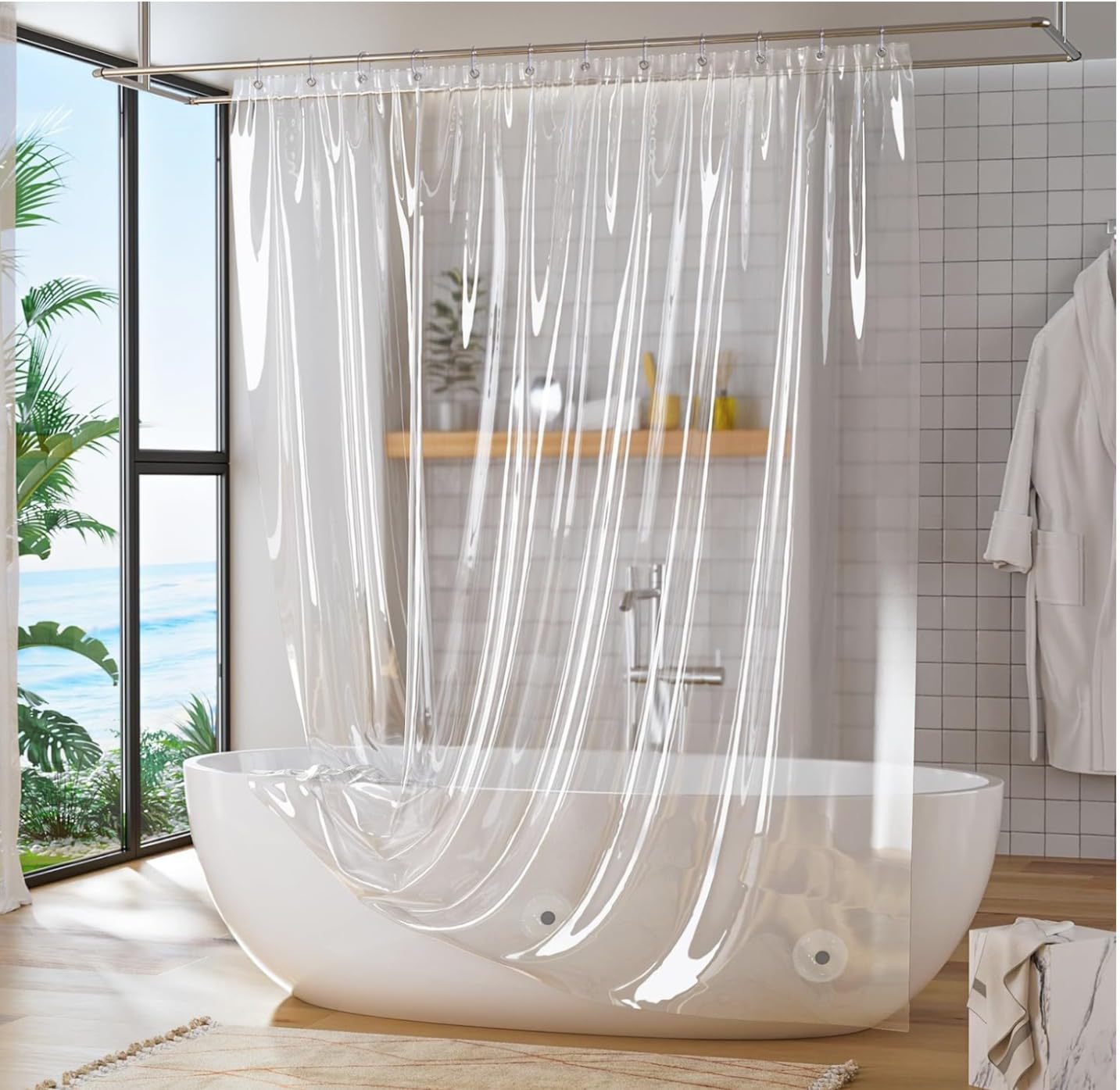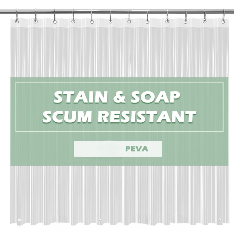 透明浴帘衬垫防水塑料淋浴衬垫可爱轻质PEVA 浴帘浴室帘带3个磁铁