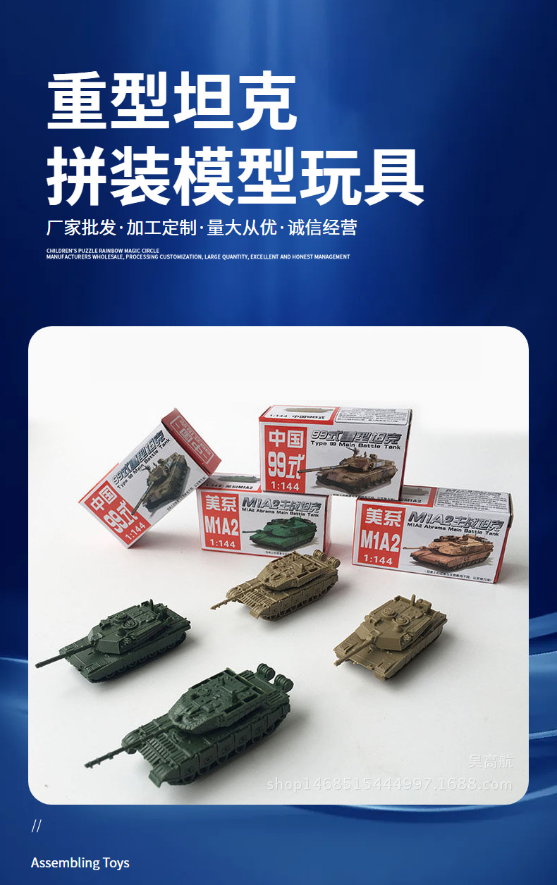 4D现代坦克模型1:144中国99式重型坦克成品美国M1A2沙盘摆件模型