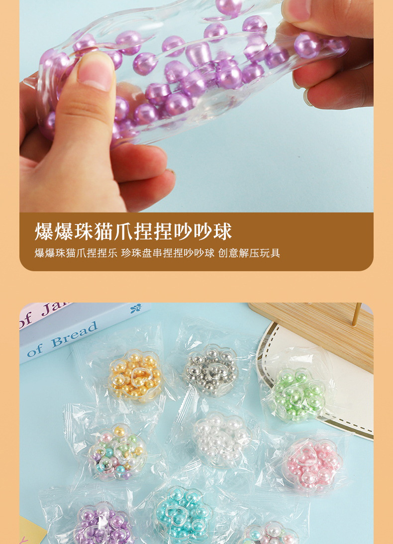 爆爆珠猫爪捏捏乐 珍珠盘串捏捏吵吵球 创意捏捏乐解压玩具批发