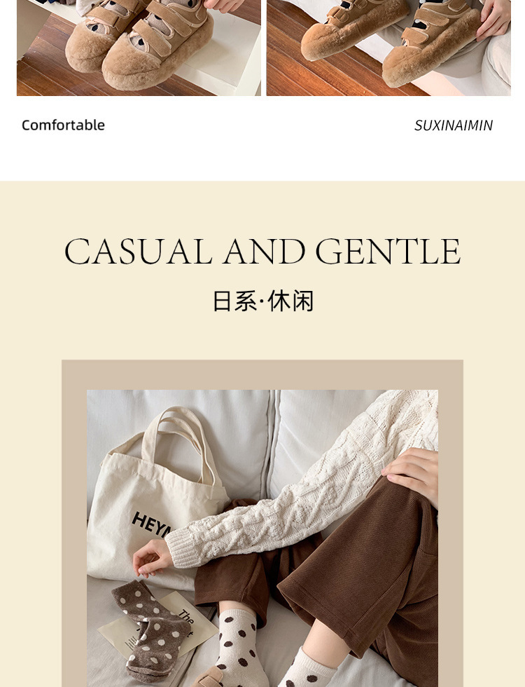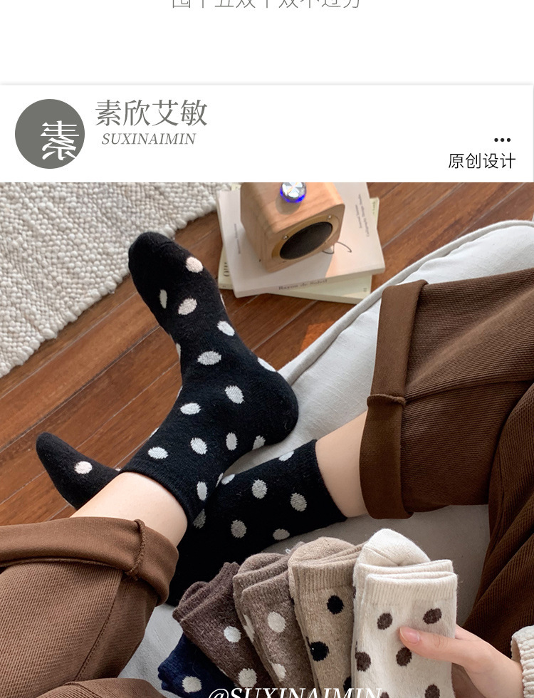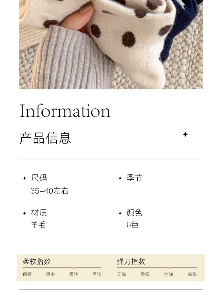 美拉德系羊毛袜羊绒中筒秋冬加厚保暖袜子女日系百搭波点诸暨批发