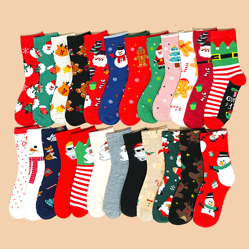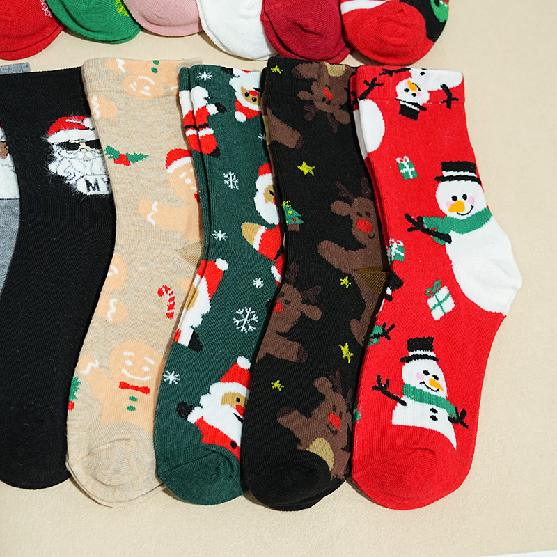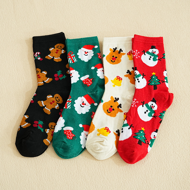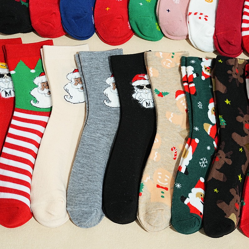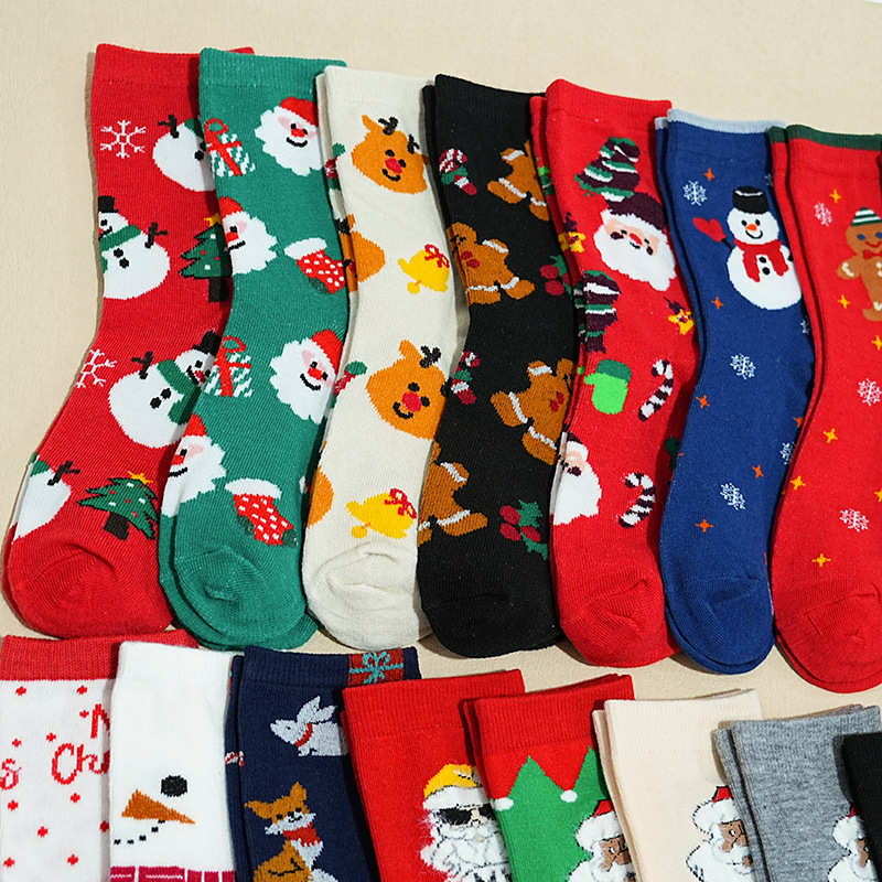 秋冬款 卡通圣诞袜子 圣诞袜麋鹿中筒款袜圣诞女袜跨境外贸