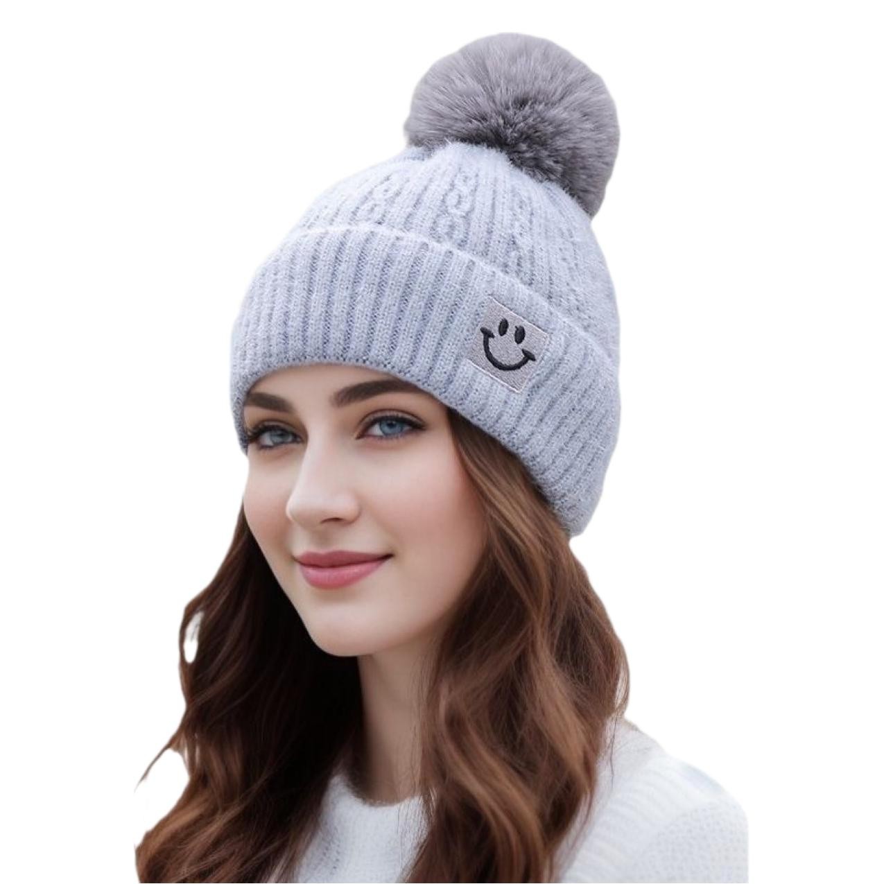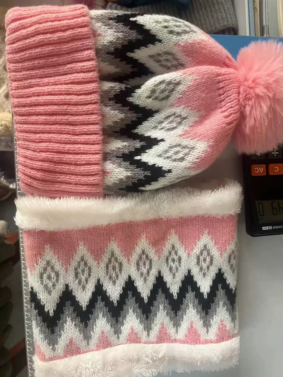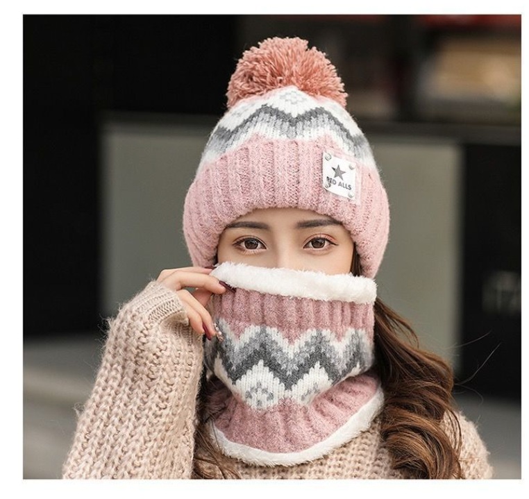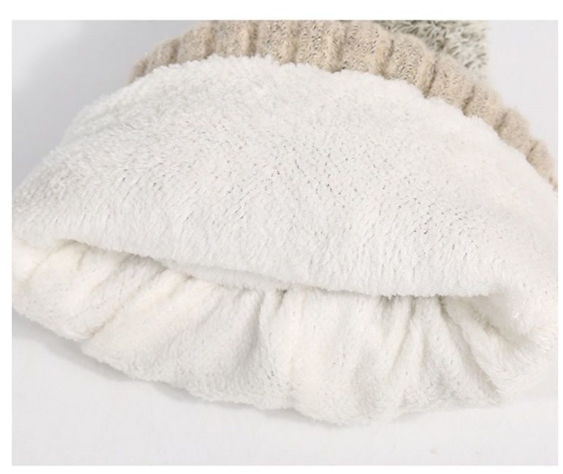新款秋冬帽子女可爱套头帽加绒加厚毛球针织帽保暖护耳毛线帽批发