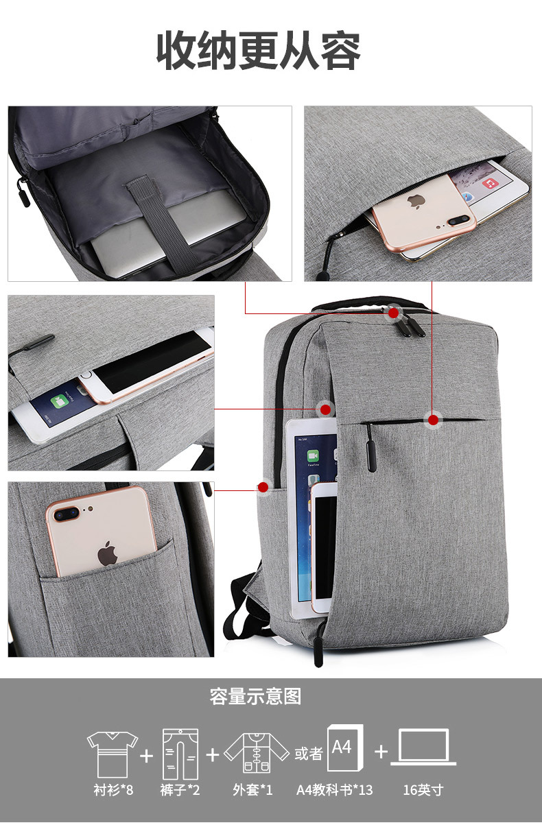 2025休闲双肩包男款防水防震15.6寸笔记本电脑包户外轻便通勤背包