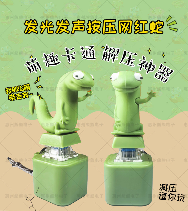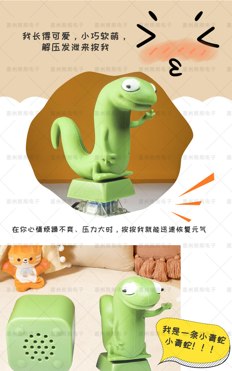 跨境解压按键发声发光充电蜥蜴猪小狗青蛙蛇钥匙扣按减压发声挂件