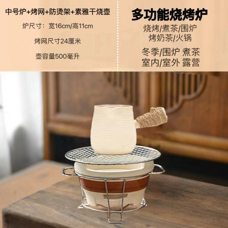 老式木炭围炉煮茶红泥家用烧烤炉风炉茶炉耐火陶土炭炉火锅取暖厂