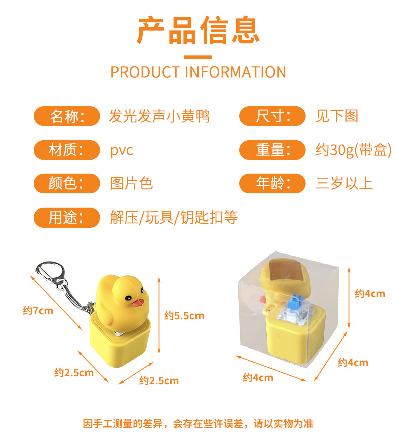 儿童创意解压玩具发光发声小鸭子按键捏捏乐挂件减压发泄神器礼品