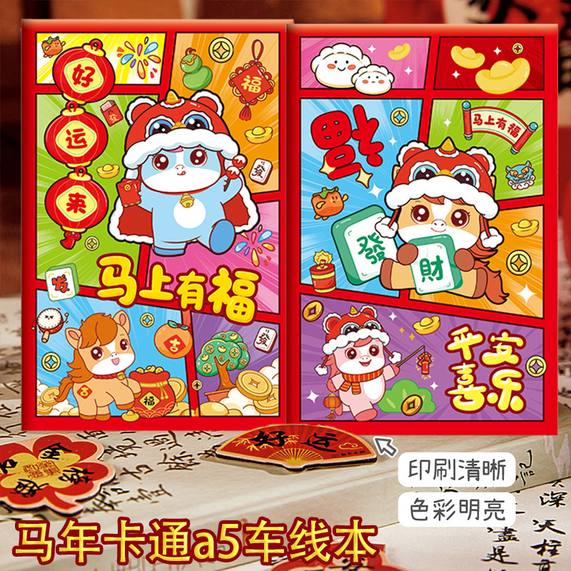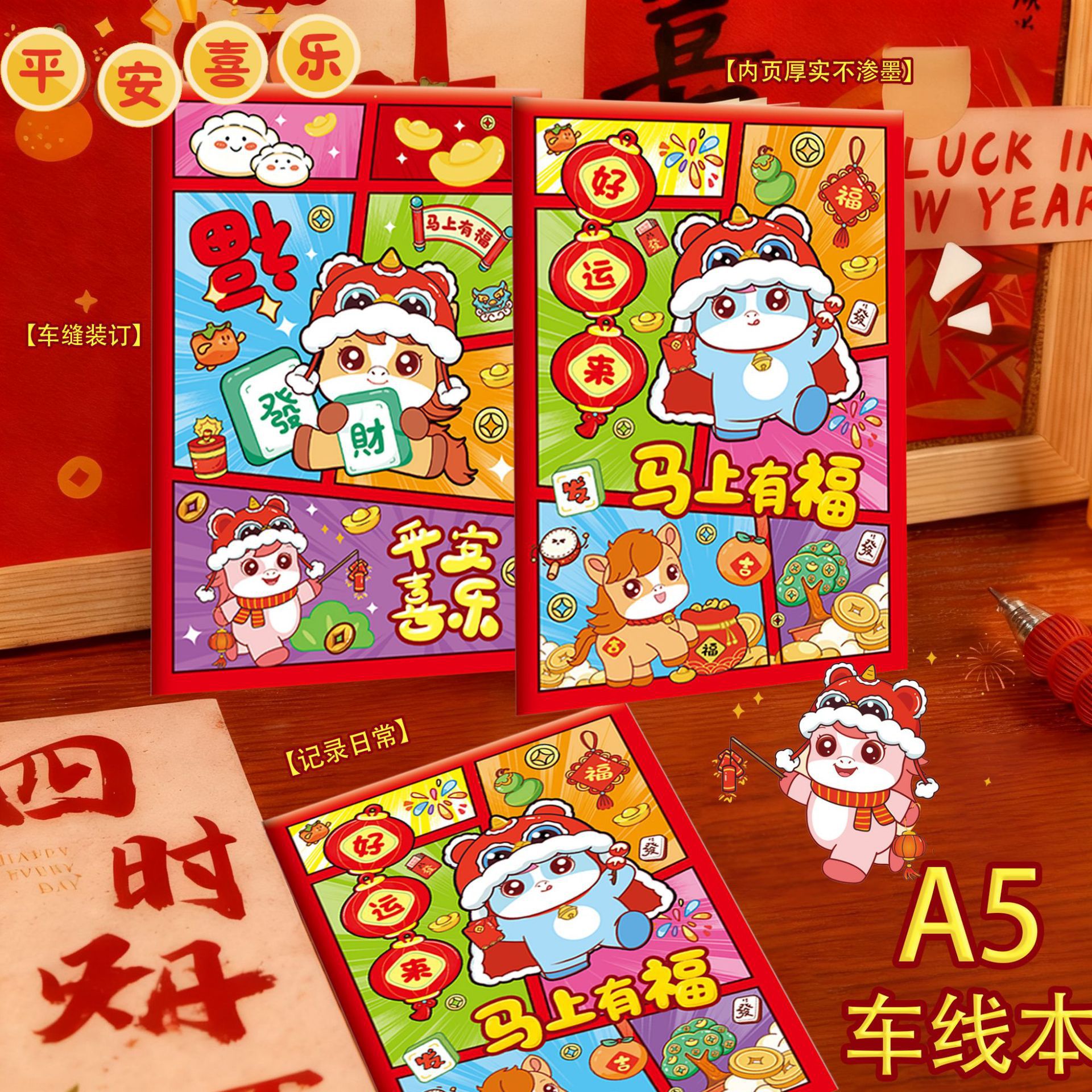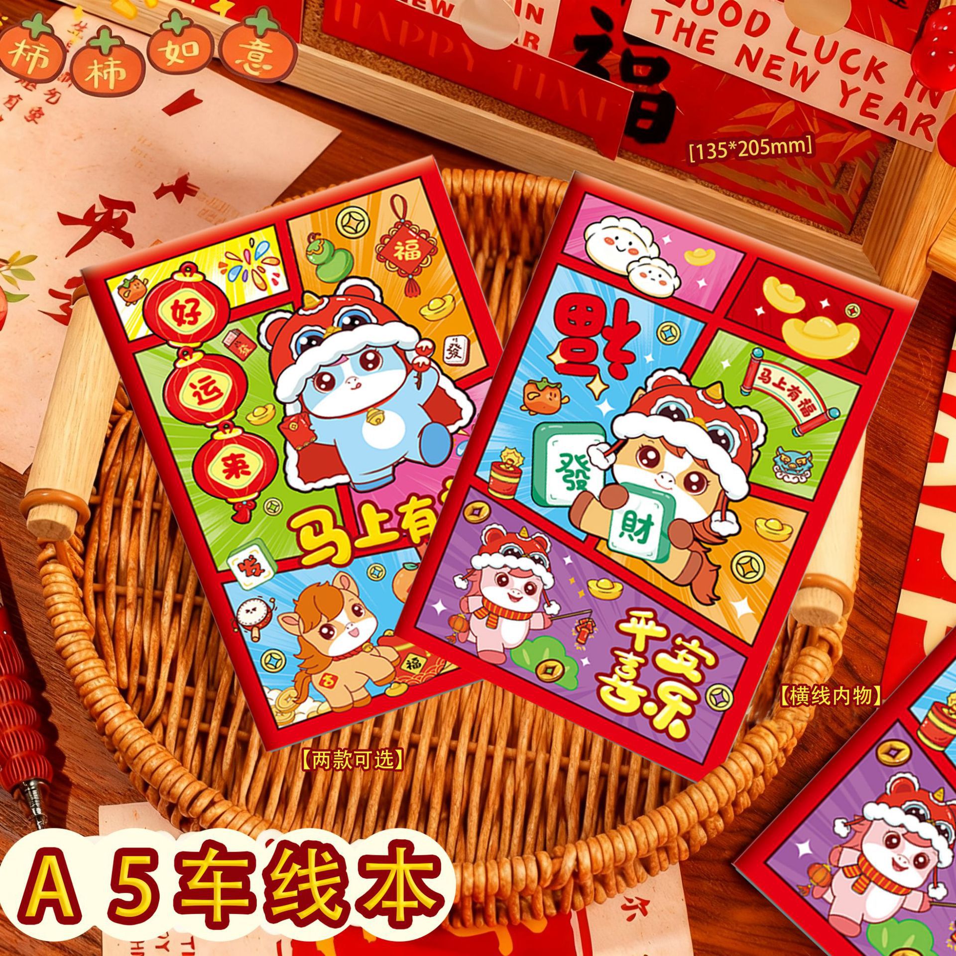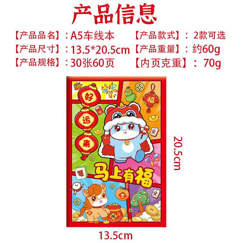 马年A5卡通车线本学生书写本子日记本横纹笔记本记事本奖励小礼品