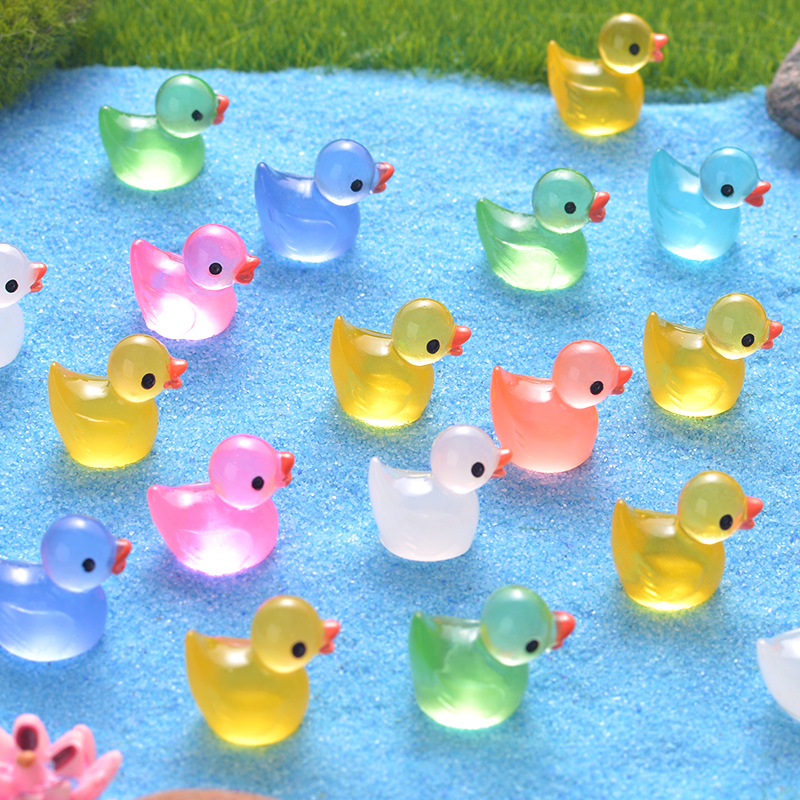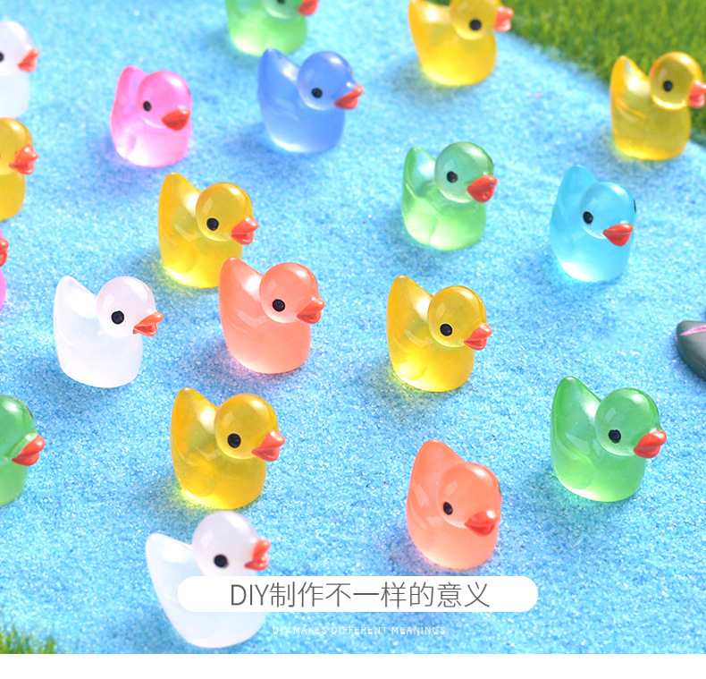 微景观夜光小鸭子摆件 家居桌面车载树脂diy工艺装饰品小配件批发
