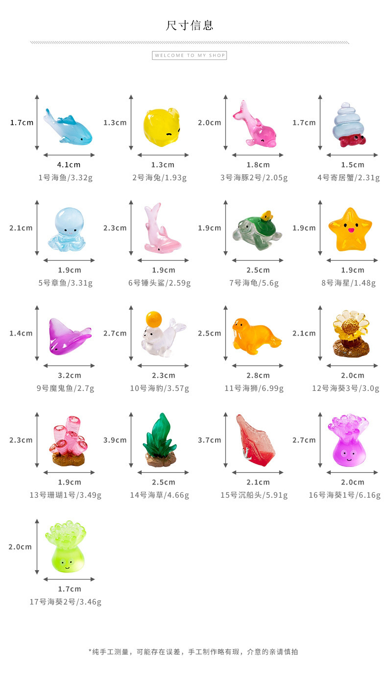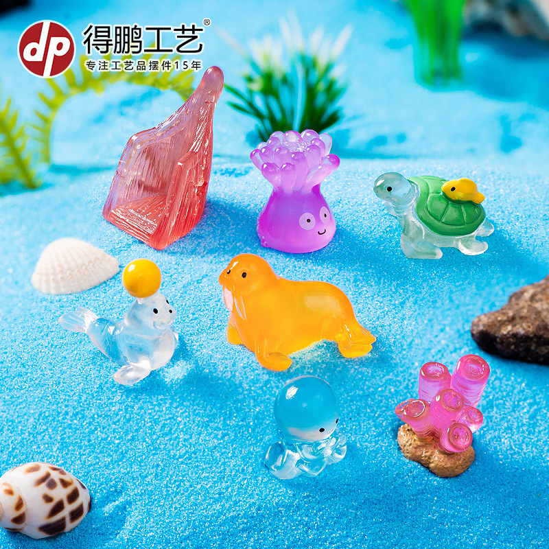 夜光海洋动物海豚海豹海狮海龟章鱼珊瑚树脂工艺品水族鱼缸小摆件