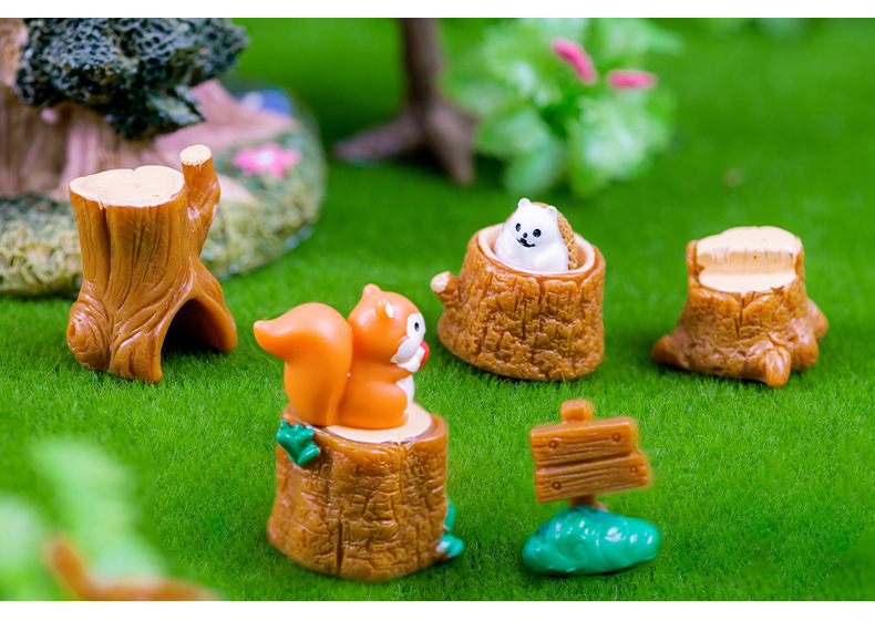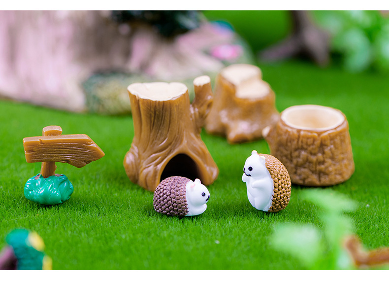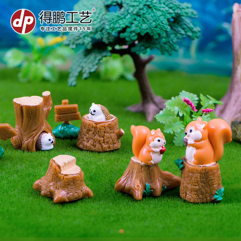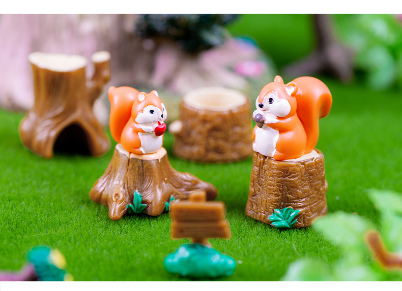 微景观摆件森林动物可爱松鼠刺猬树脂摆件桌面汽车装饰工艺品摆件