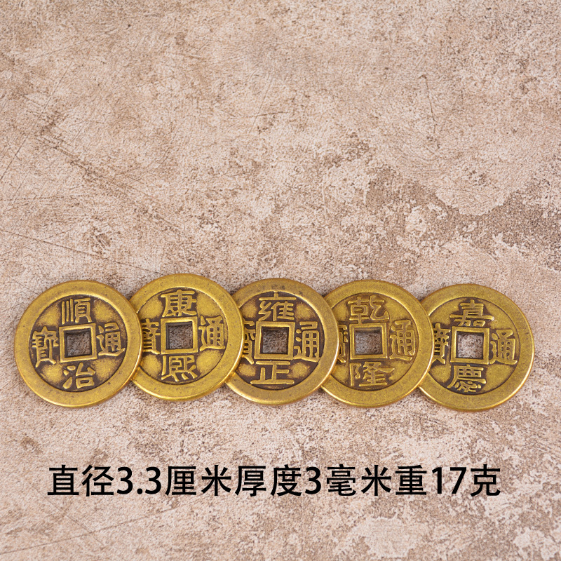 宏达 黄铜加厚五帝钱 仿古铜钱 清朝十帝钱批发铜钱挂件