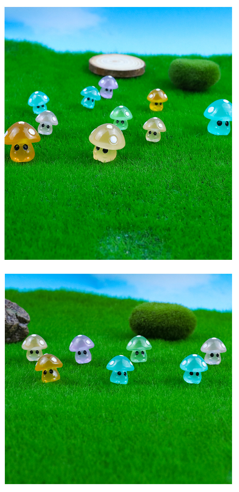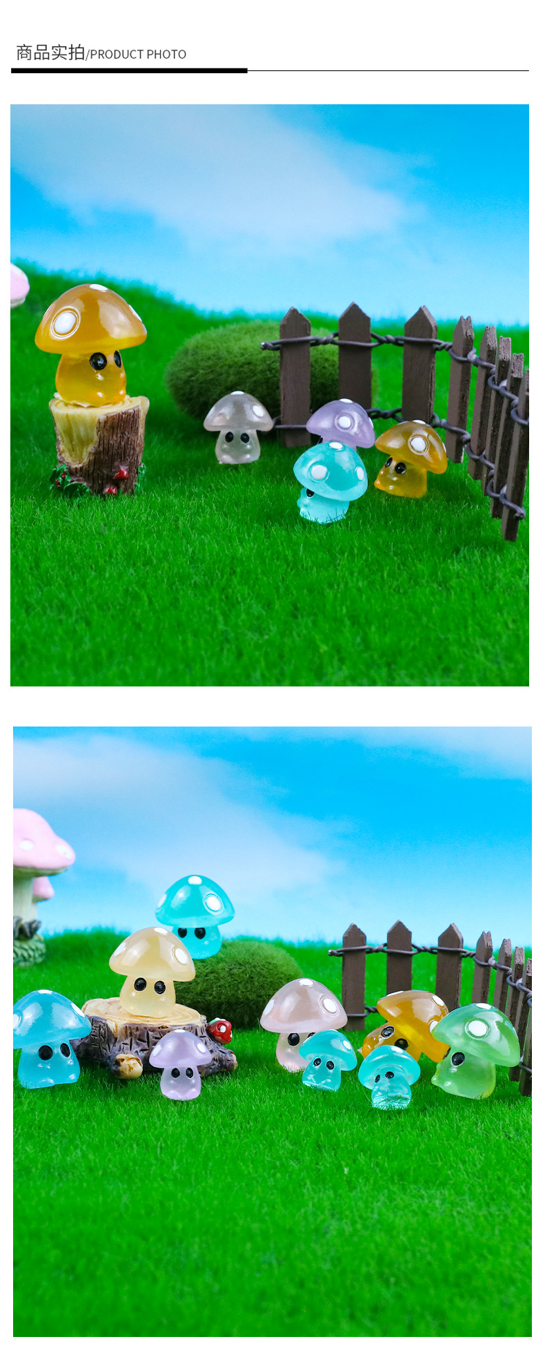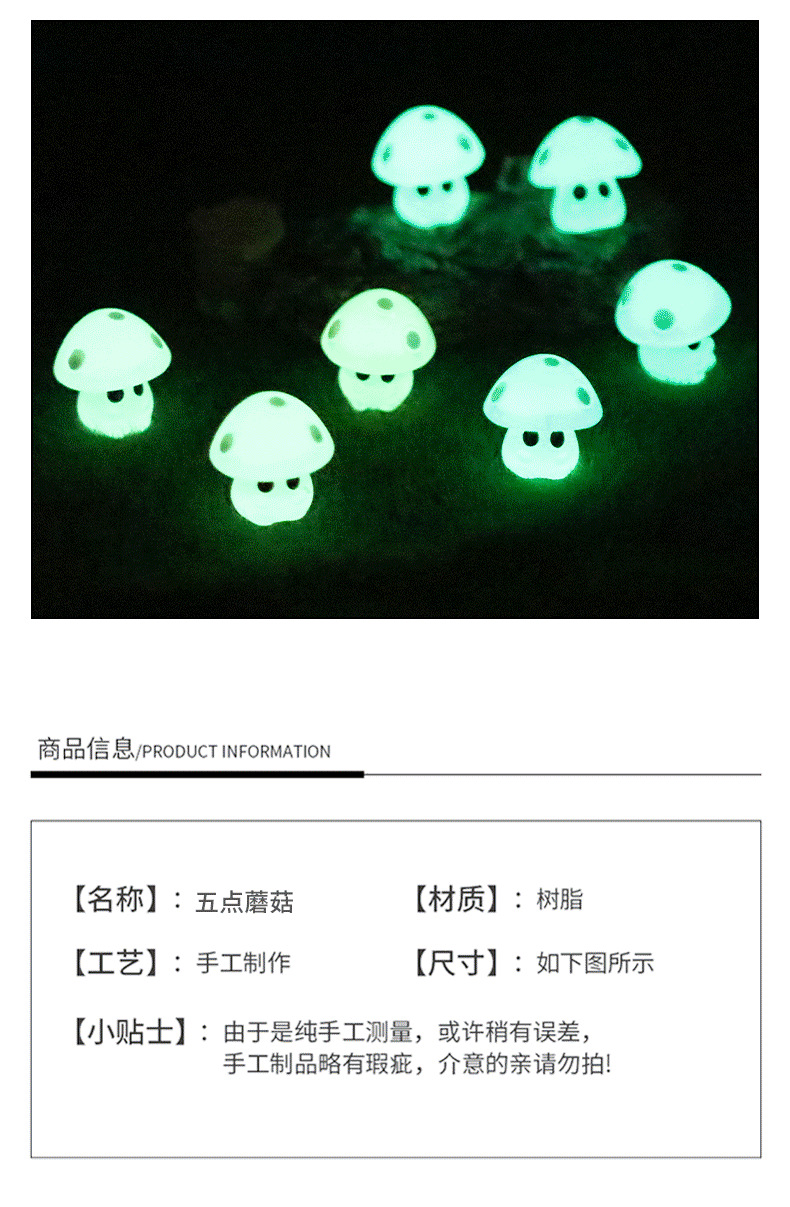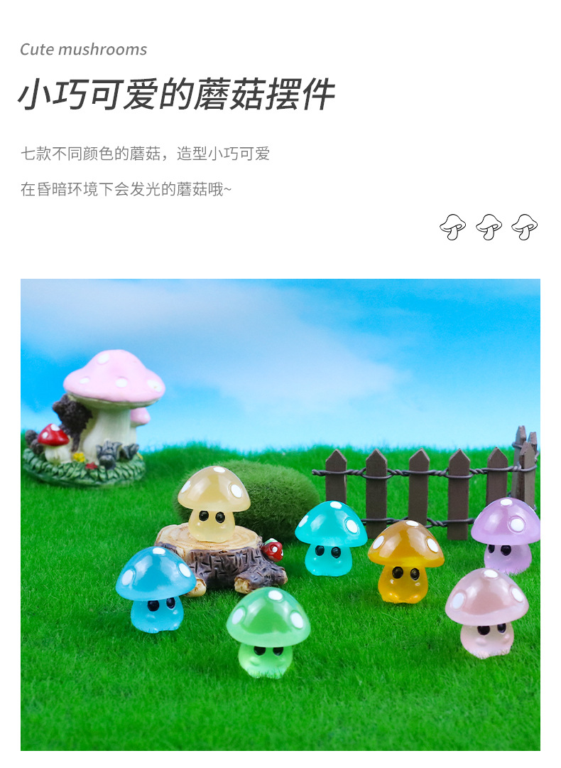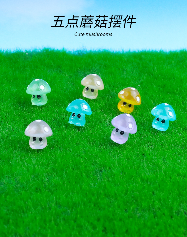微景观小摆件5点夜光蘑菇精灵公仔仿真树脂工艺品造景摆件装饰
