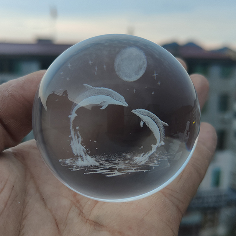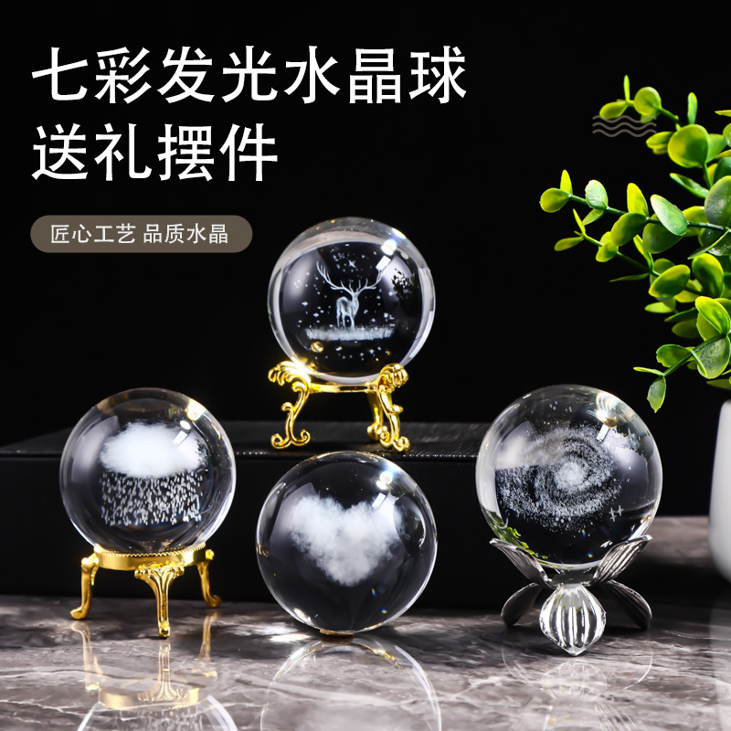 30水晶球内雕球玻璃球太阳银河系家居工艺品摆件激光雕刻内雕月球