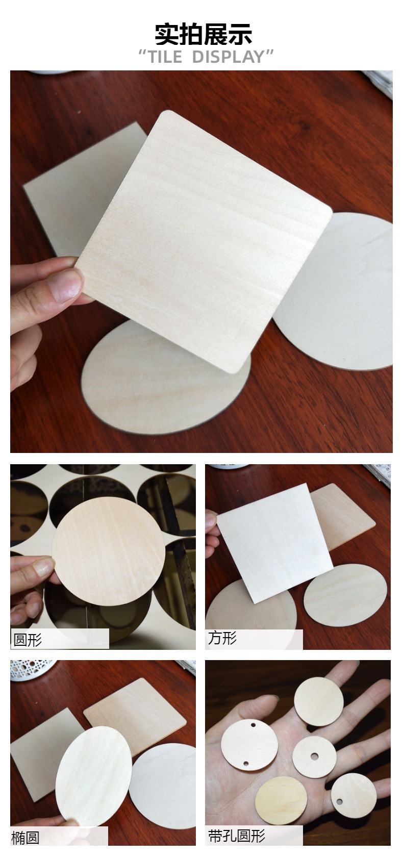 激光切割原木片圆形木片正方形木板长方形木diy粘土涂鸦椭圆木片