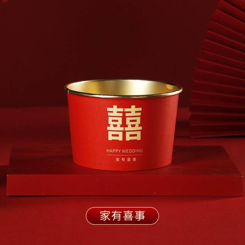 结婚一次性红碗婚宴加厚喜碗婚礼酒席圆形碗筷餐具套装纸碗纸质