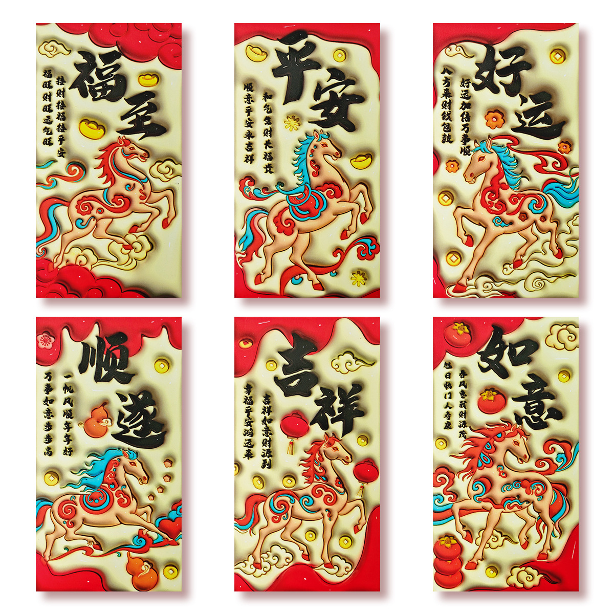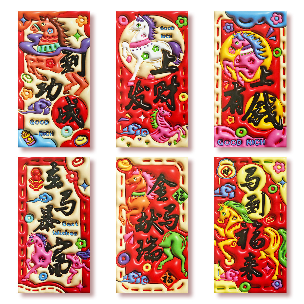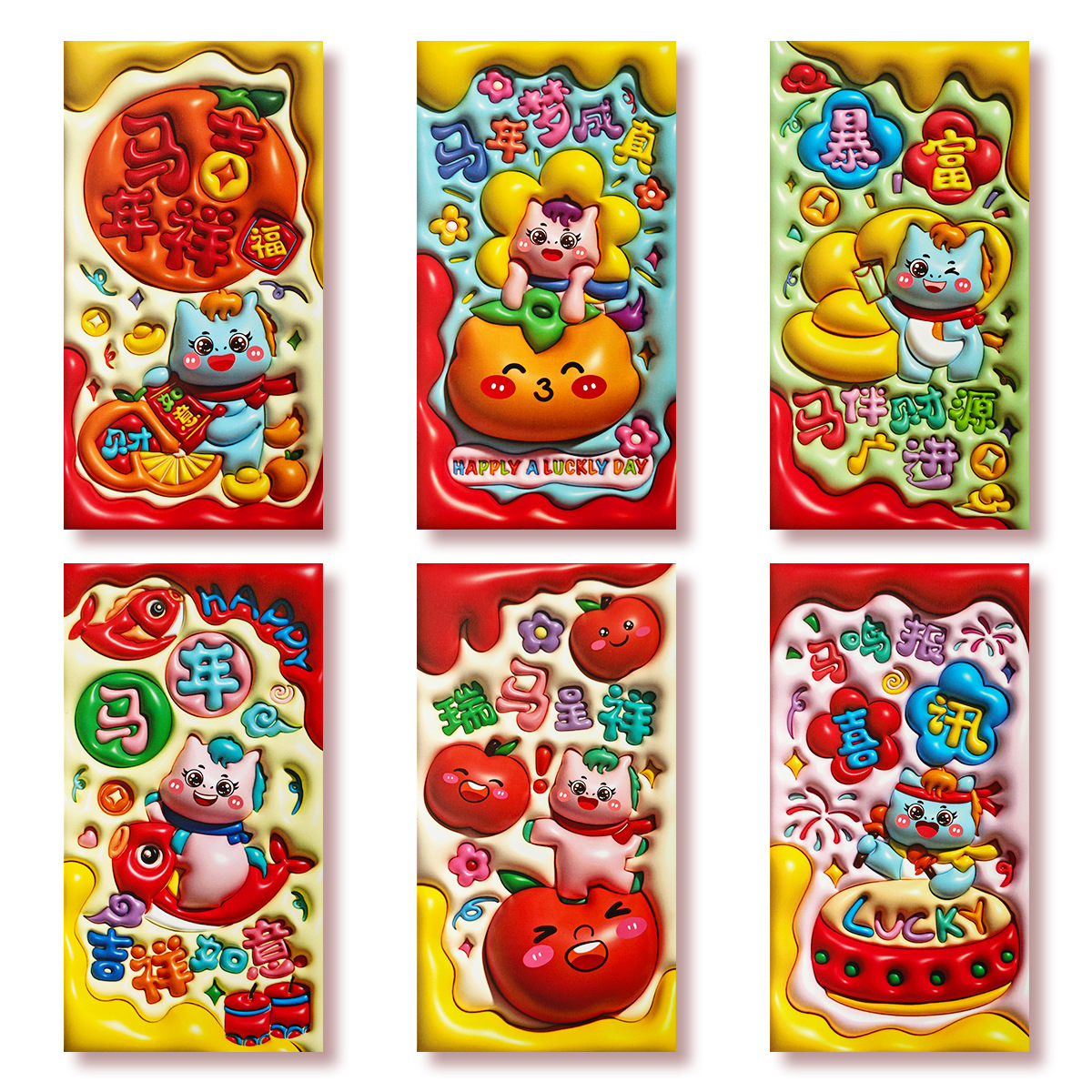 抖音爆款2026马年5D平面毛绒刺绣风格可爱卡通Q版春节利是封红包