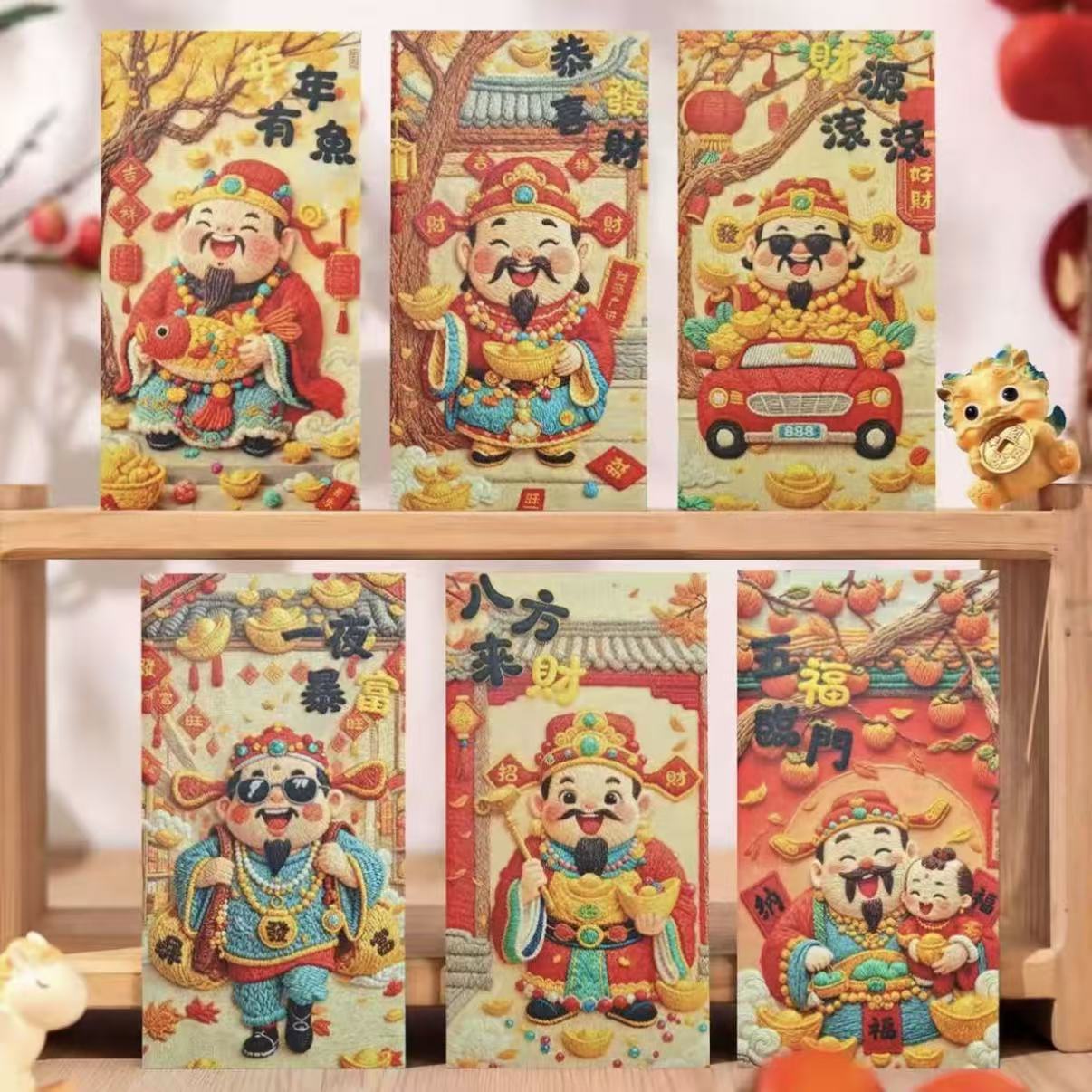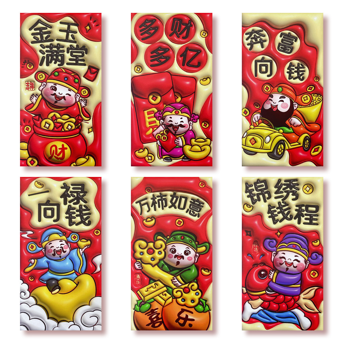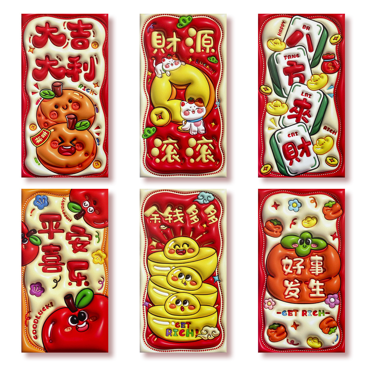 抖音爆款2026马年5D平面毛绒刺绣风格可爱卡通Q版春节利是封红包