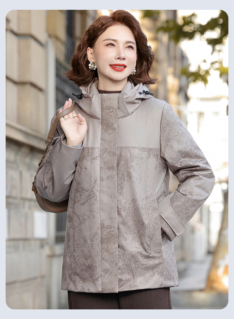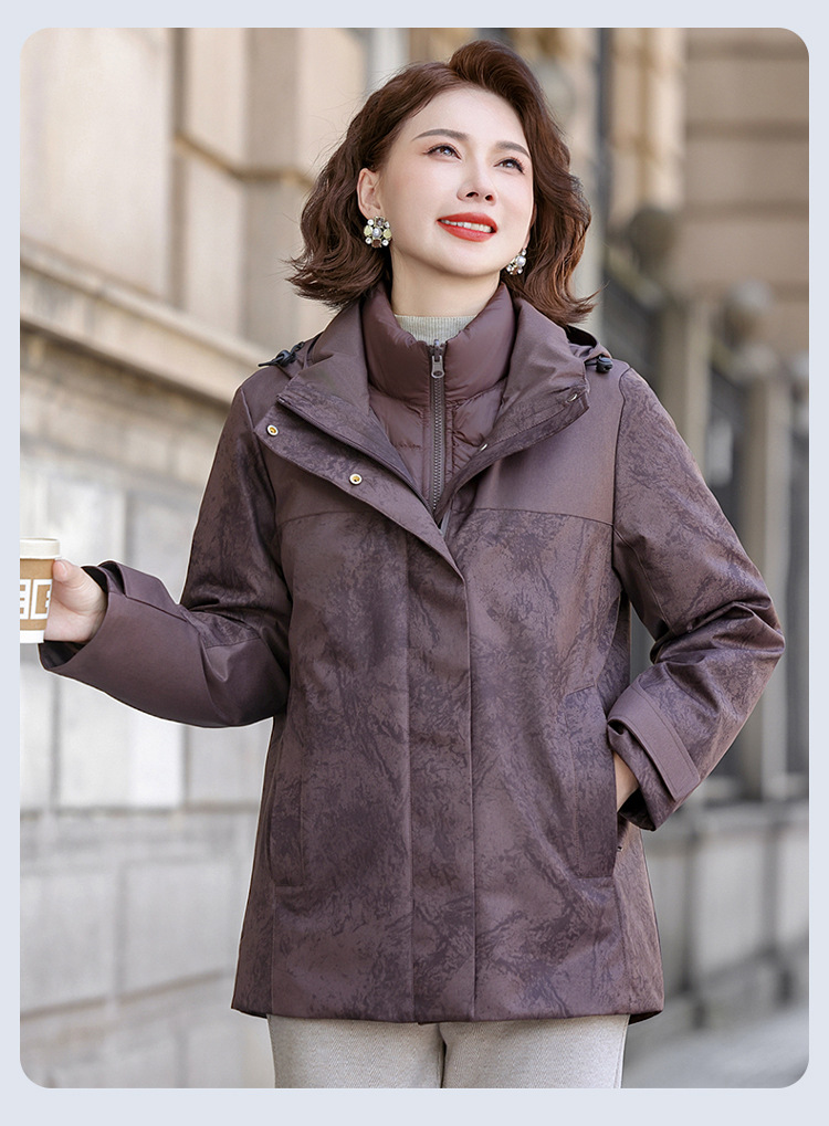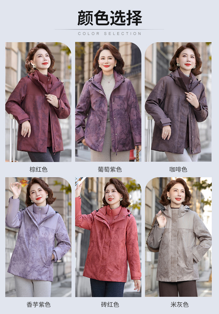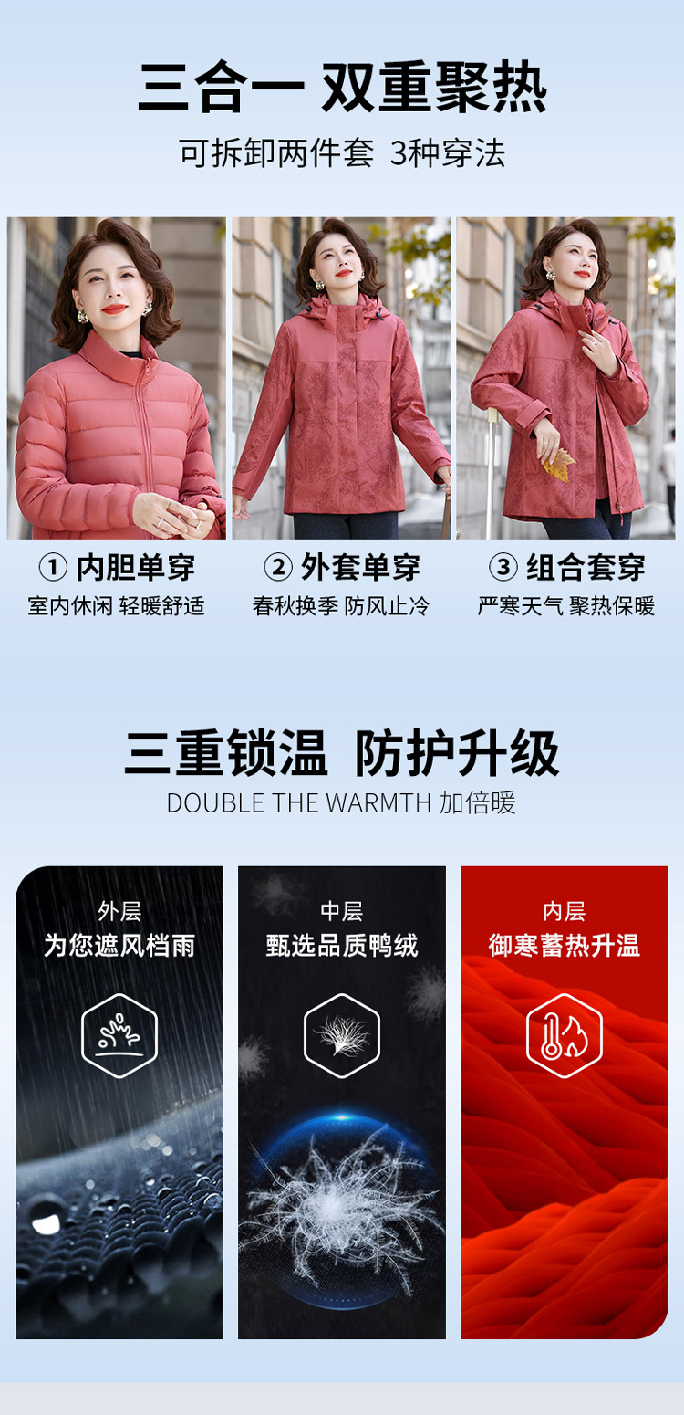 妈妈装三合一羽绒服女2025款冬季一衣三穿内胆中老年女装印花外套