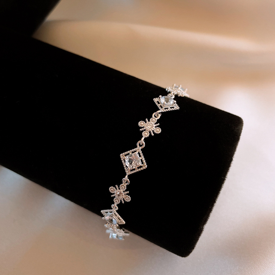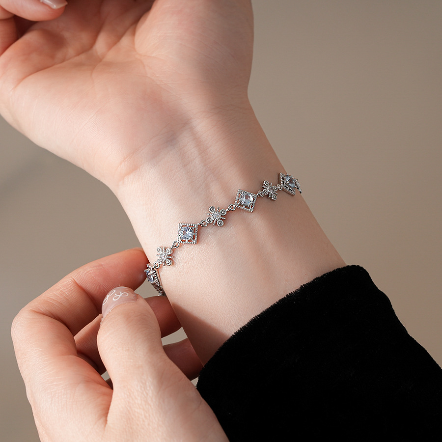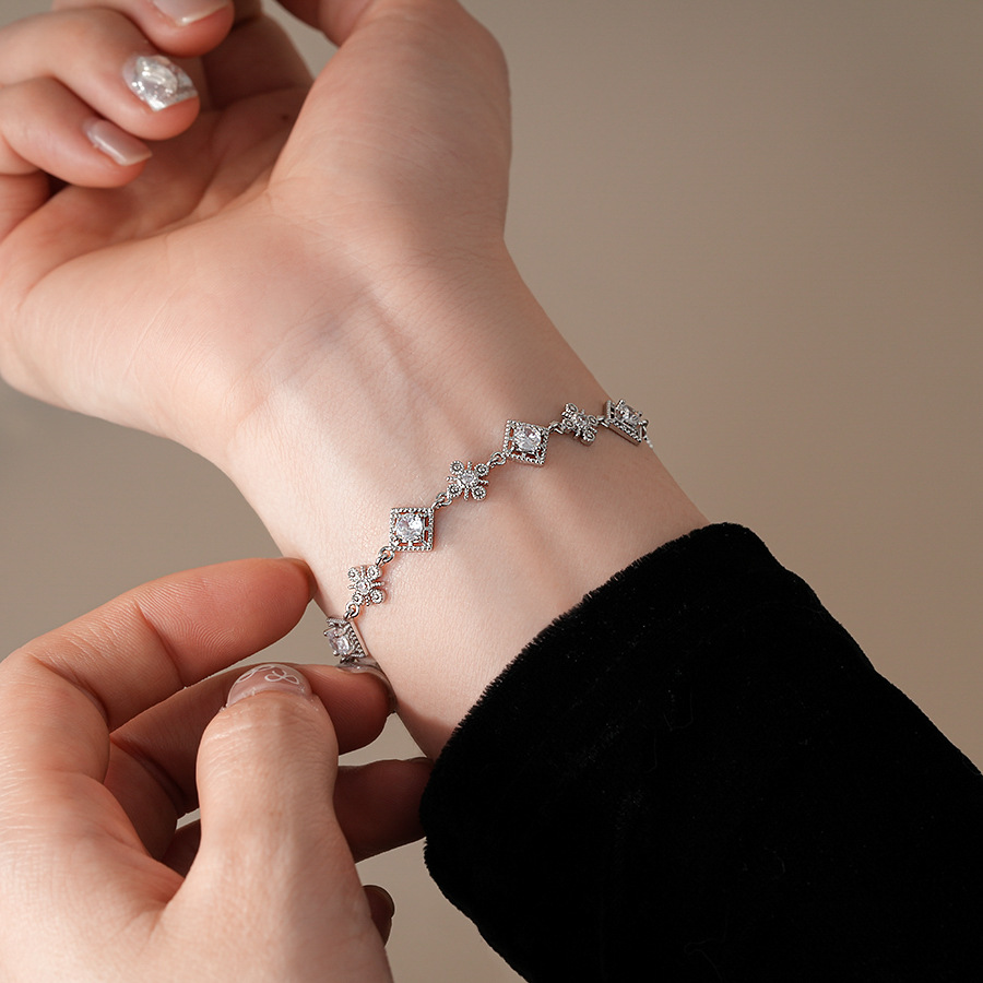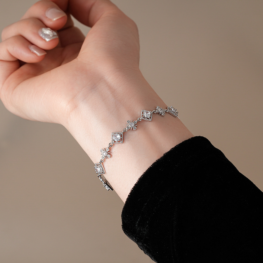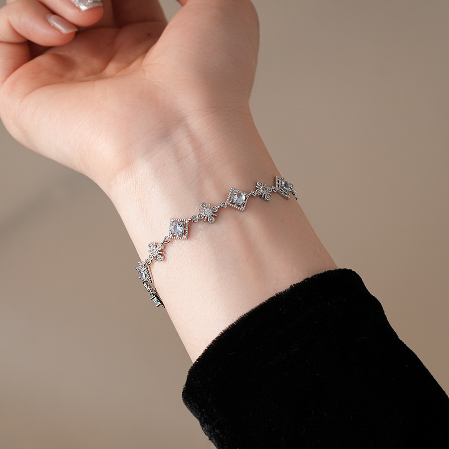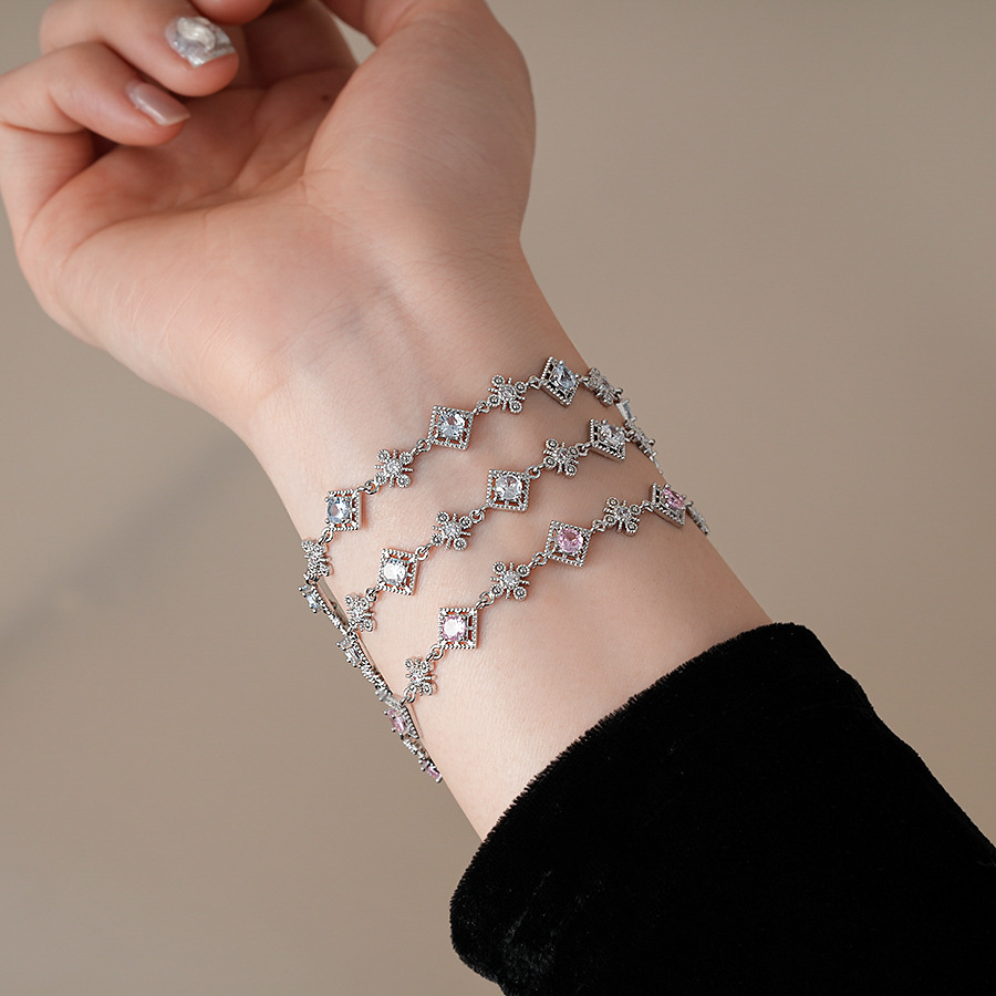 韩国超闪锆石菱形花朵手链时尚轻奢高级感手环时尚精致百搭手饰女