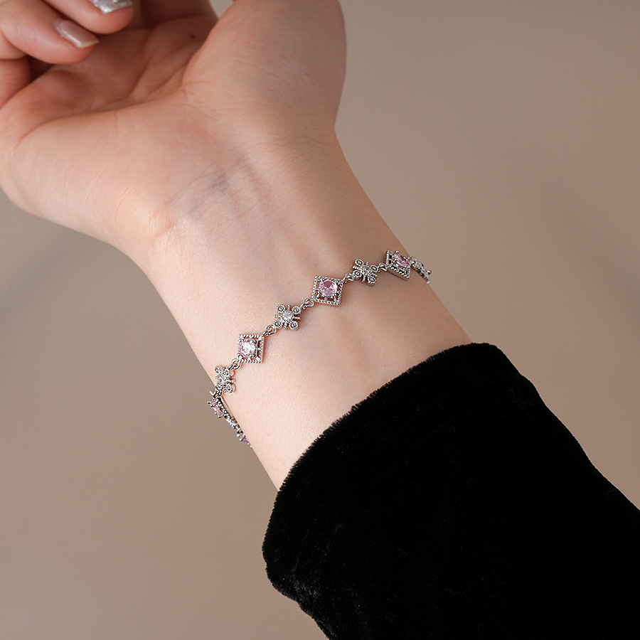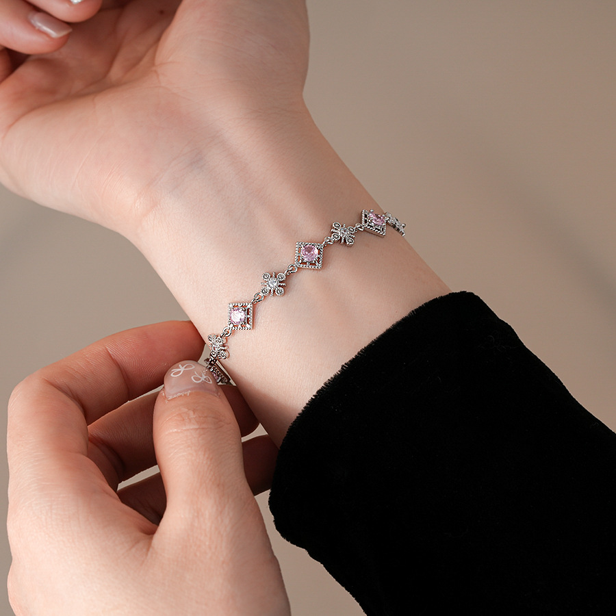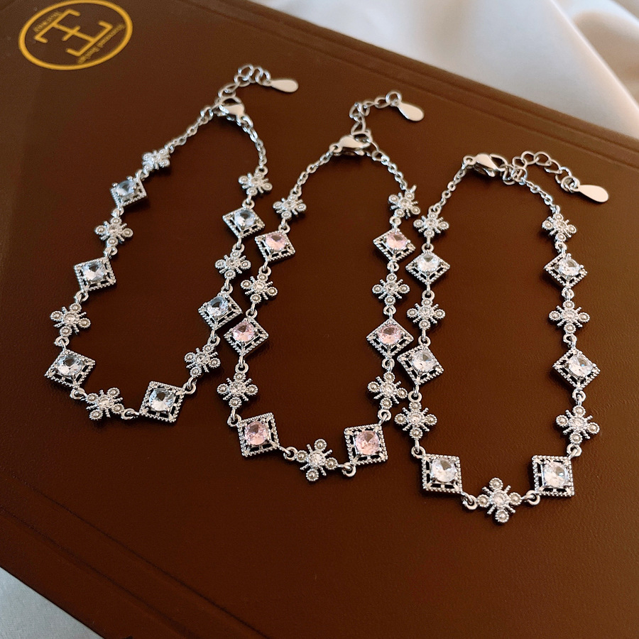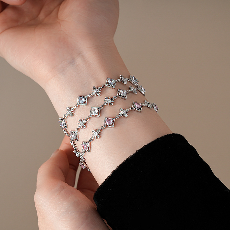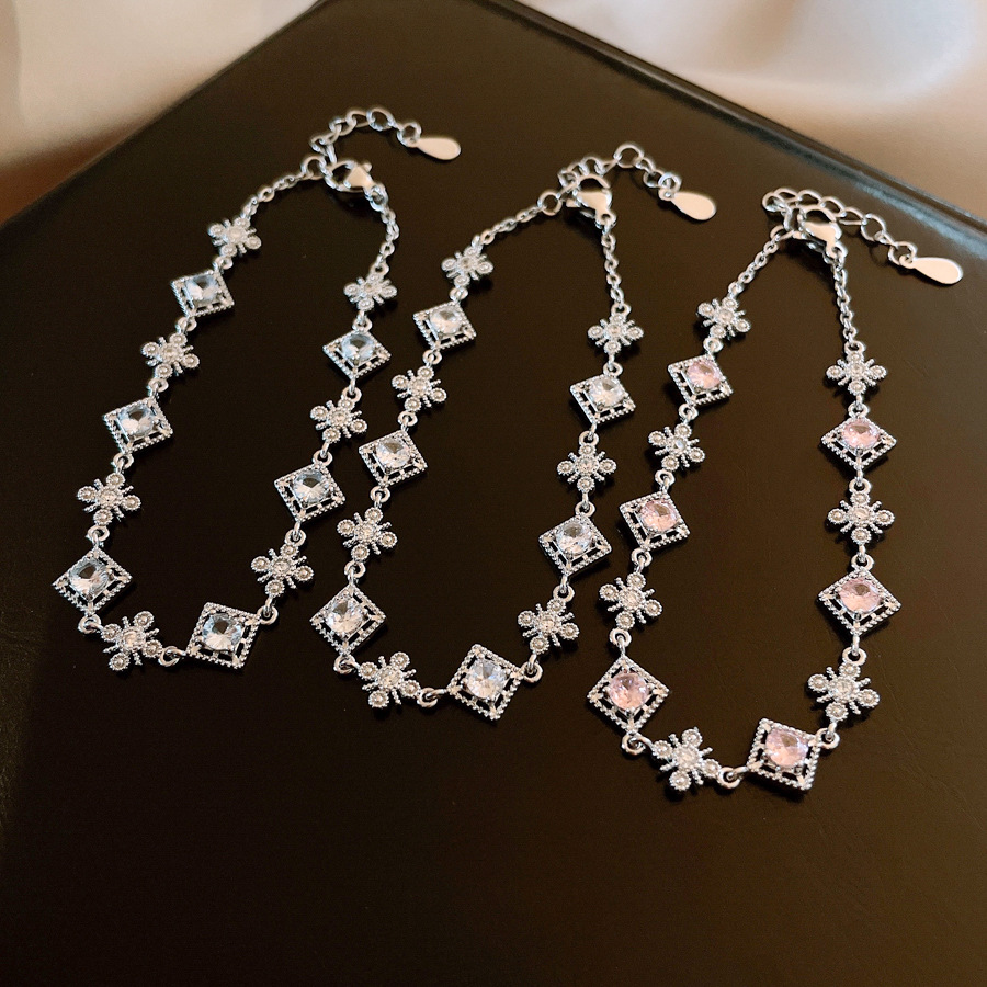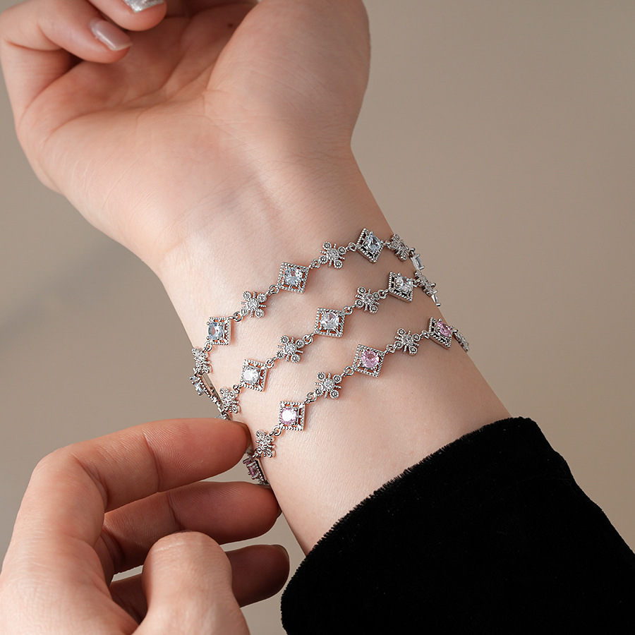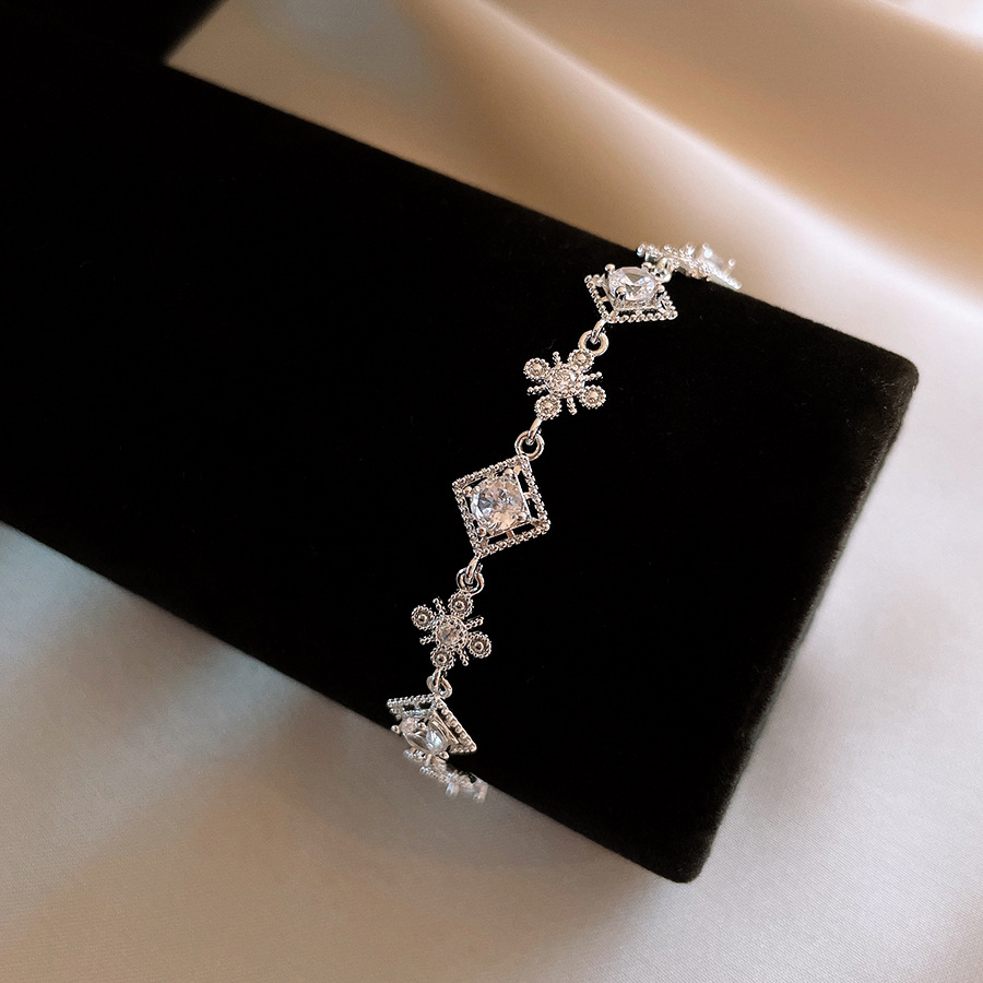 韩国超闪锆石菱形花朵手链时尚轻奢高级感手环时尚精致百搭手饰女
