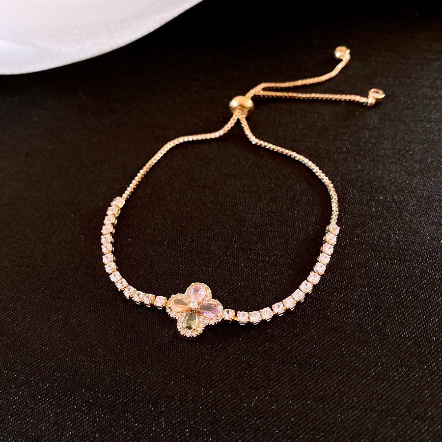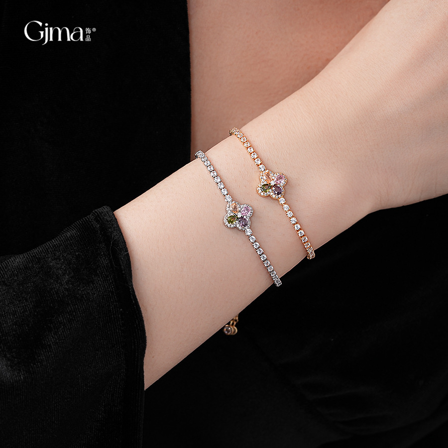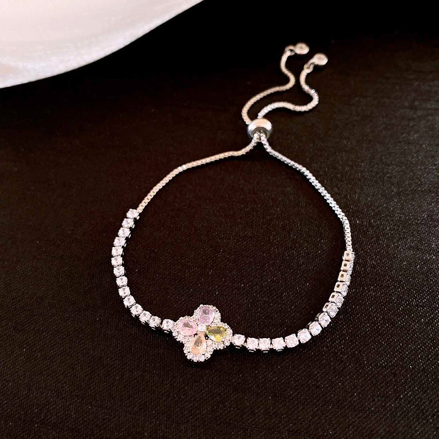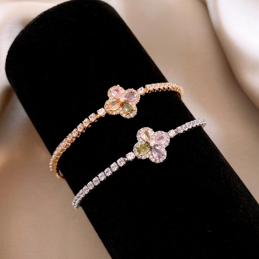 韩版锆石彩色花朵手链时尚清新百搭手环轻奢高级感小众气质手饰女