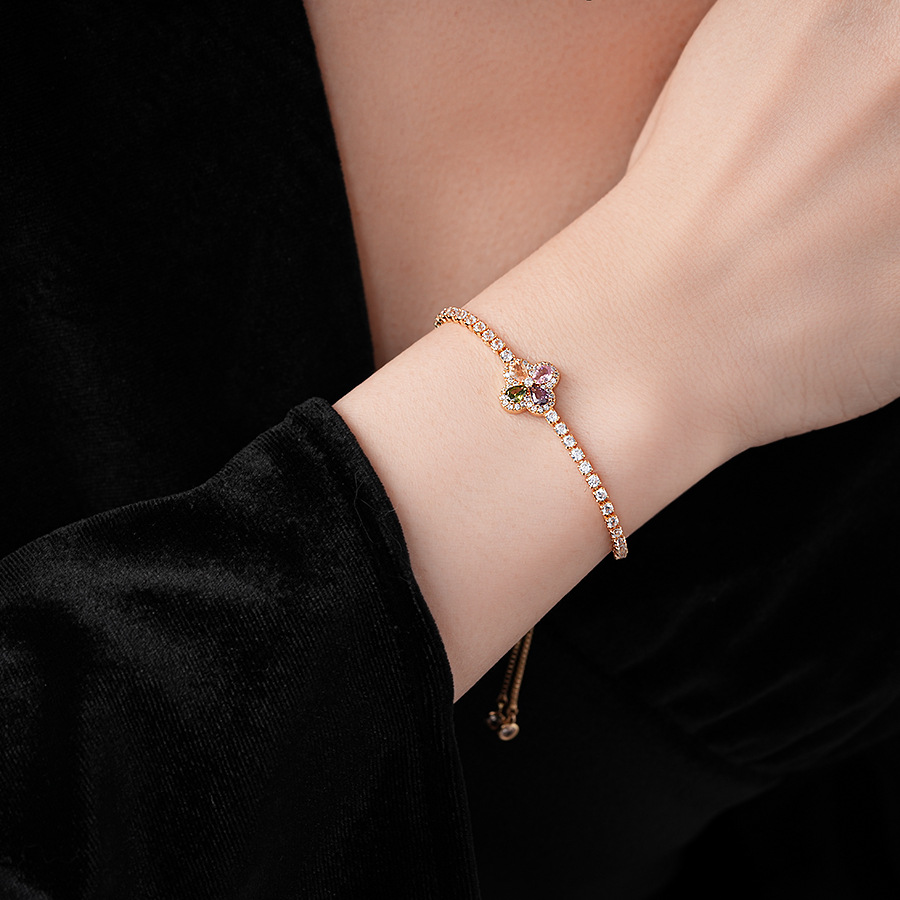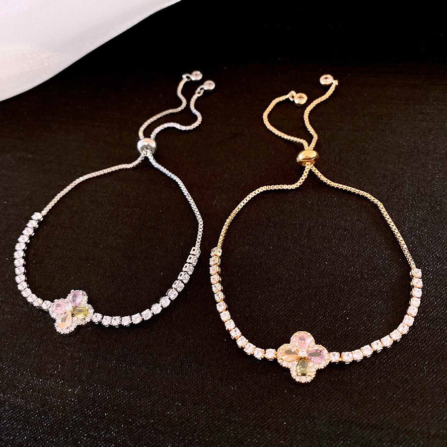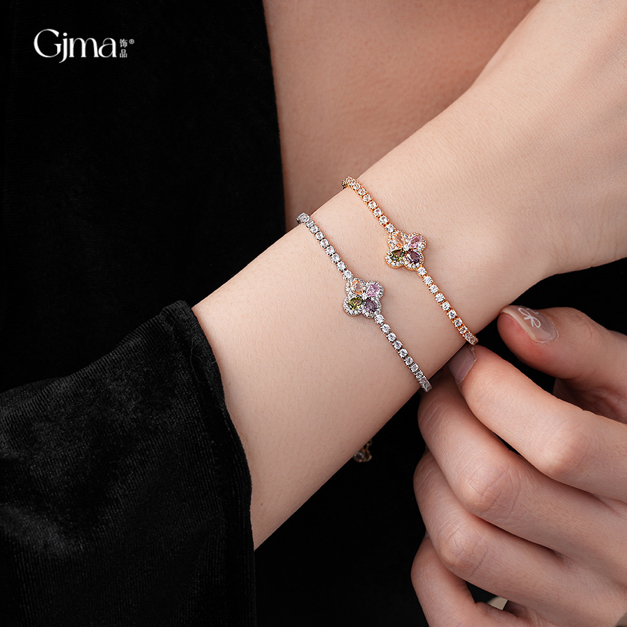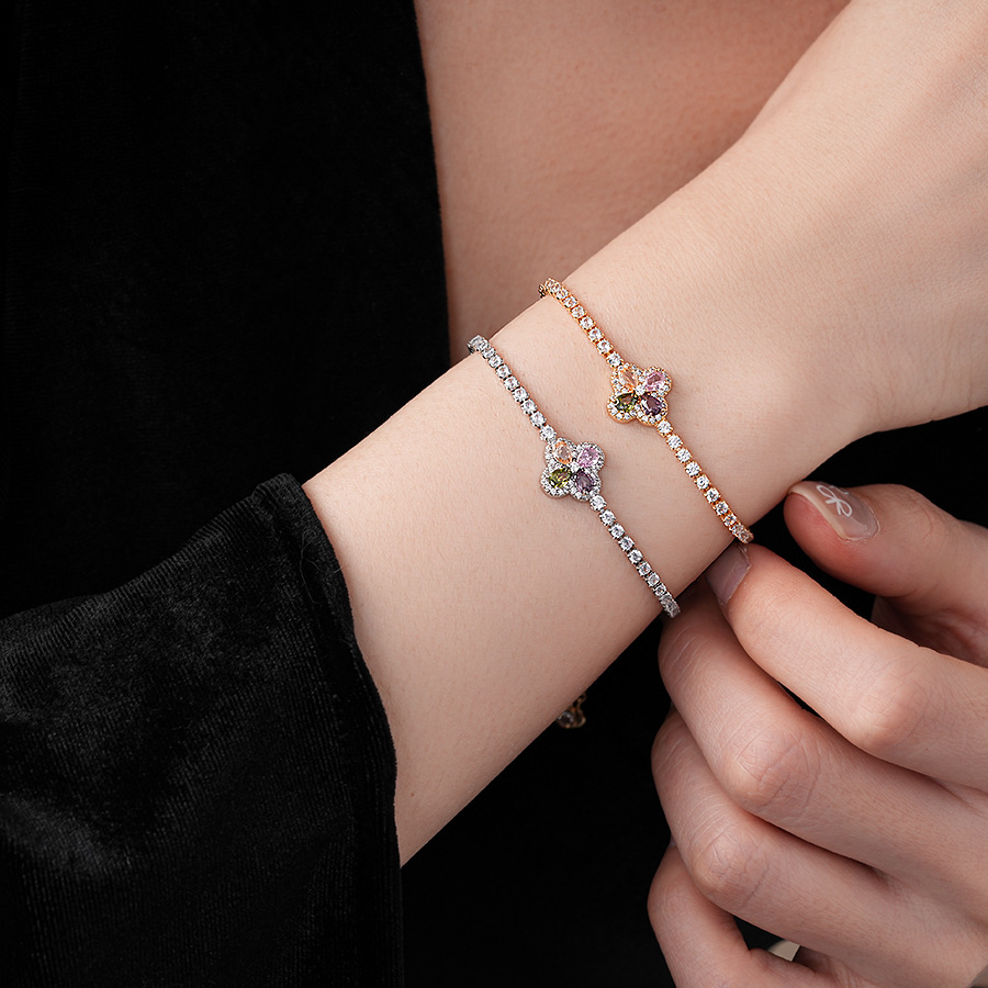 韩版锆石彩色花朵手链时尚清新百搭手环轻奢高级感小众气质手饰女