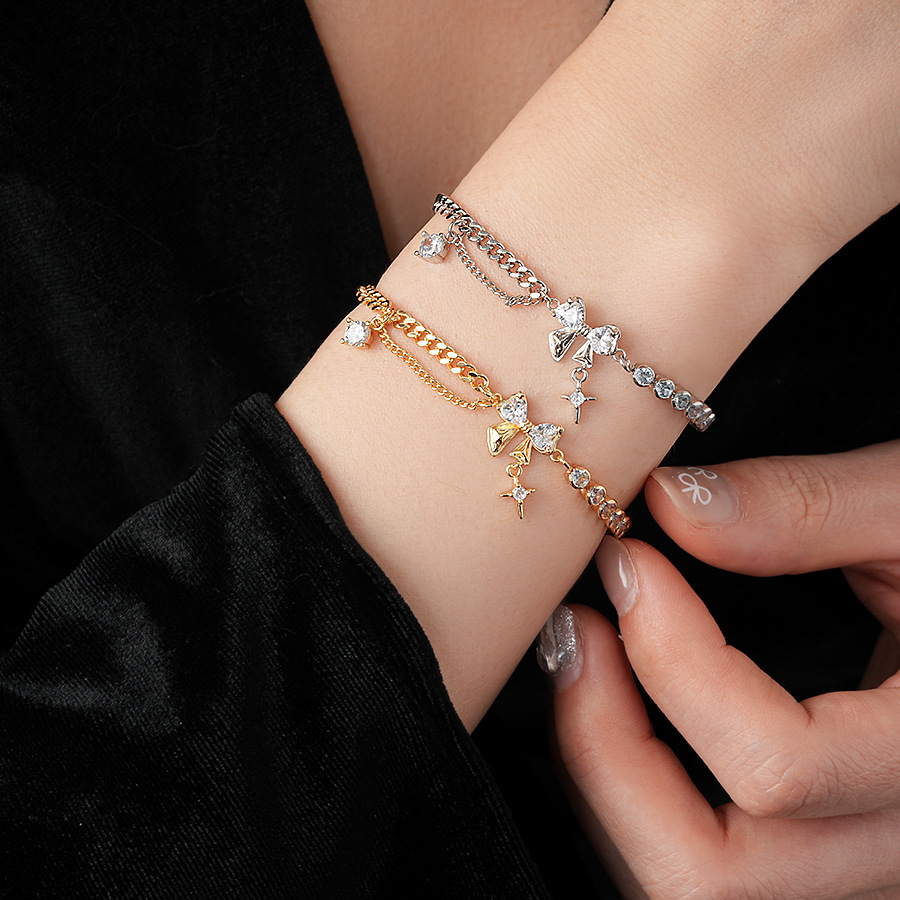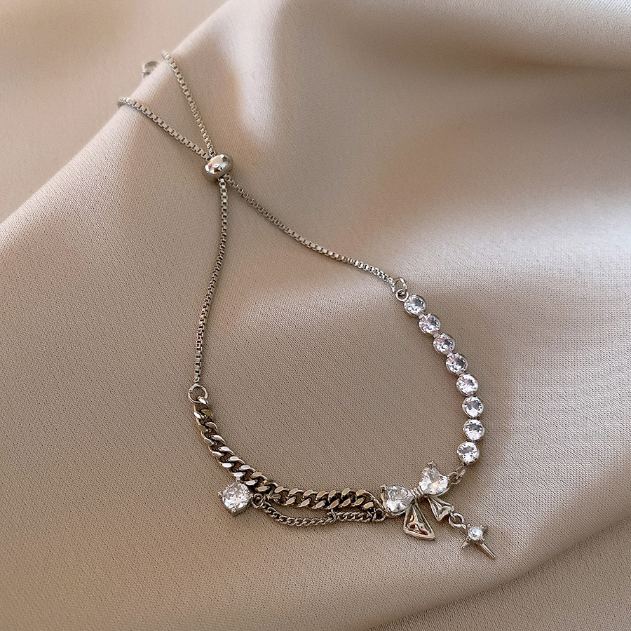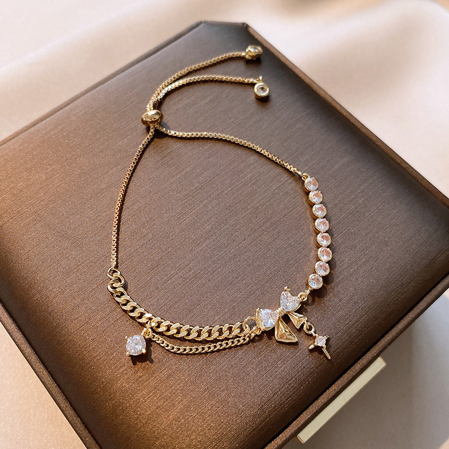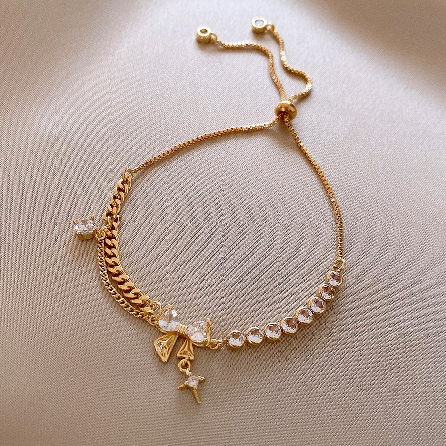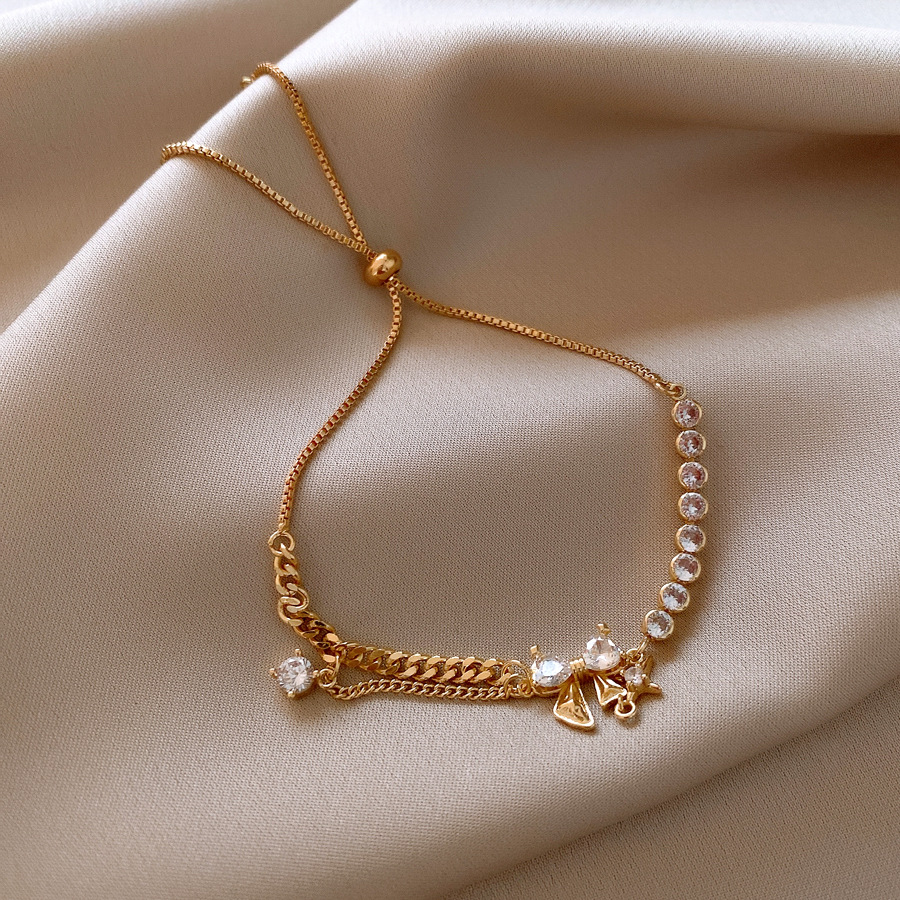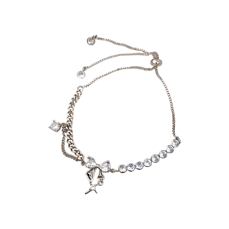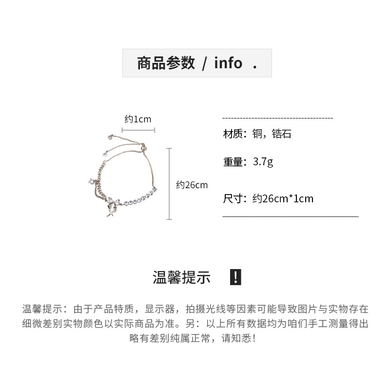 锆石蝴蝶结芒星不对称抽拉式手链小众设计冷淡风手环时尚百搭手饰