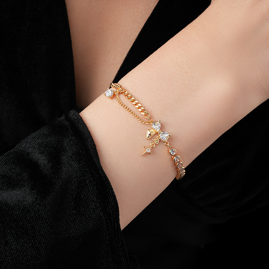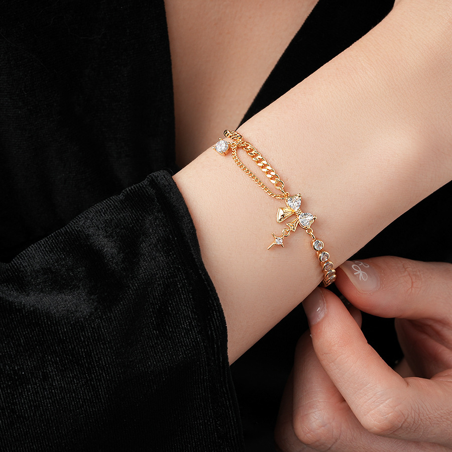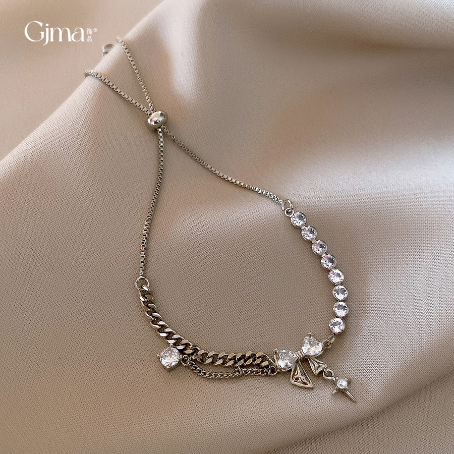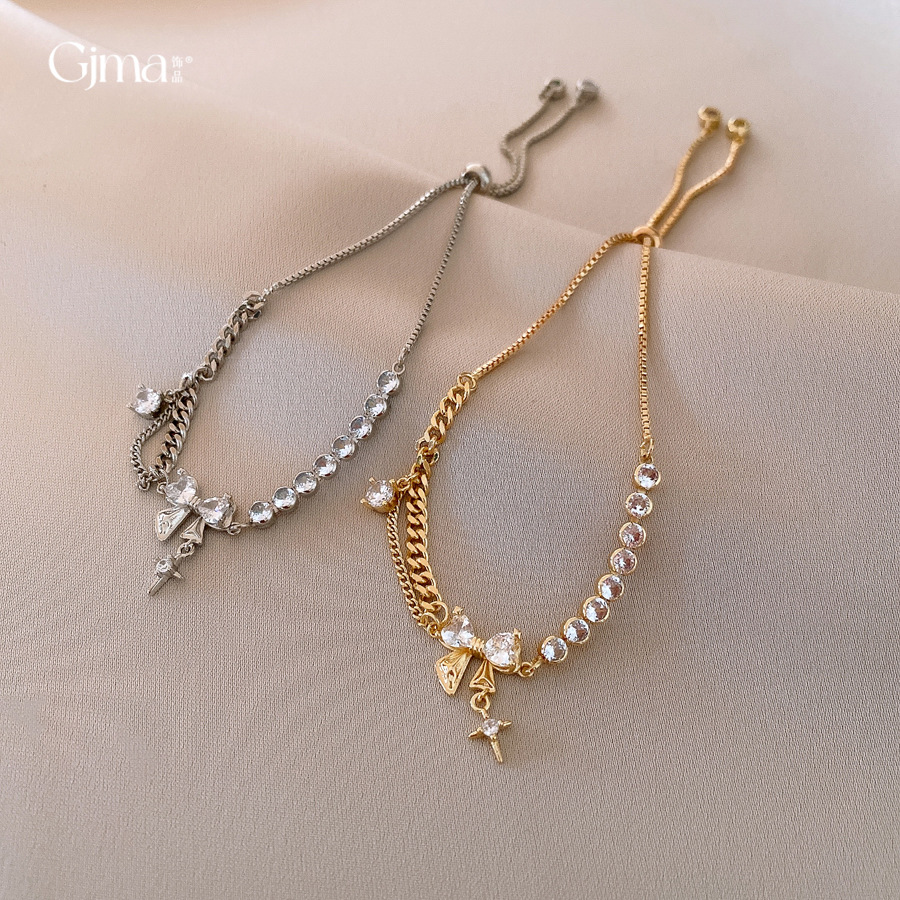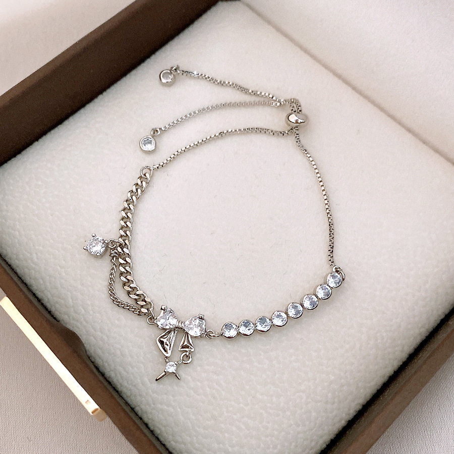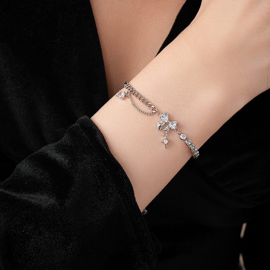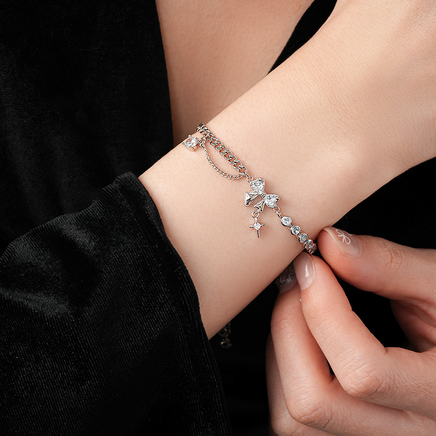 锆石蝴蝶结芒星不对称抽拉式手链小众设计冷淡风手环时尚百搭手饰