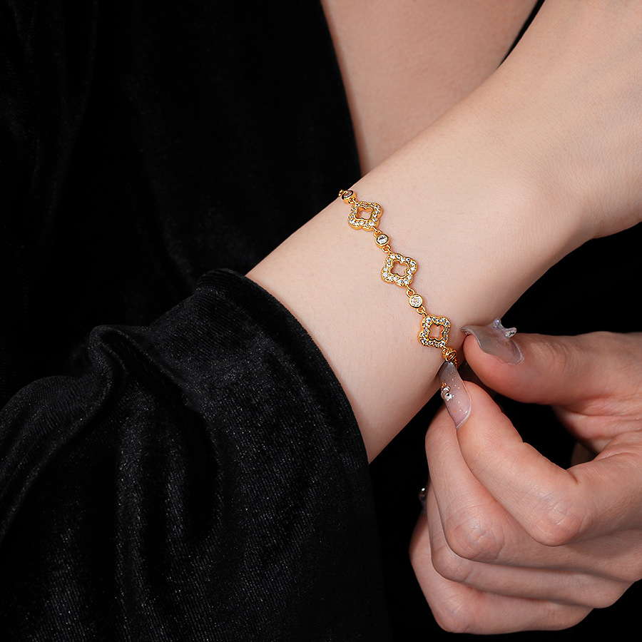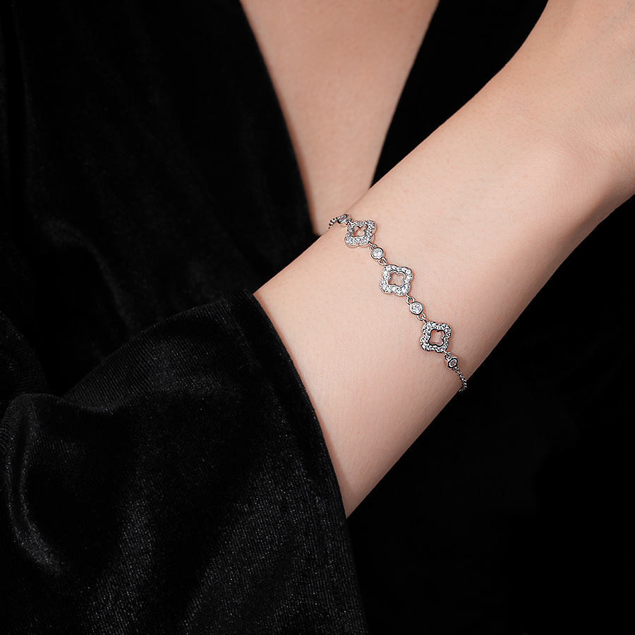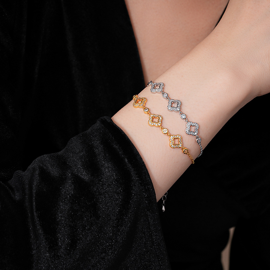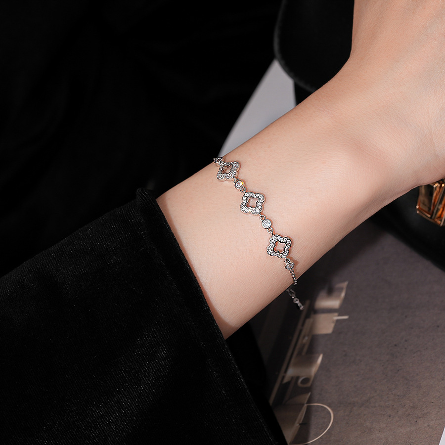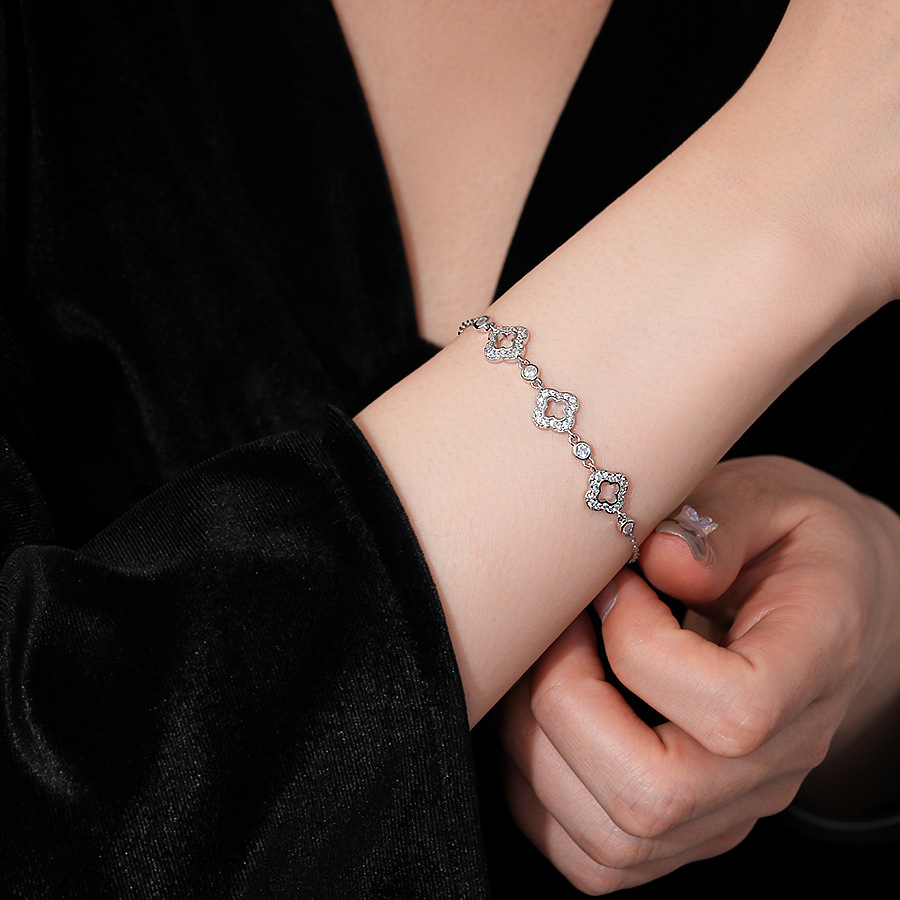 跨境镂空锆石菱形花朵手链轻奢高级感手环简约百搭手饰设计感小众