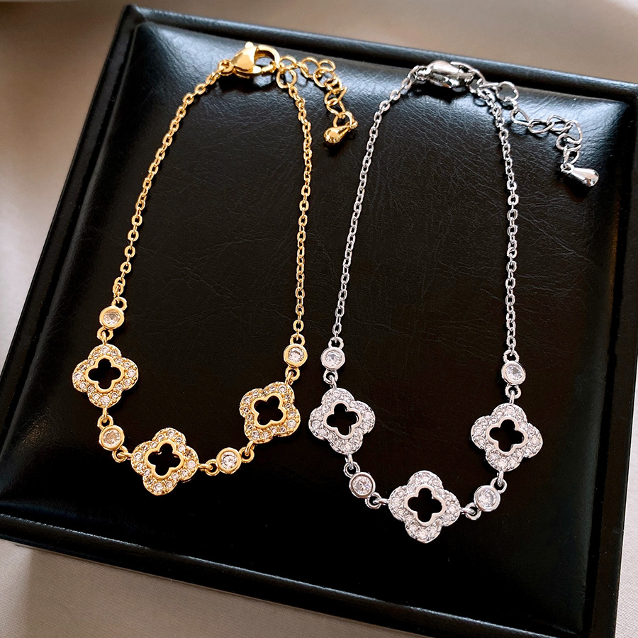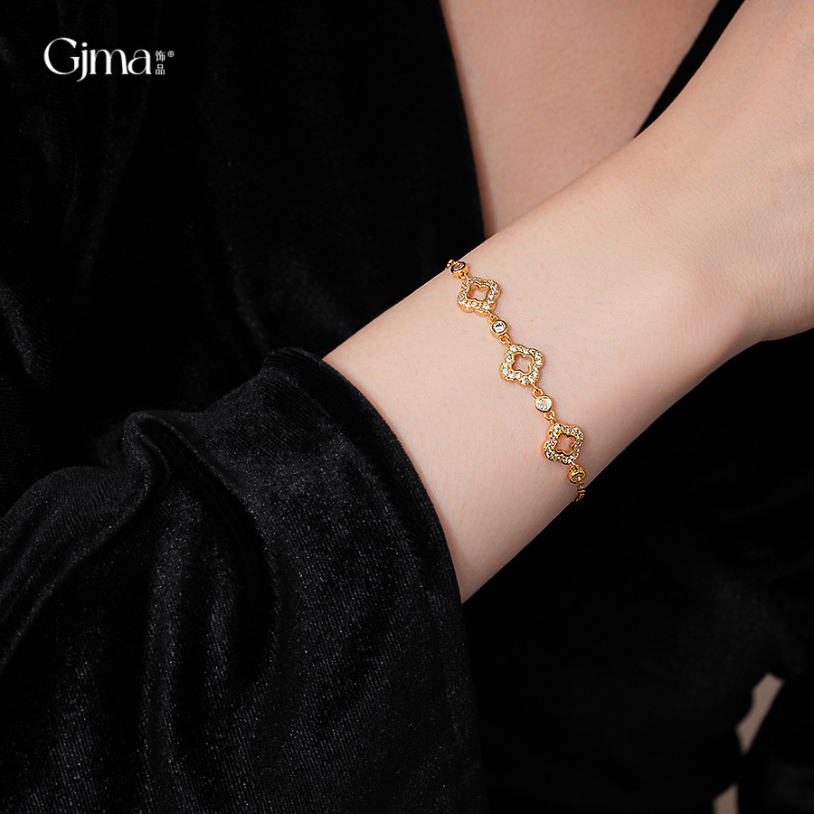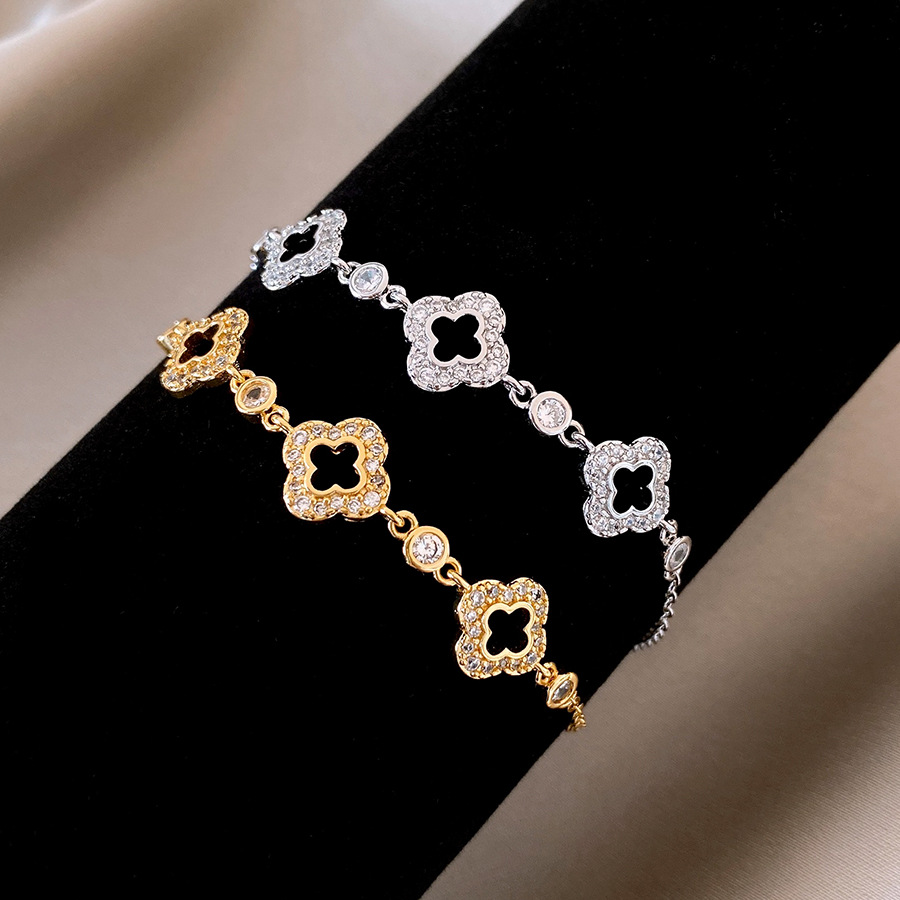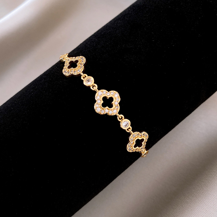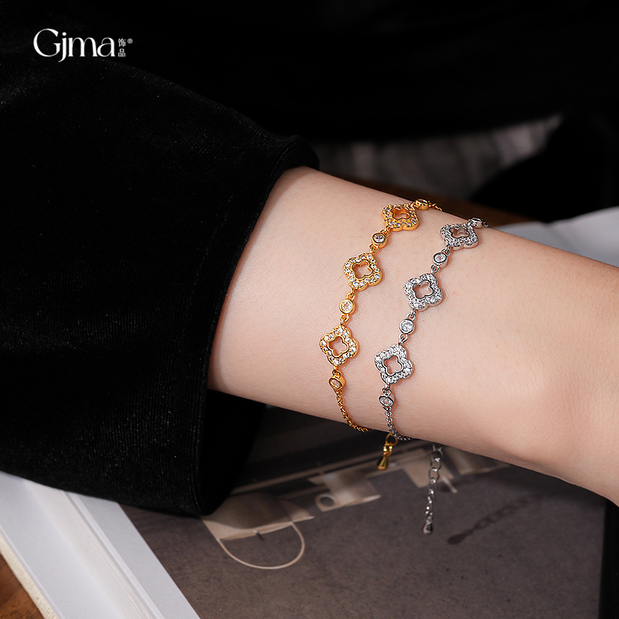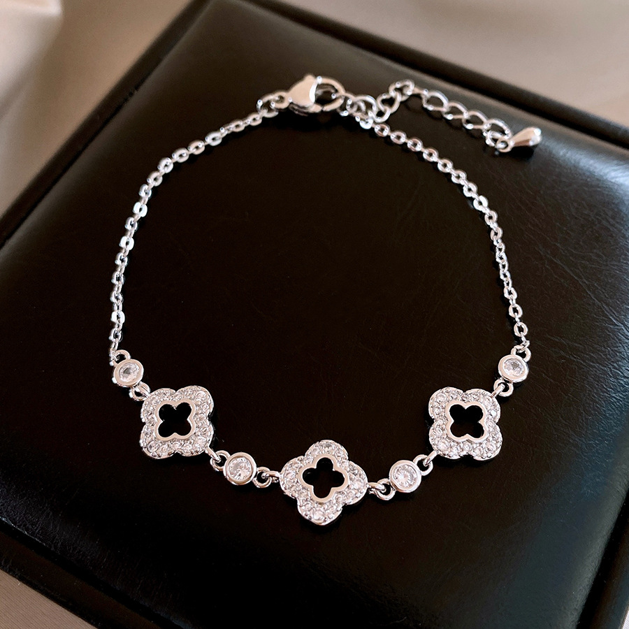 跨境镂空锆石菱形花朵手链轻奢高级感手环简约百搭手饰设计感小众