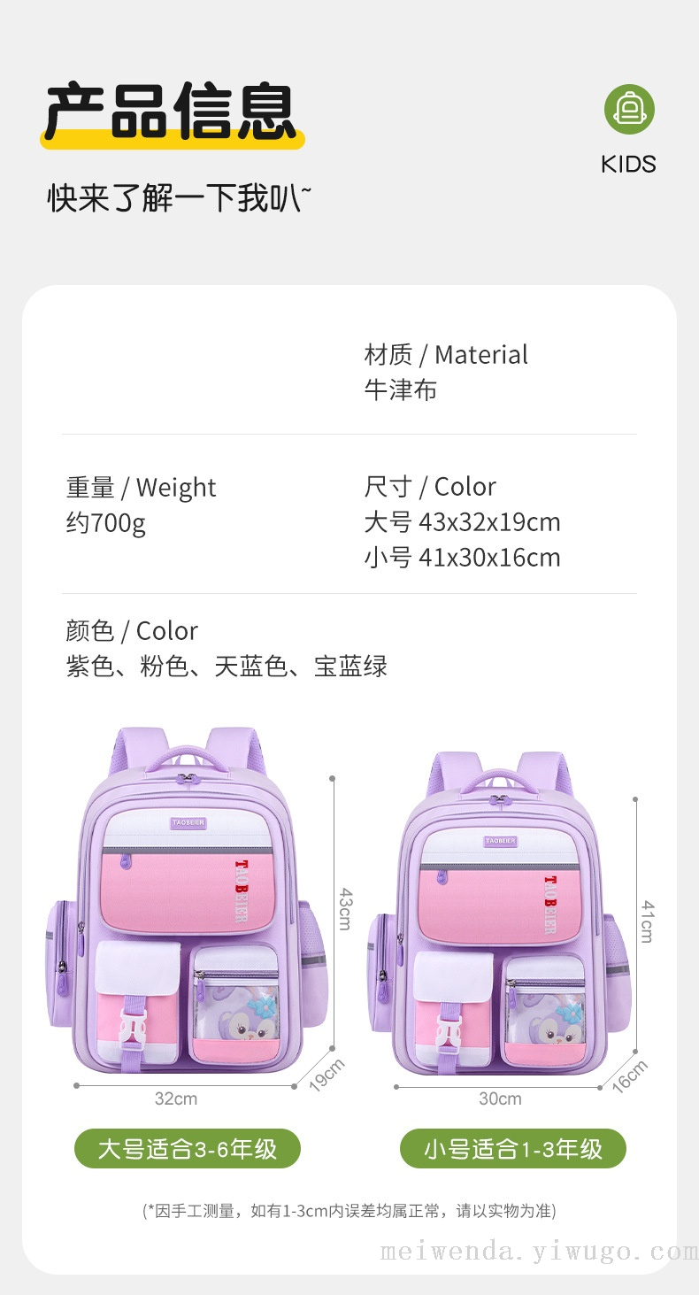 美文达箱包厂 位于“书包之都”湖南省邵东市。从事箱包制造行业近20年,生产能力强,员工500余人,设备400台套,日均生产书包4000个。产品畅销俄罗斯、南非、欧美、东南亚等几十个地区。 我们期待与您携手共进! 支持大量批发、少量混批、一件代发 支持来样加工、打样定制、OEM、来图定制、定制LOGO 长期库存,源头工厂,一手货源 欢迎实体商家、电商平台卖家、捐赠机构、培训学校咨询合作 质量保证,款式新颖,价格便宜,欢迎来电咨询!