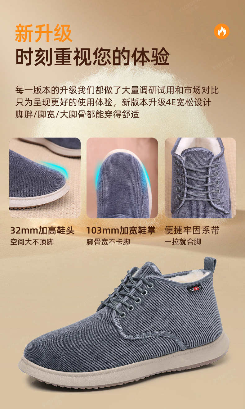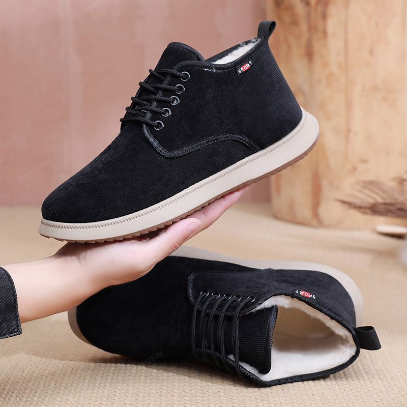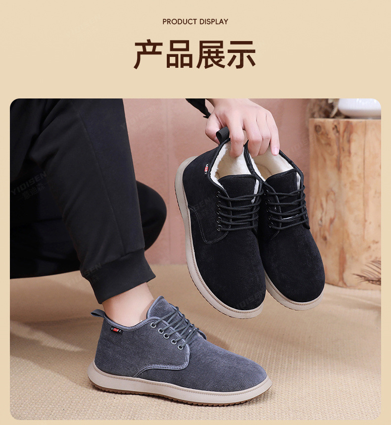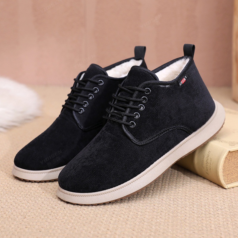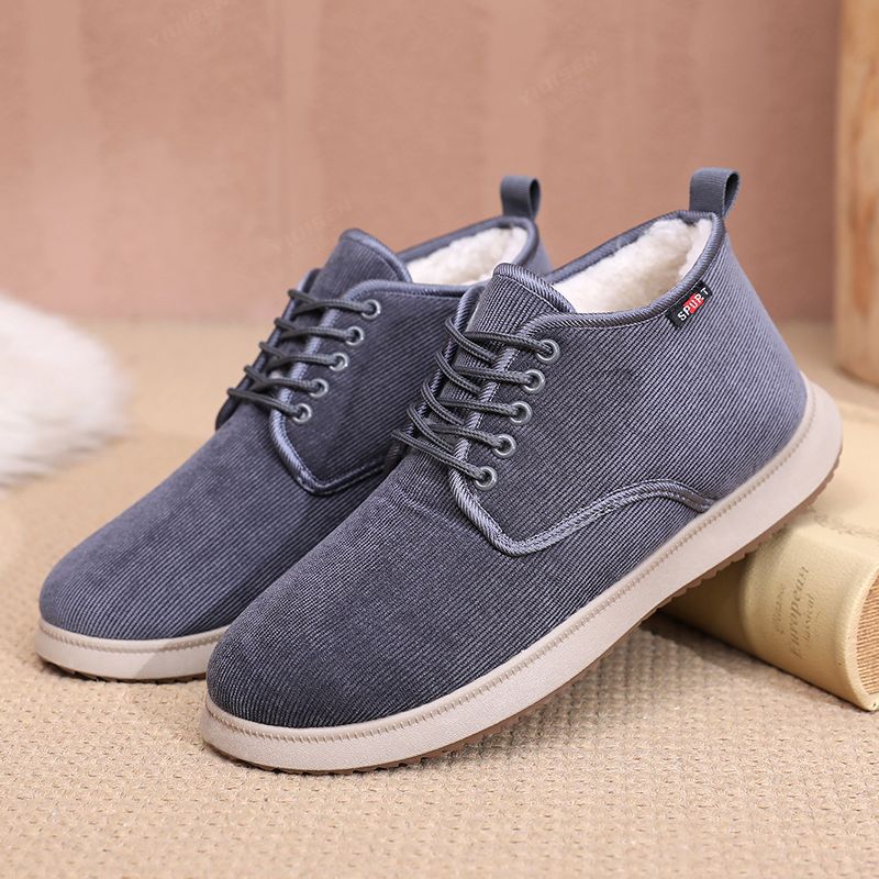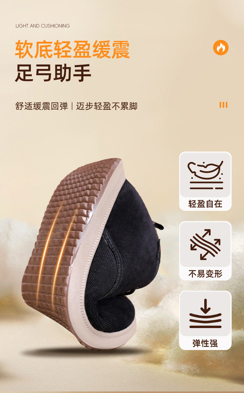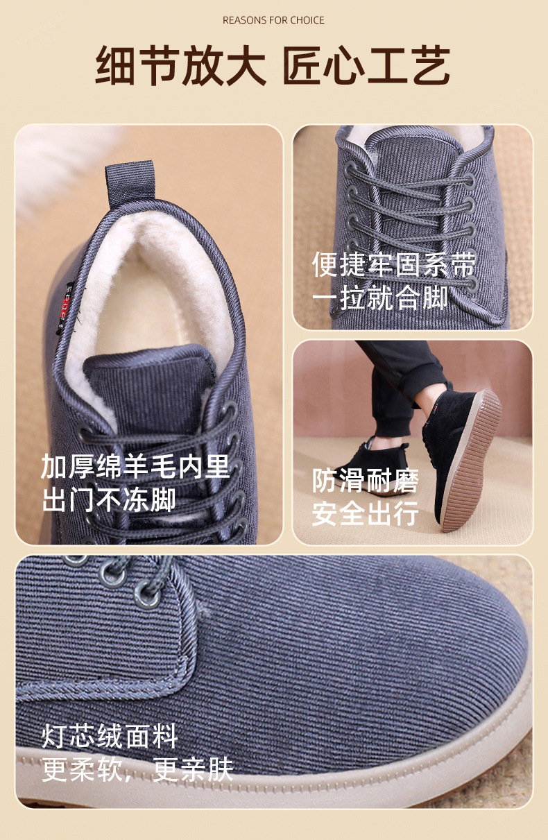 冬季新款加绒加厚保暖中老年爸爸鞋防滑软底老北京布鞋一脚蹬棉鞋