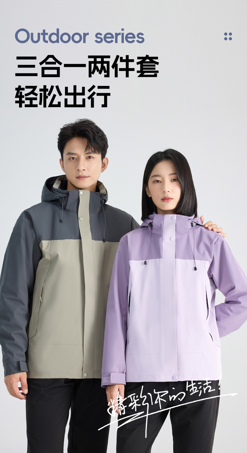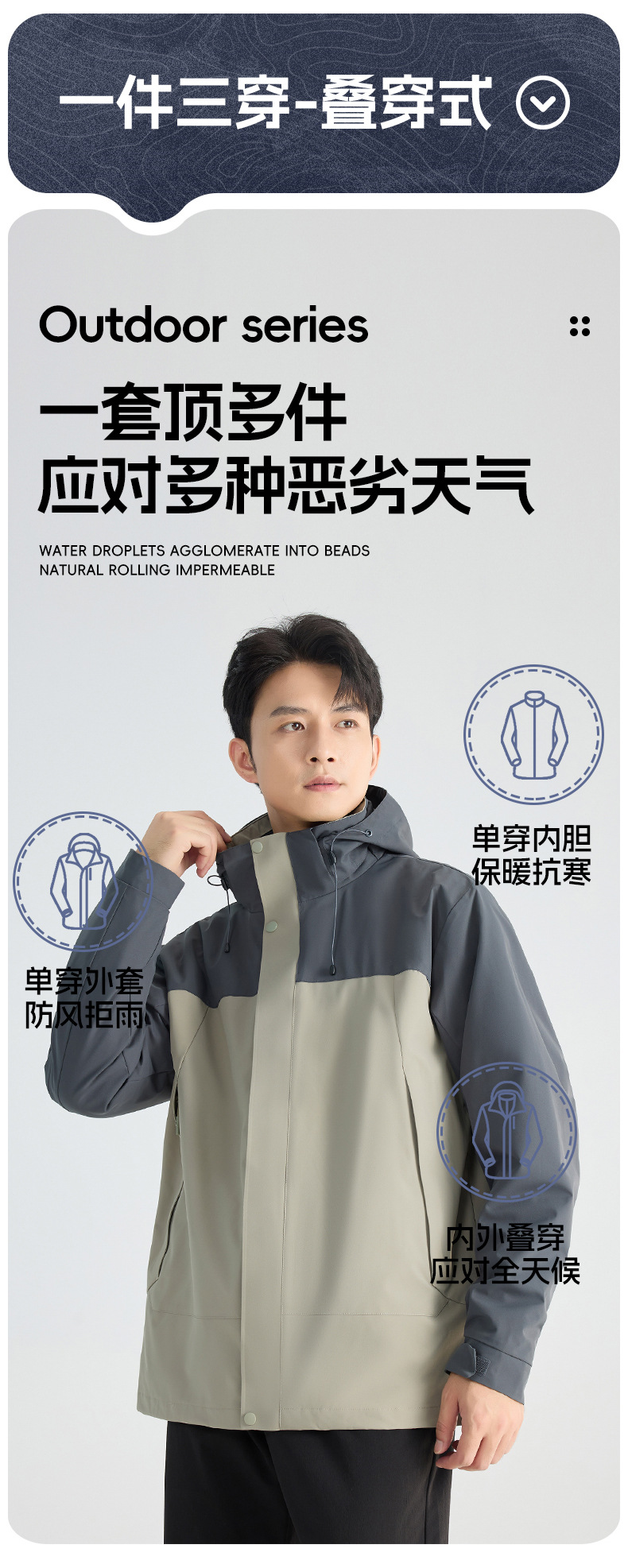 新国标90羽绒冲锋衣三合一男女防风防水可拆卸保暖外套可企业团购