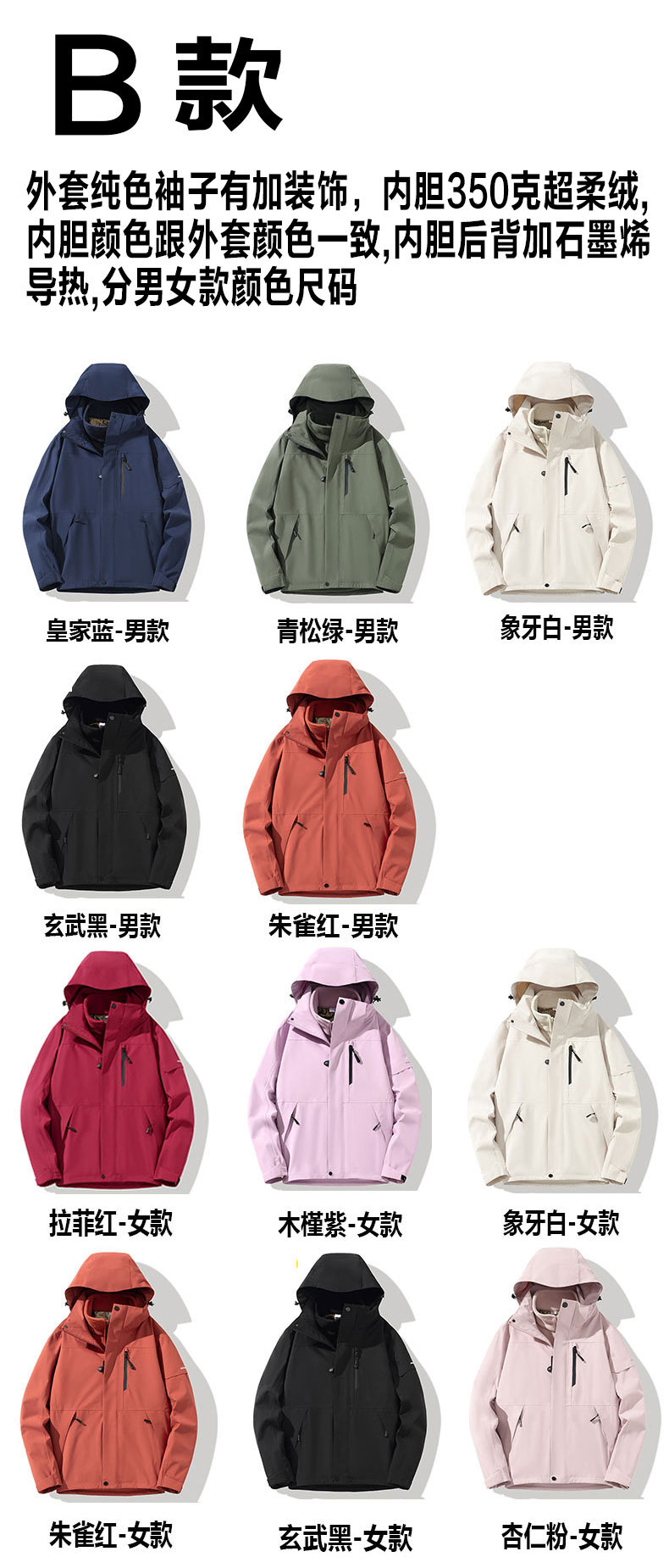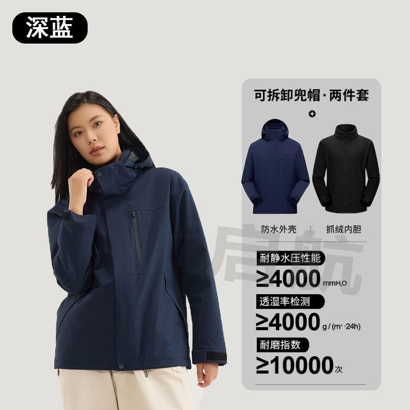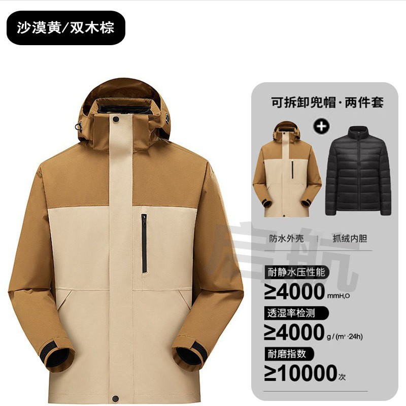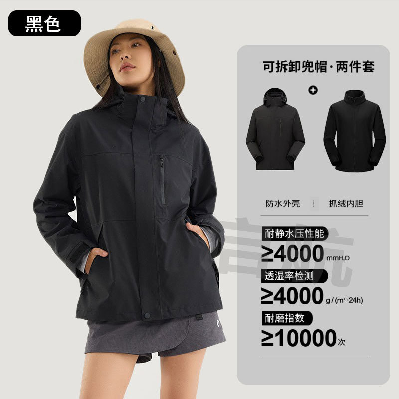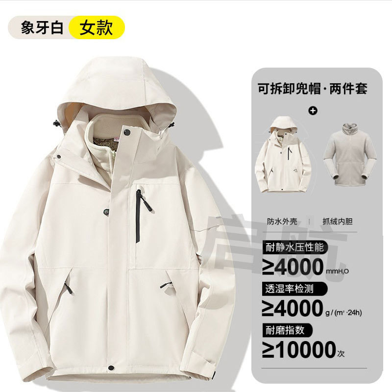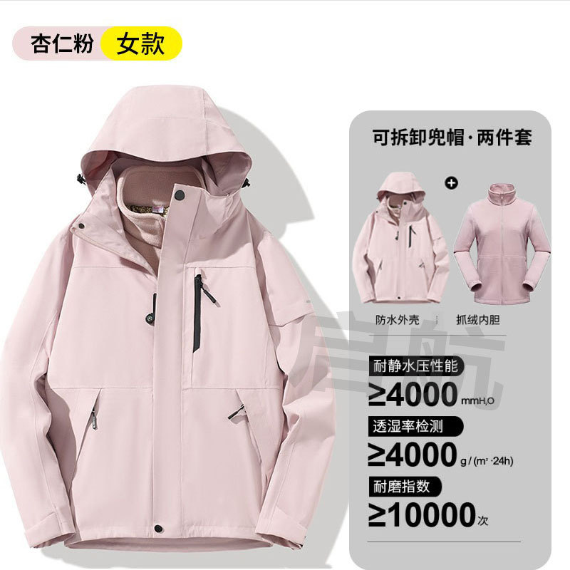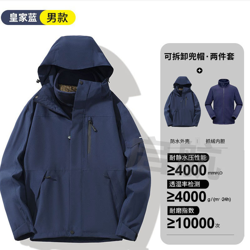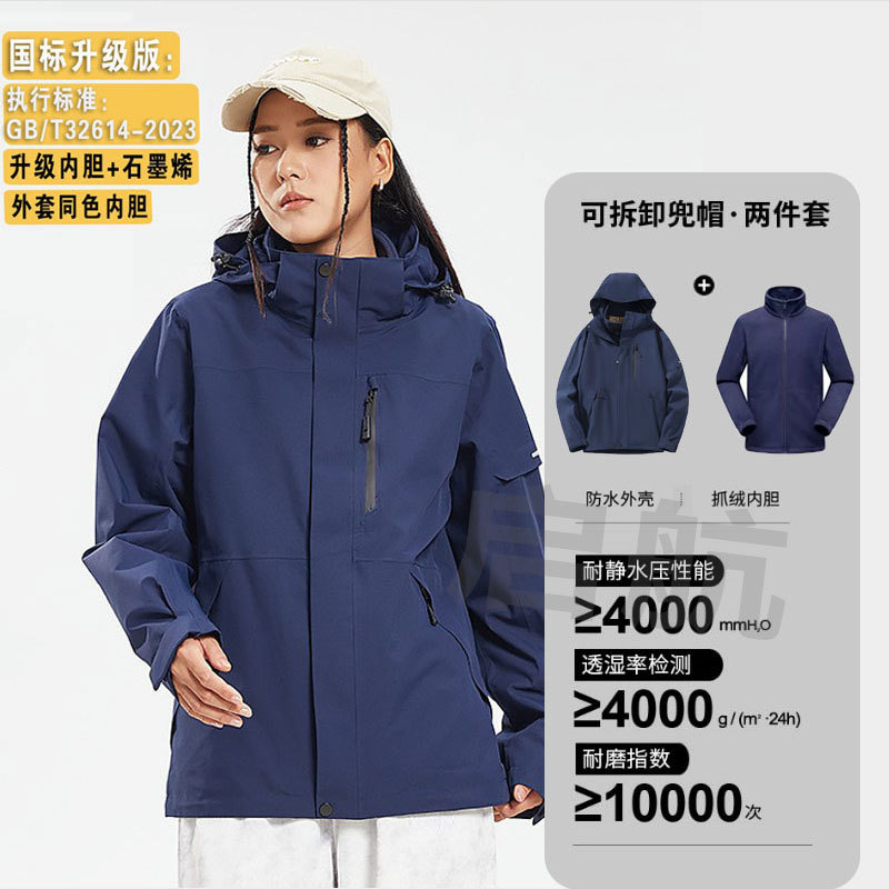 国标冲锋衣女防风防水户外三合一抓绒内胆冲锋衣男定制登山服外套
