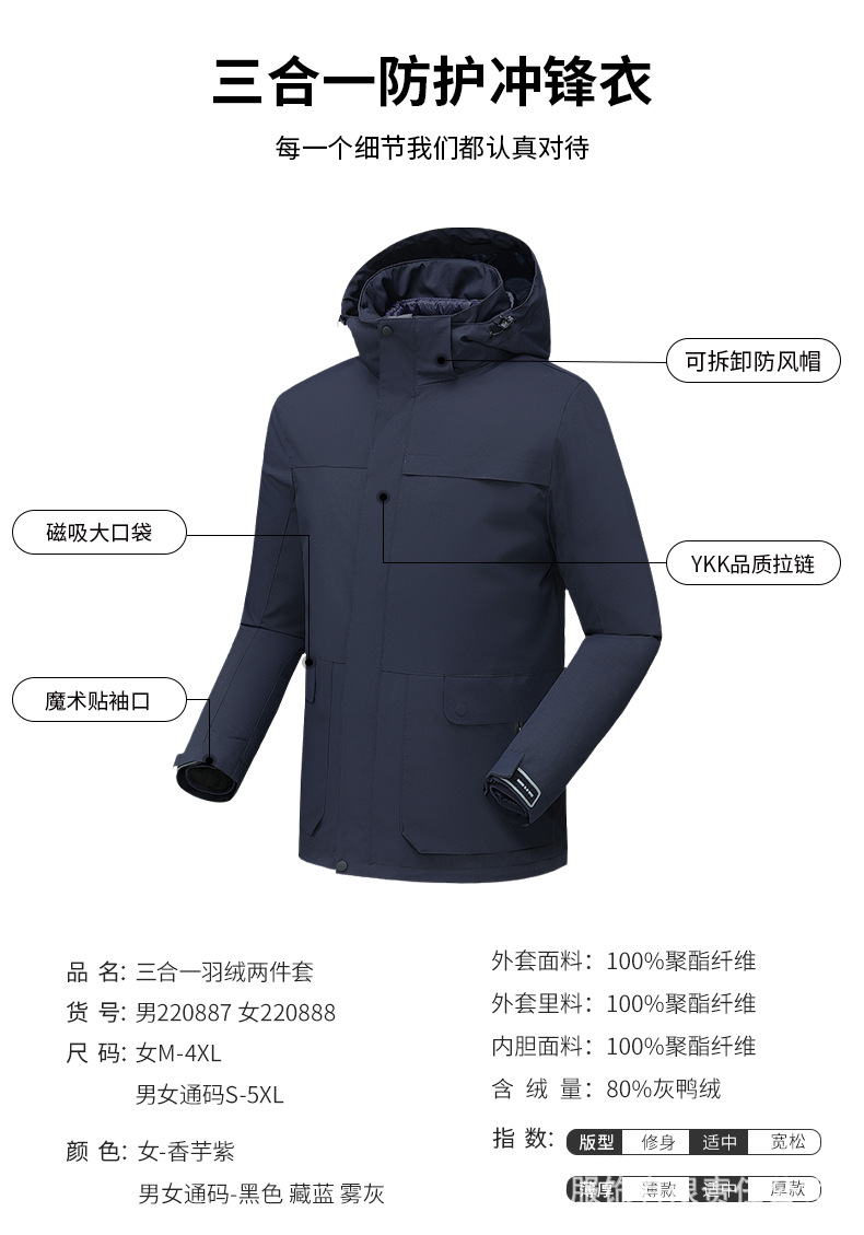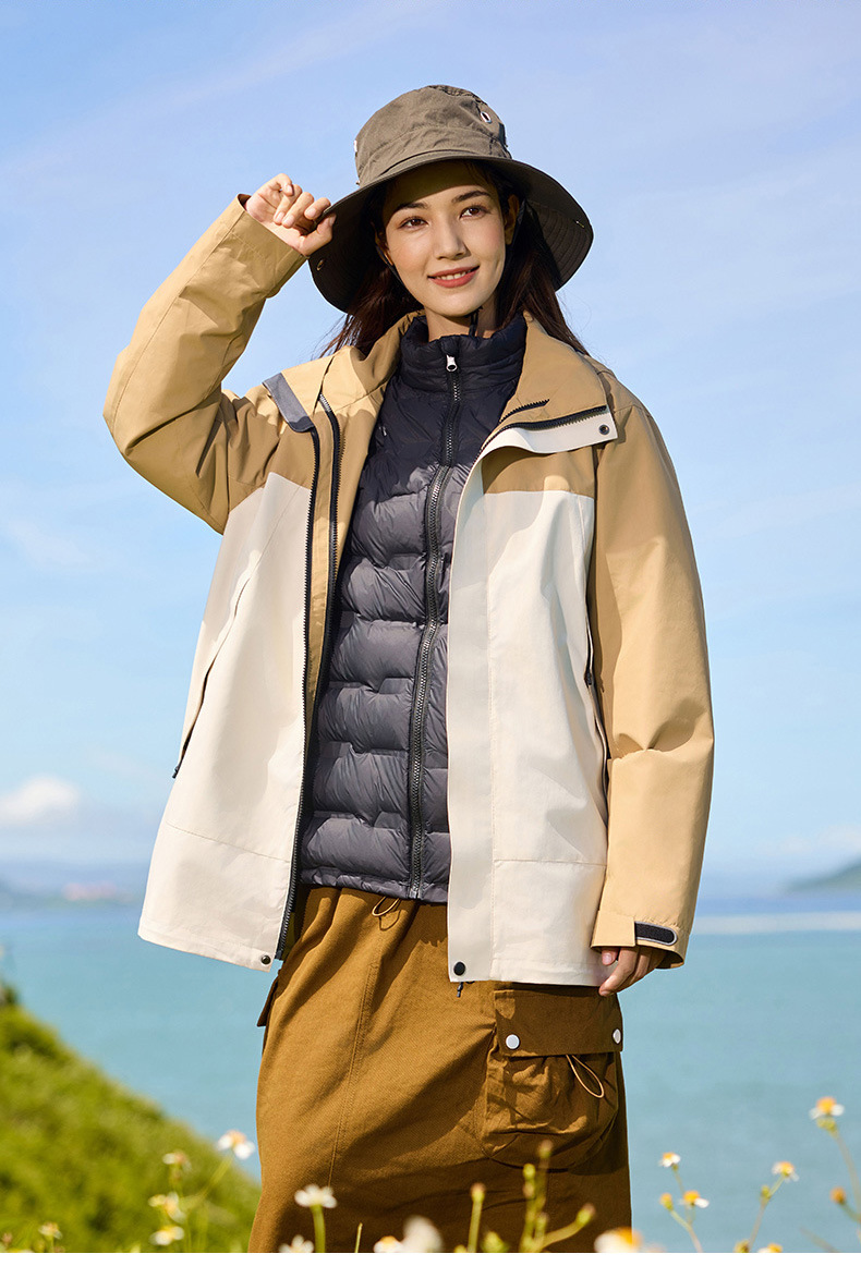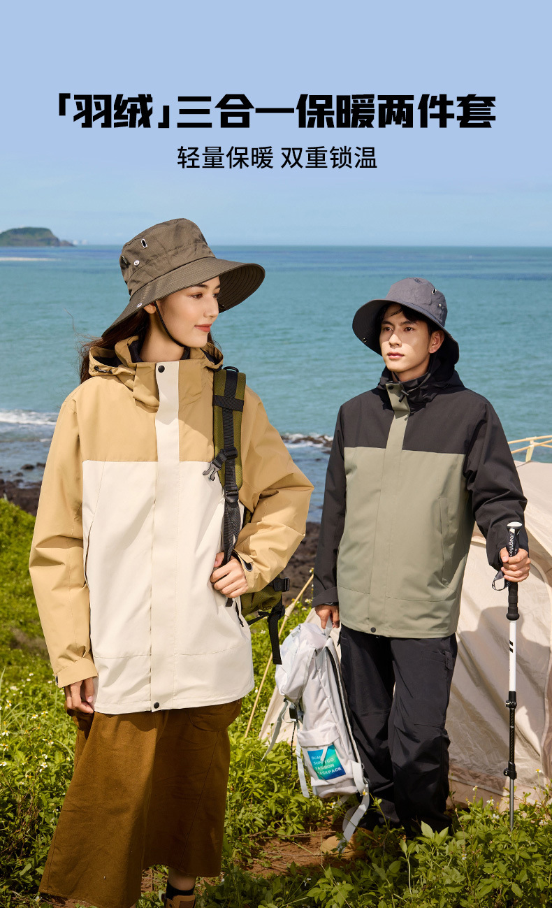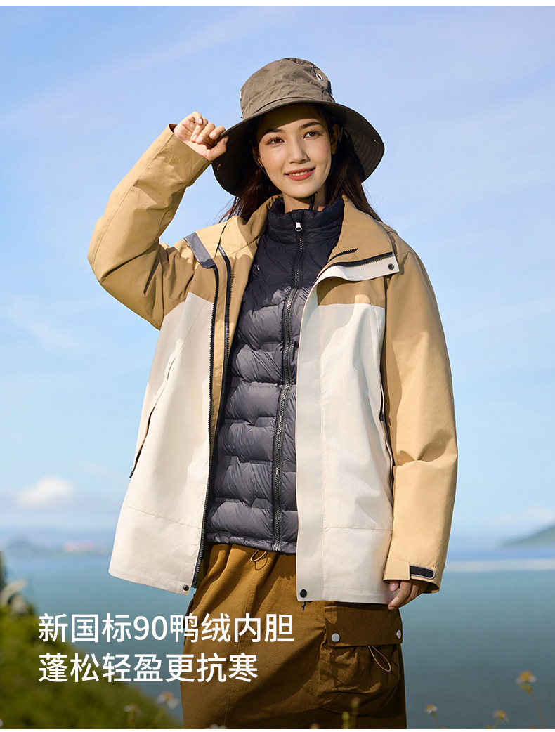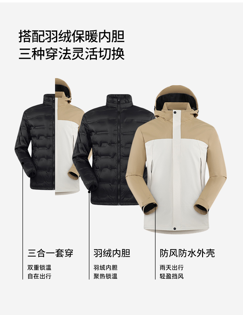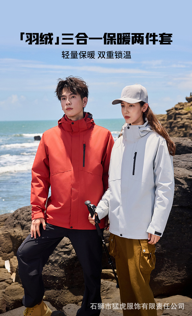 情侣冲锋衣羽绒服女25新款防风三合一可拆卸内胆工装外套品牌平替