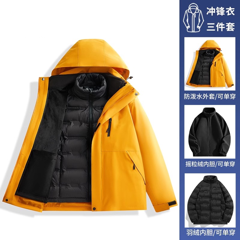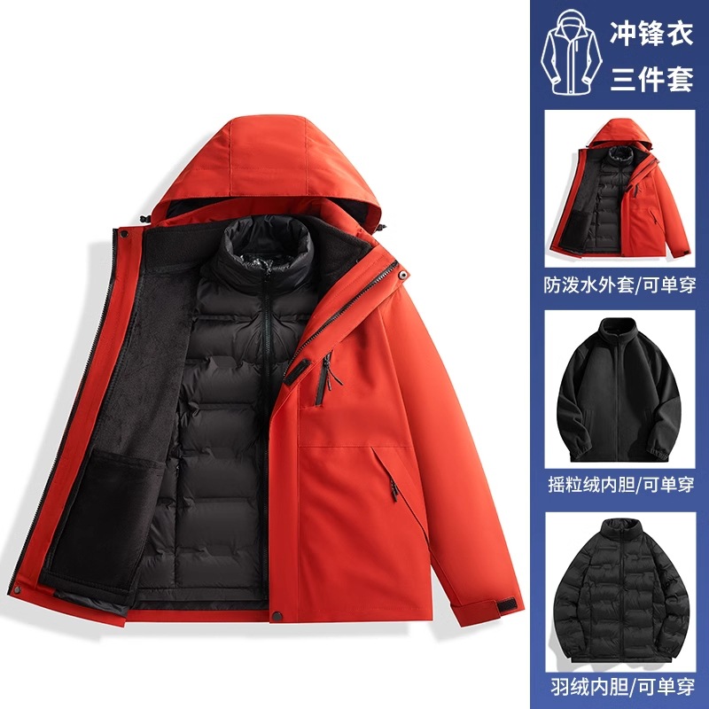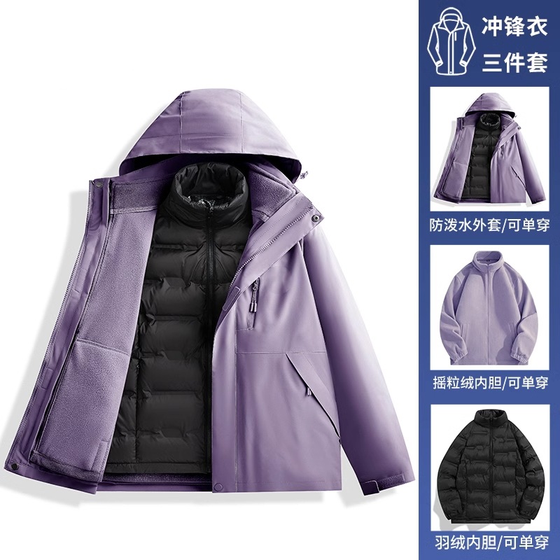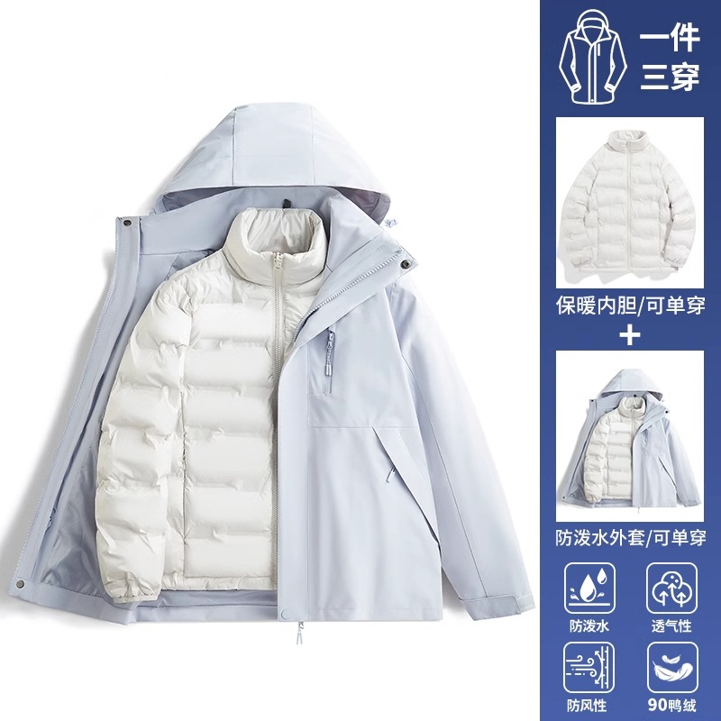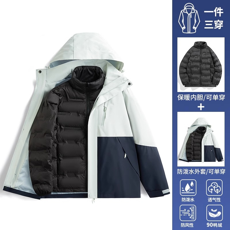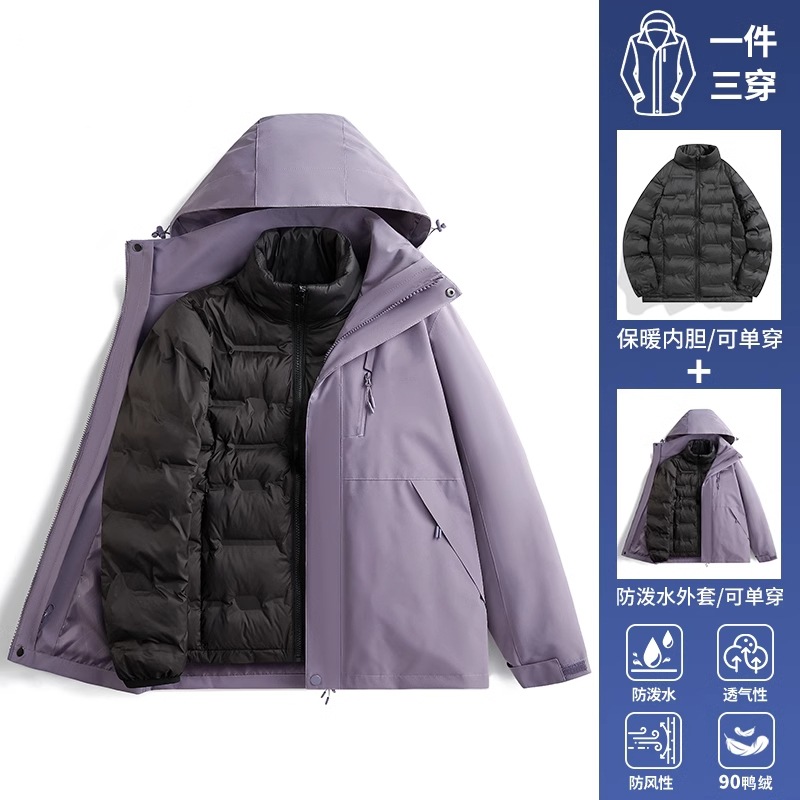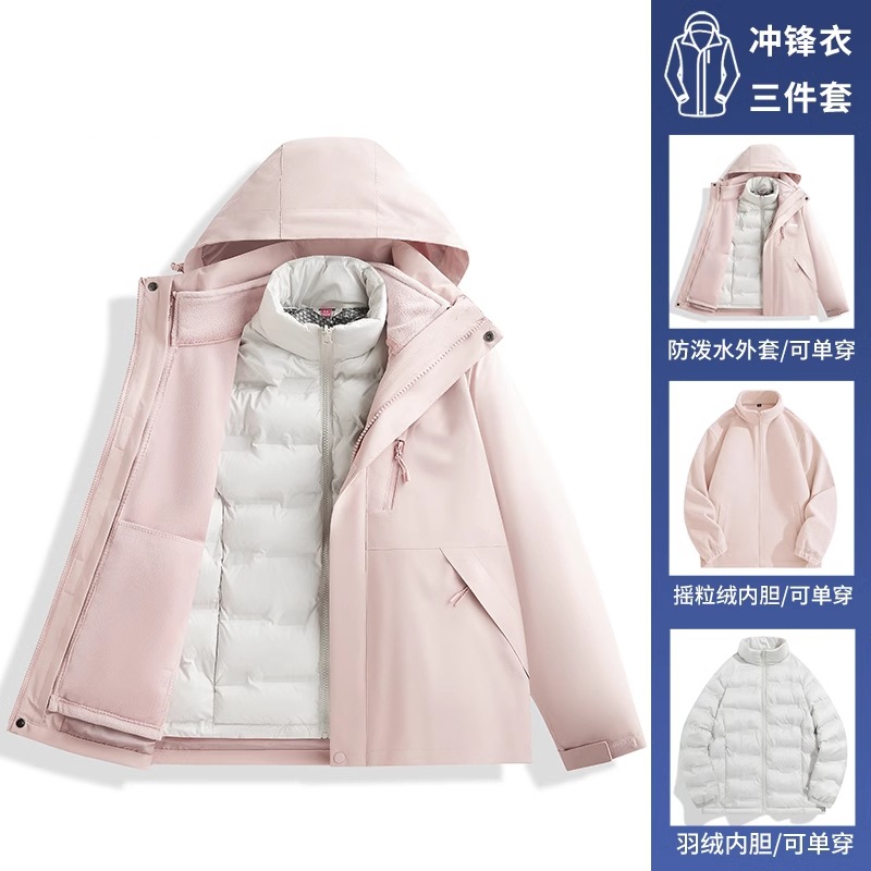 冲锋衣羽绒服外套女款2025新款小个子三合一户外防风防水登山服男