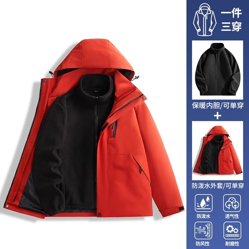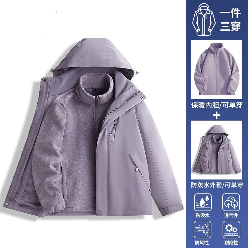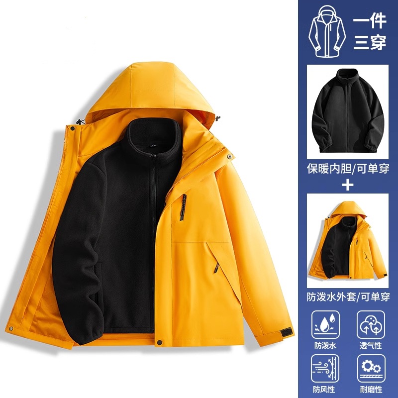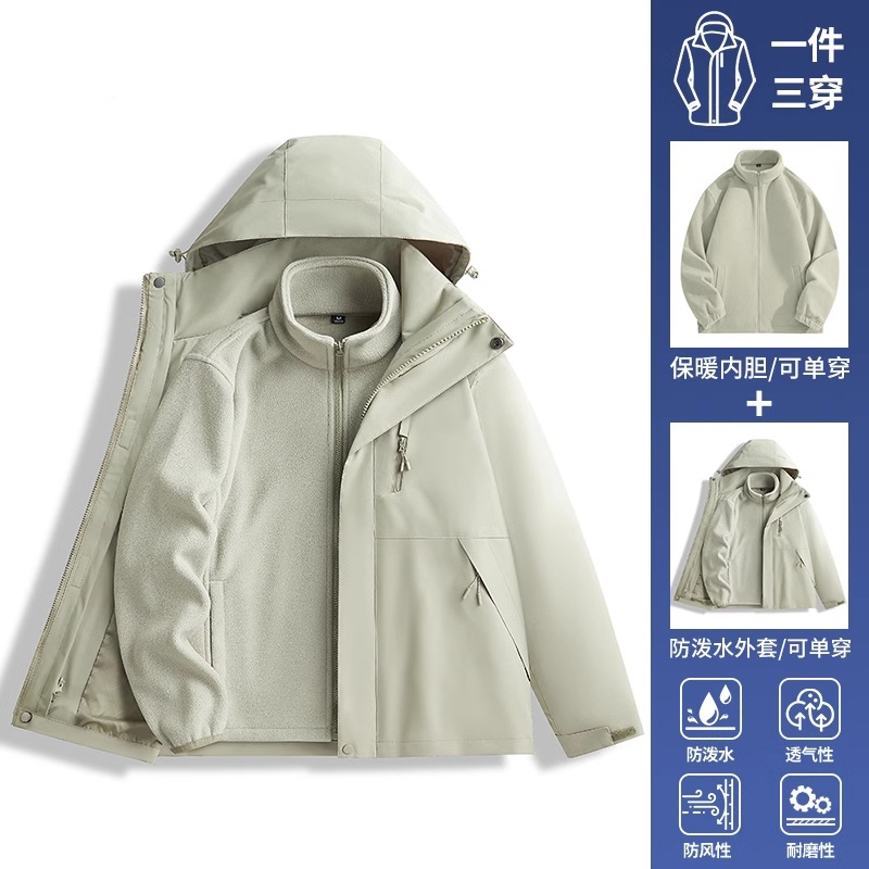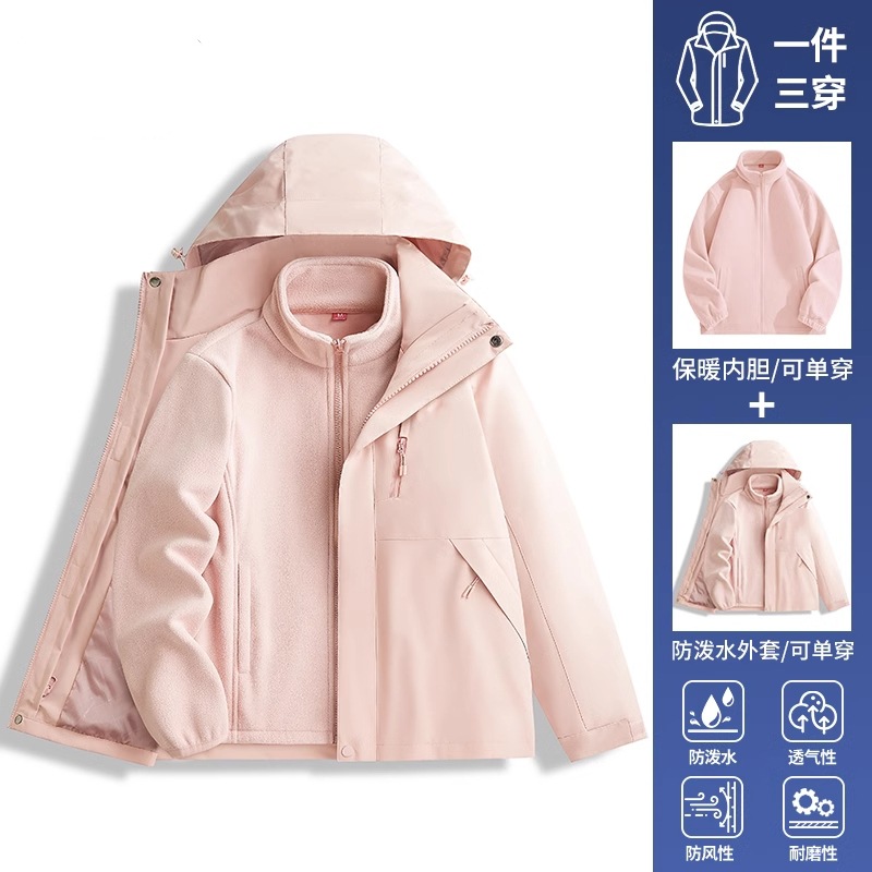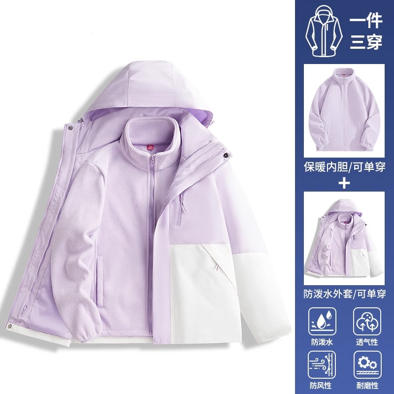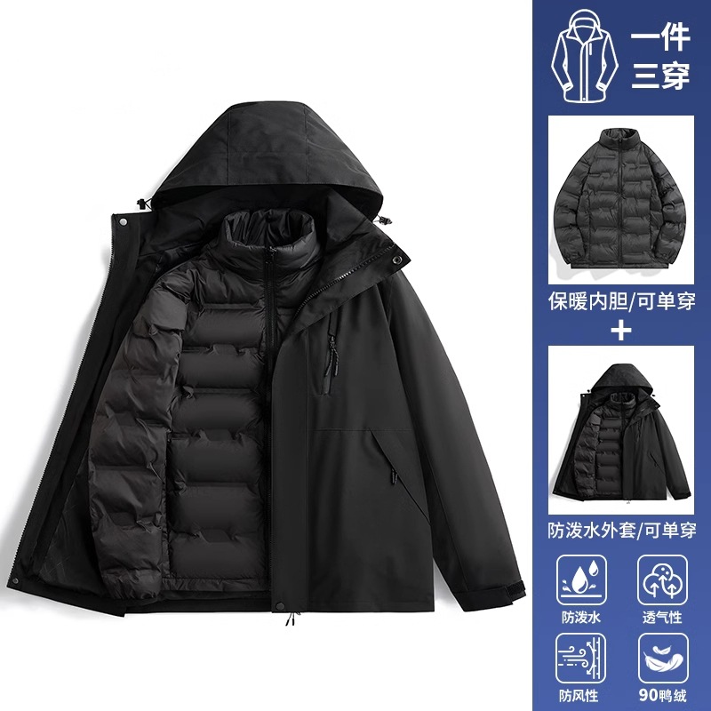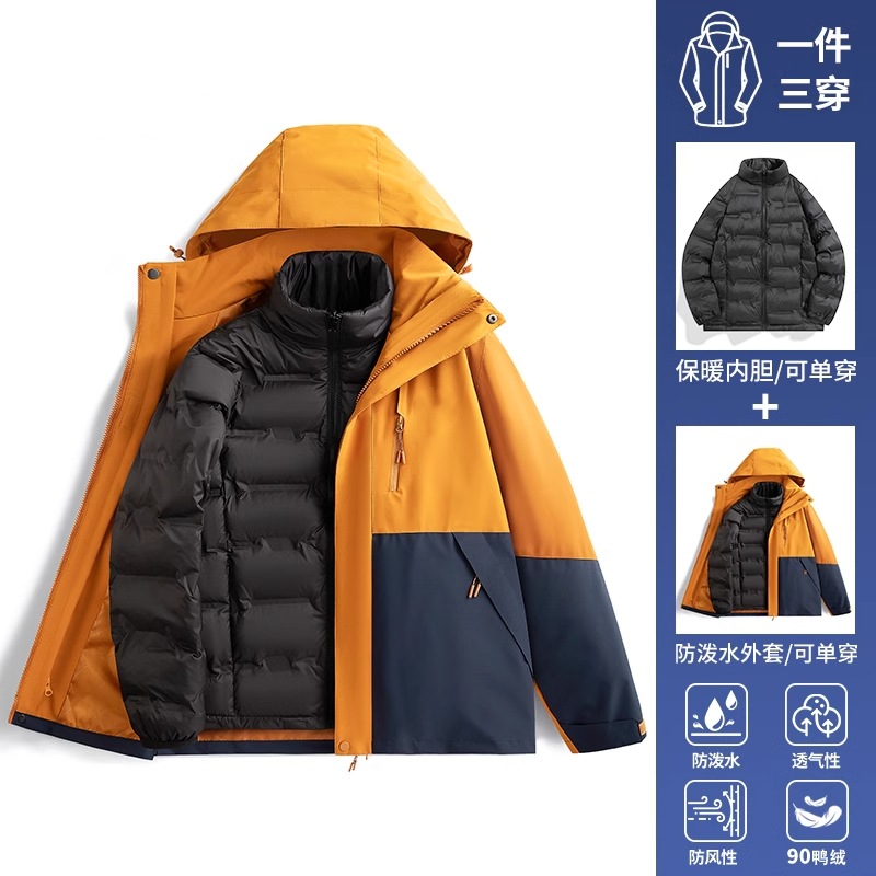 冲锋衣羽绒服外套女款2025新款小个子三合一户外防风防水登山服男