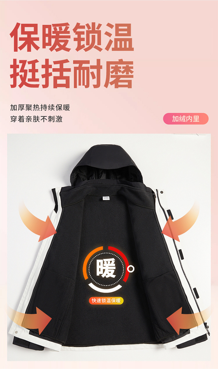 拓路国标GBT32614朱雀红冲锋衣女三合一男户外防水防风登山服外套