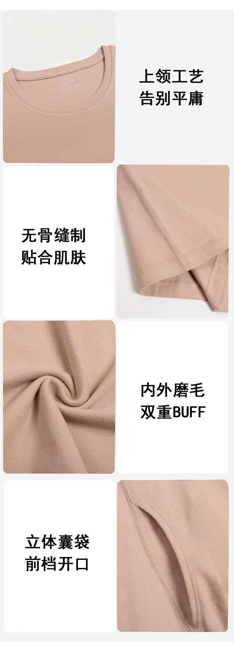 第二代纯棉秋衣秋裤套装男女圆领情侣磨绒加绒保暖套装打底棉毛衫