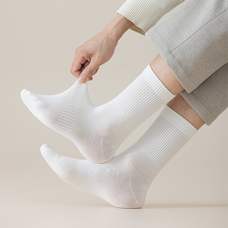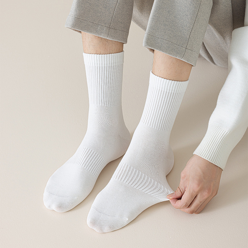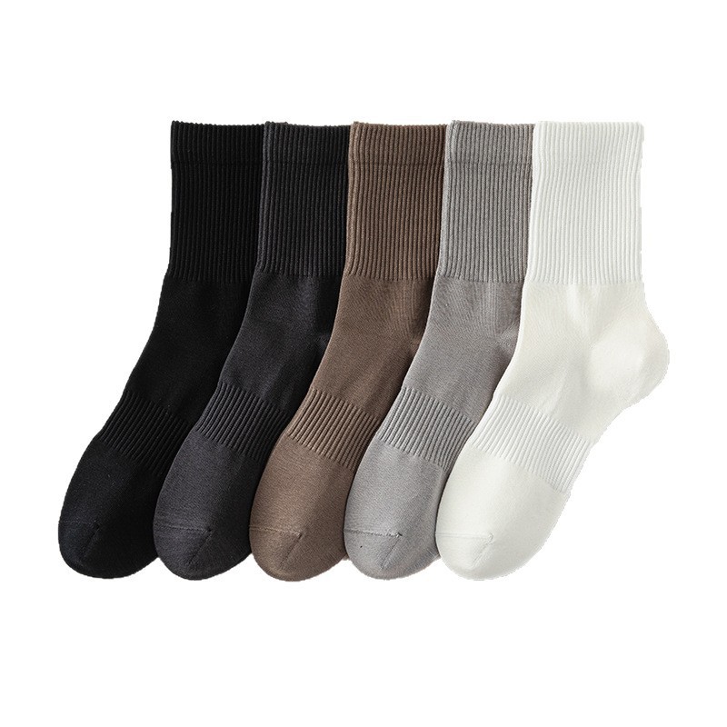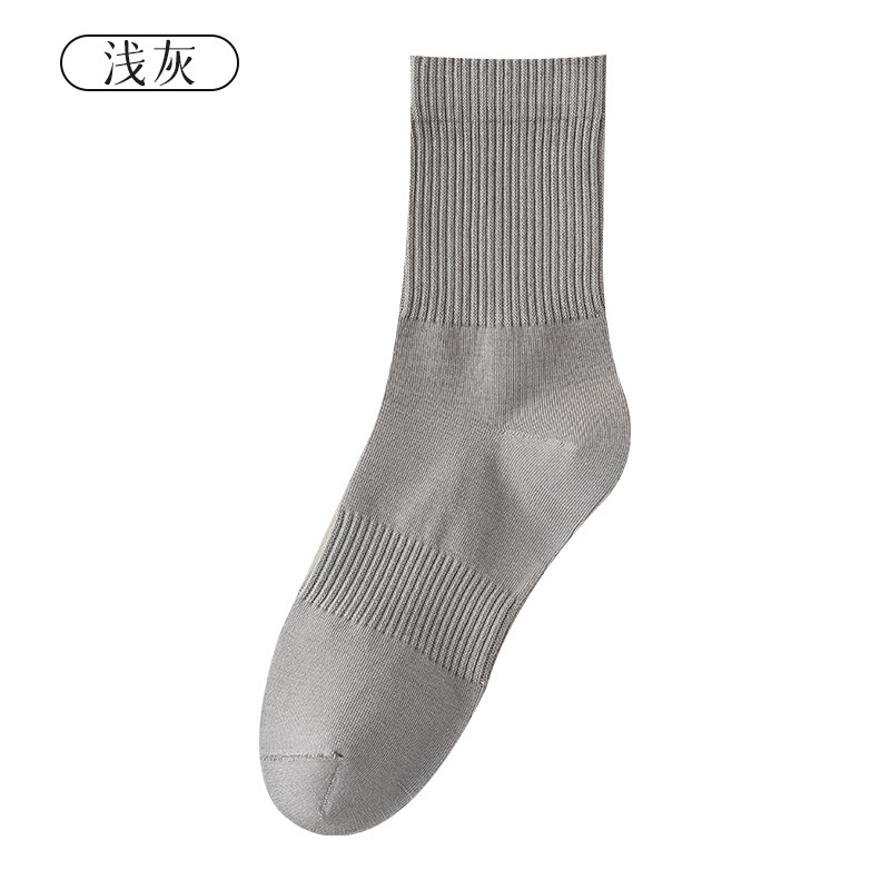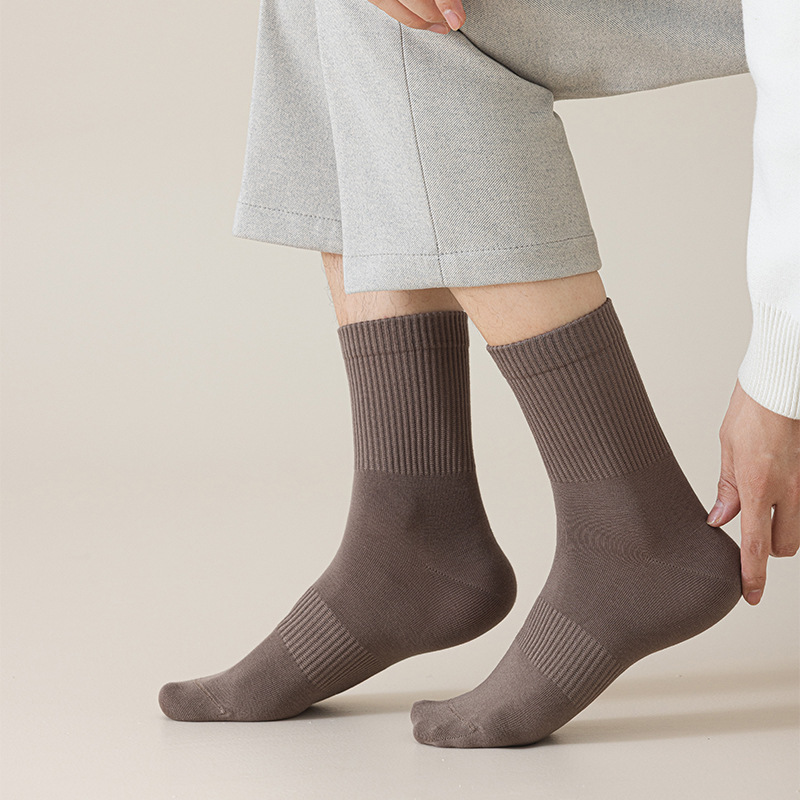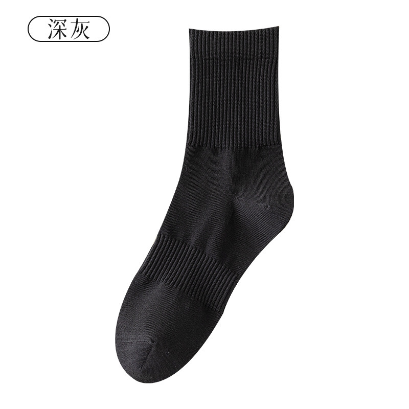 袜子男秋冬季简约纯色运动风纯棉中筒袜吸汗防臭束腰防滑男长袜