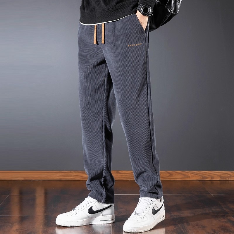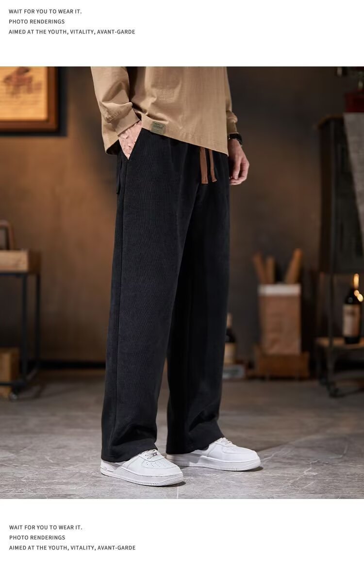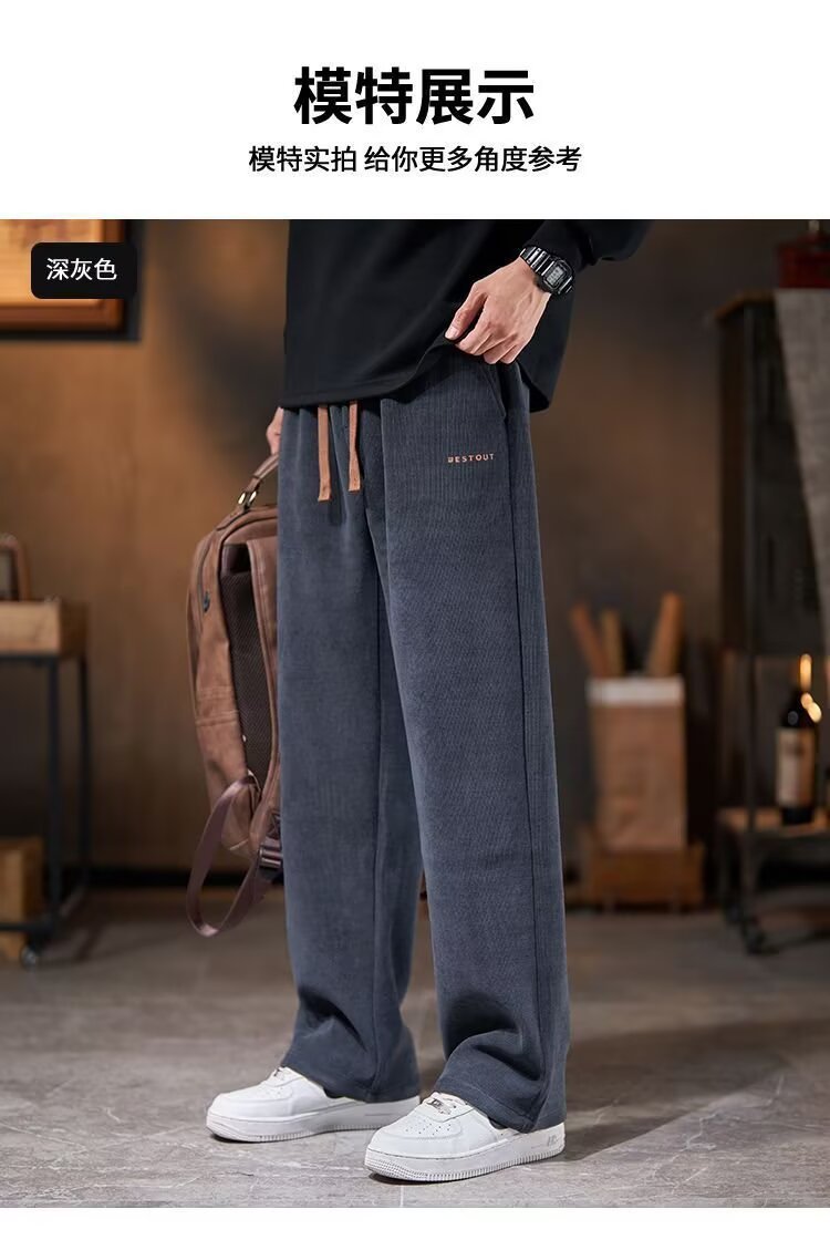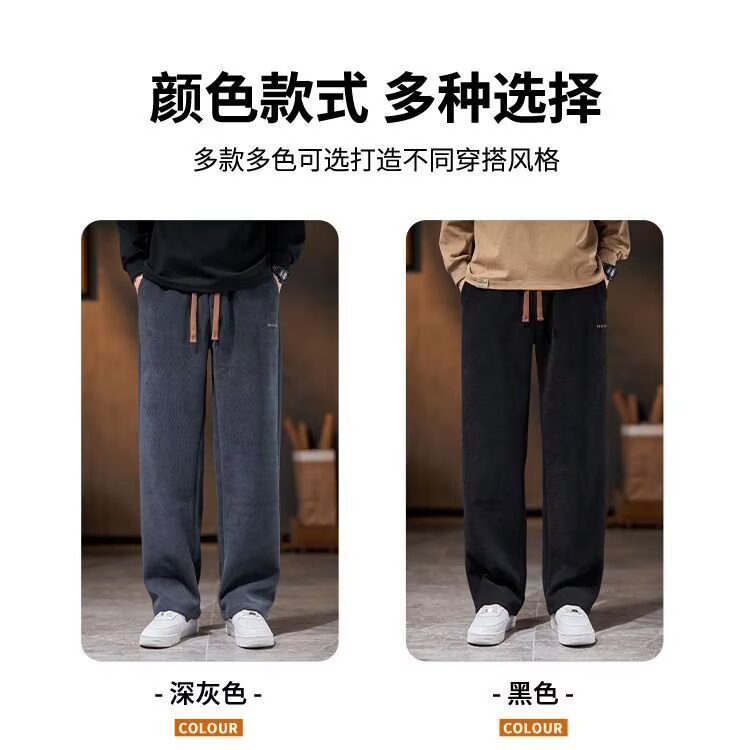 秋冬季休闲裤男士保暖直筒加厚加绒卫裤耐磨长裤保暖灯芯绒裤子男