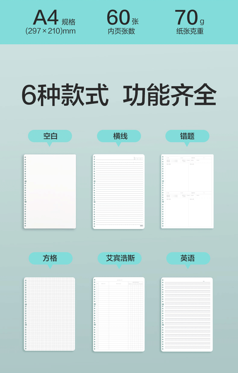 得力笔记本外壳按压扣A4活页本外壳活页内芯可拆装A4A5B4替芯批发