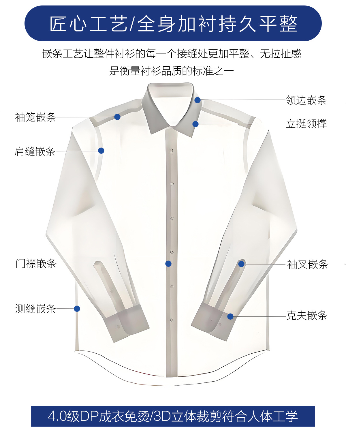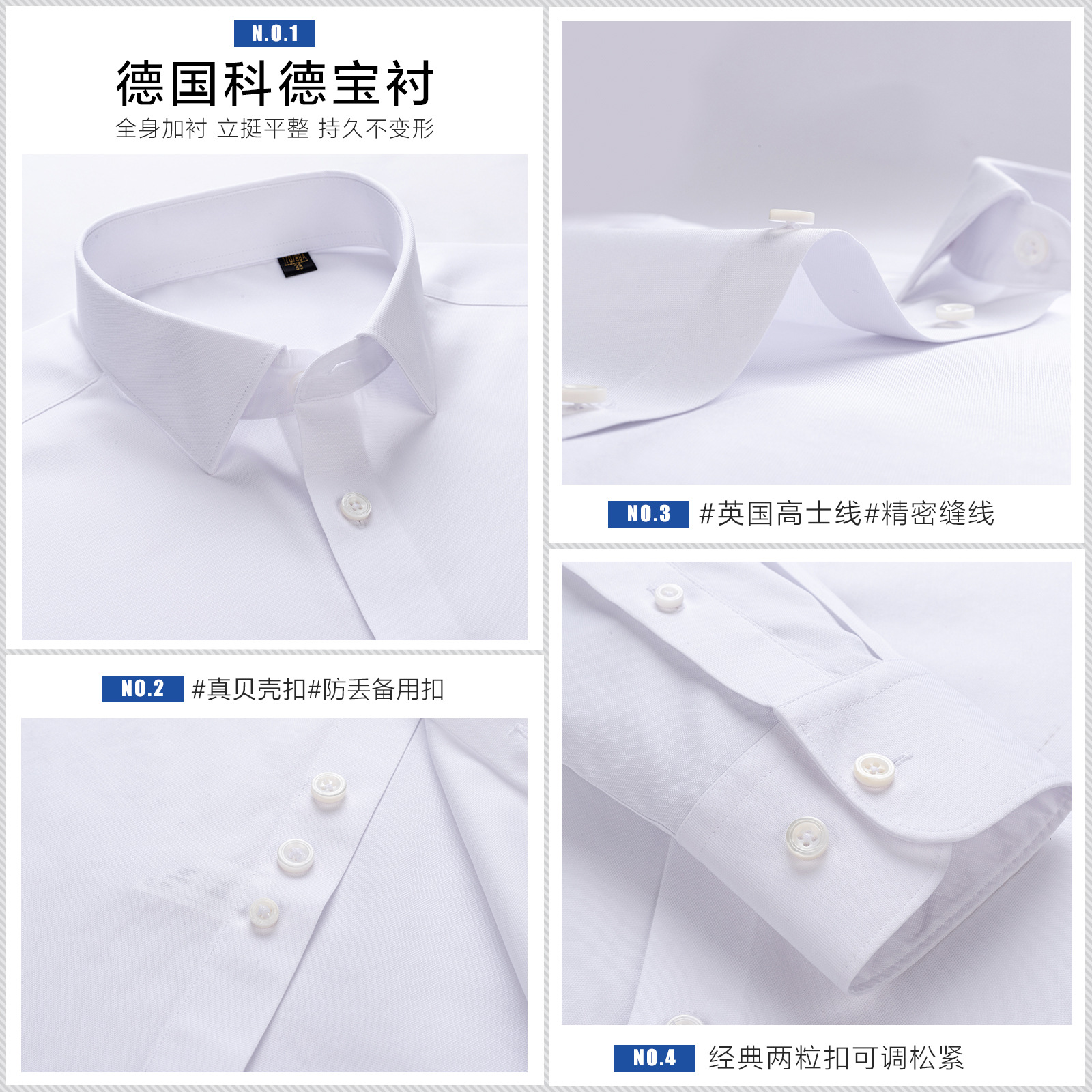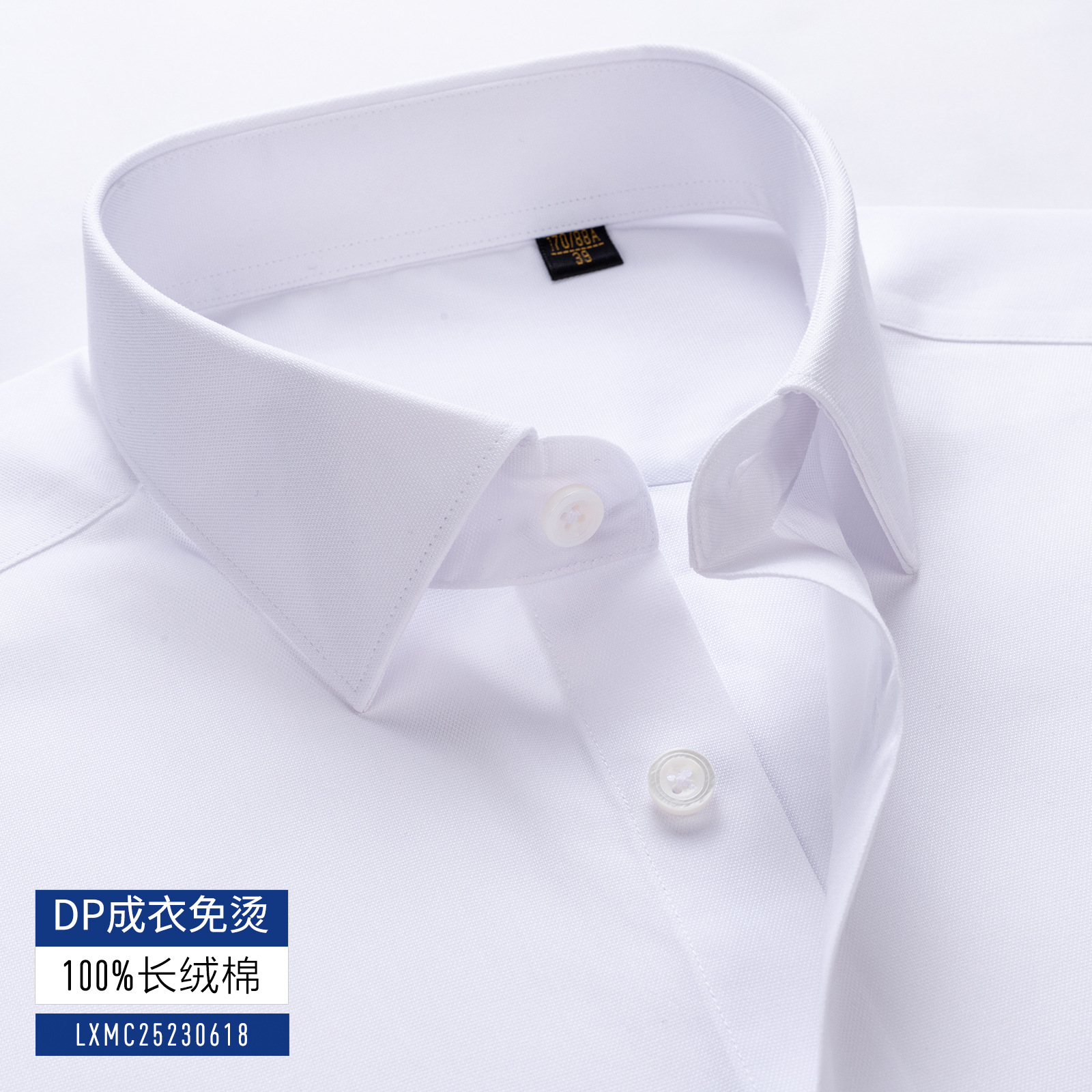 高档230支4股男士衬衫男长袖高级感商务纯棉免烫白衬衣男短袖定制