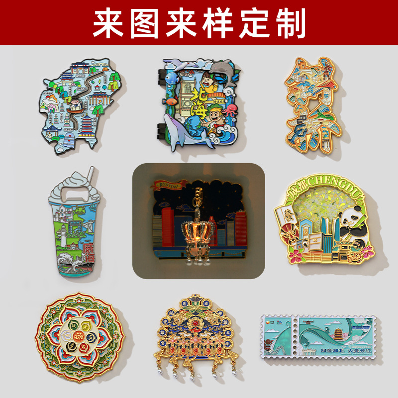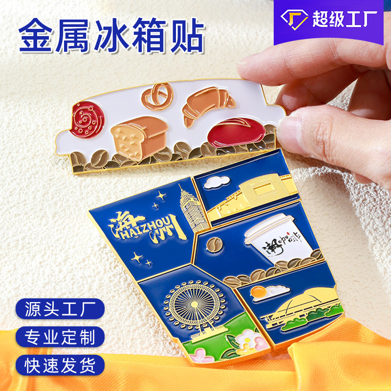 金属烤漆拼图冰箱贴定制国潮国风文创立体冰箱贴中国城市景区定做