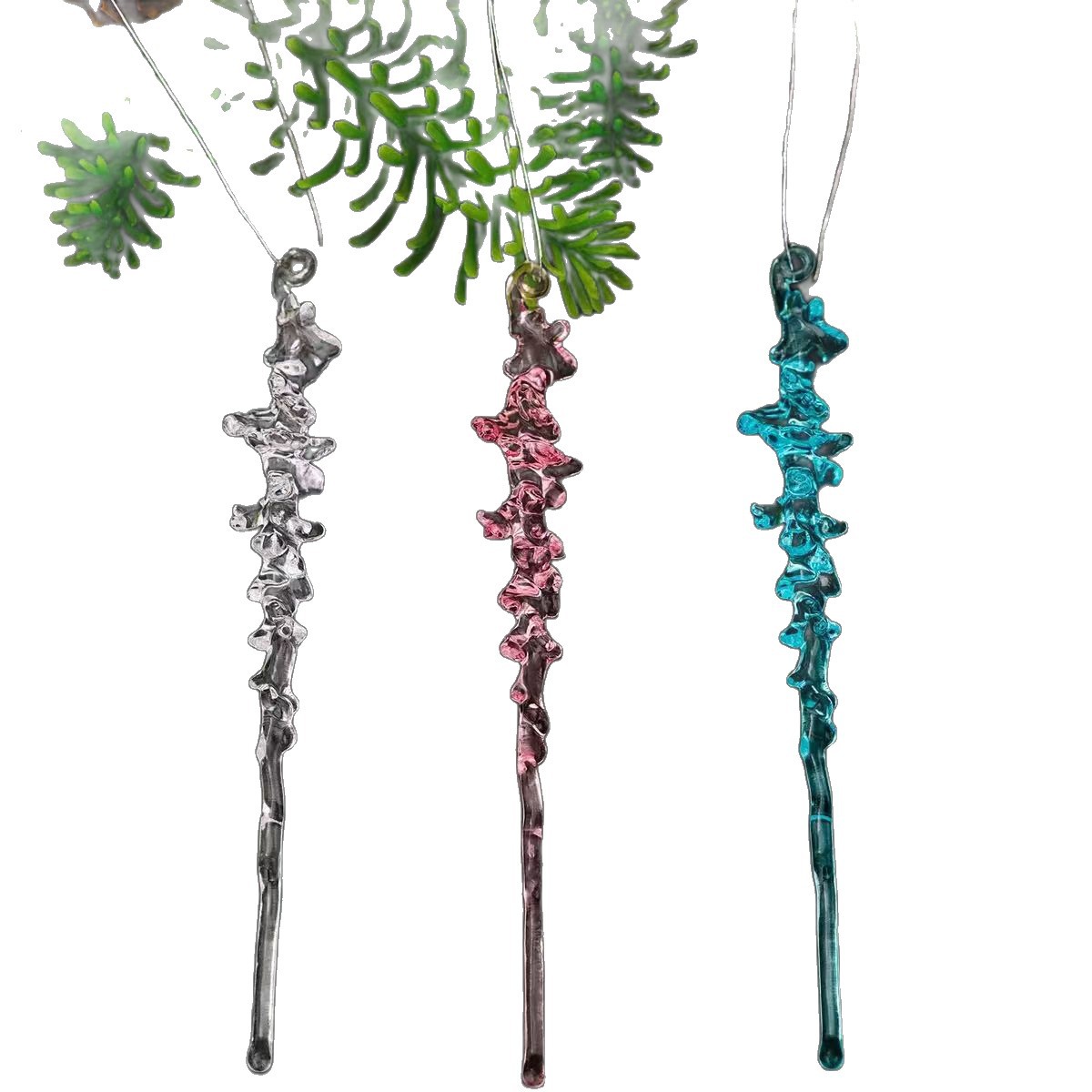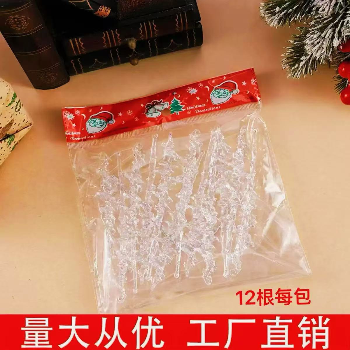跨境圣诞节庆用品透明冰条挂件冰柱圣诞树装饰螺纹挂件吊件挂饰