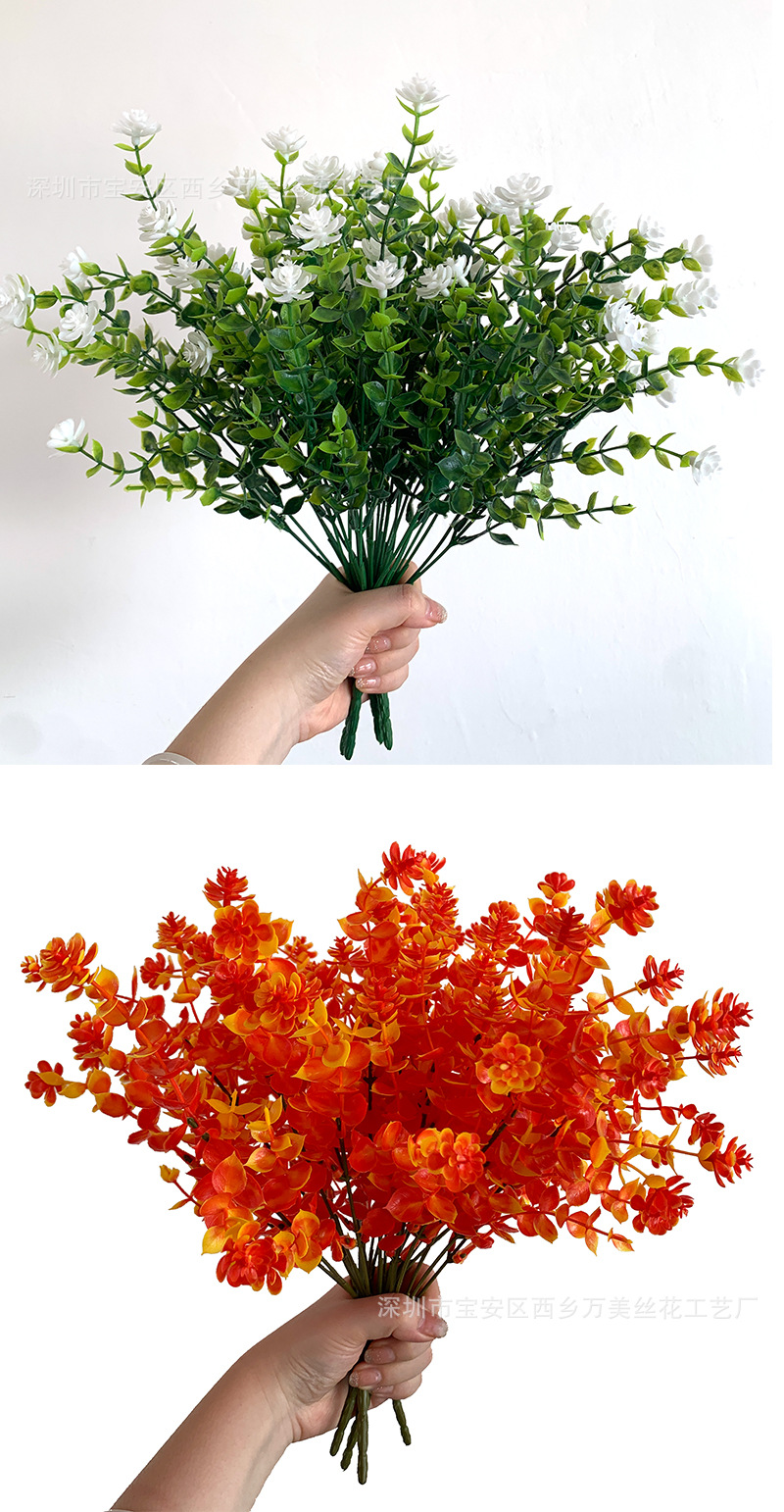 仿真米兰草塑料花金钱草尤加利叶子仿真莲花植物墙园艺用品装饰花